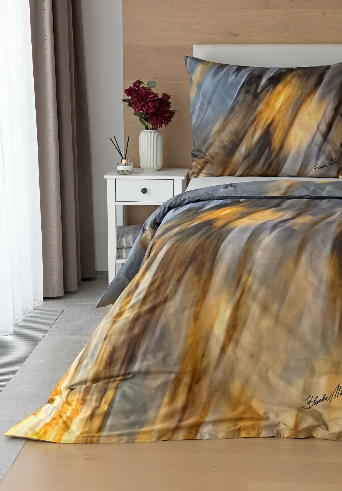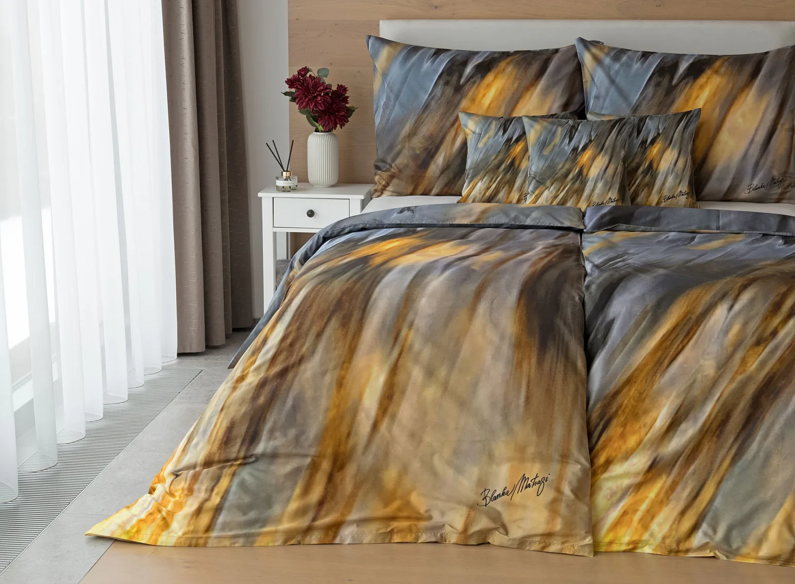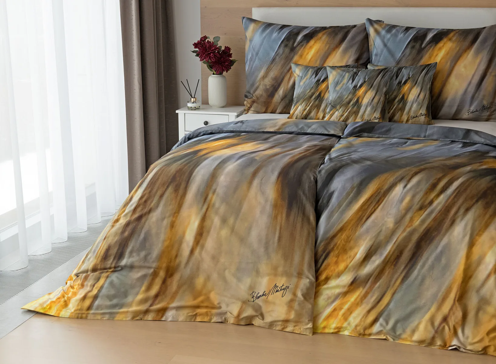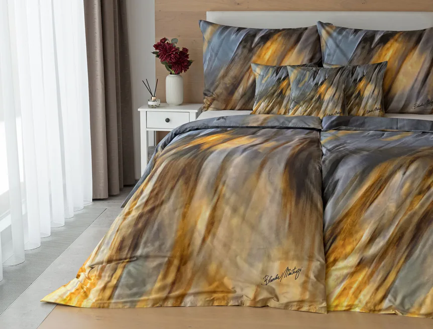 Inspirujte se limitovanou edicí povlečení na motivy kolekce ELEMENTS uznávané módní návrhářky Blanky Matragi. Sama umělkyně tuto kolekci charakterizuje jako oslavu života a návrat ke kořenům. Elegantní, ale přesto velmi odvážné a promyšlené motivy vyzařují autorské inovační nápady a na první pohled zaujmou optickými iluzionistickými prvky.