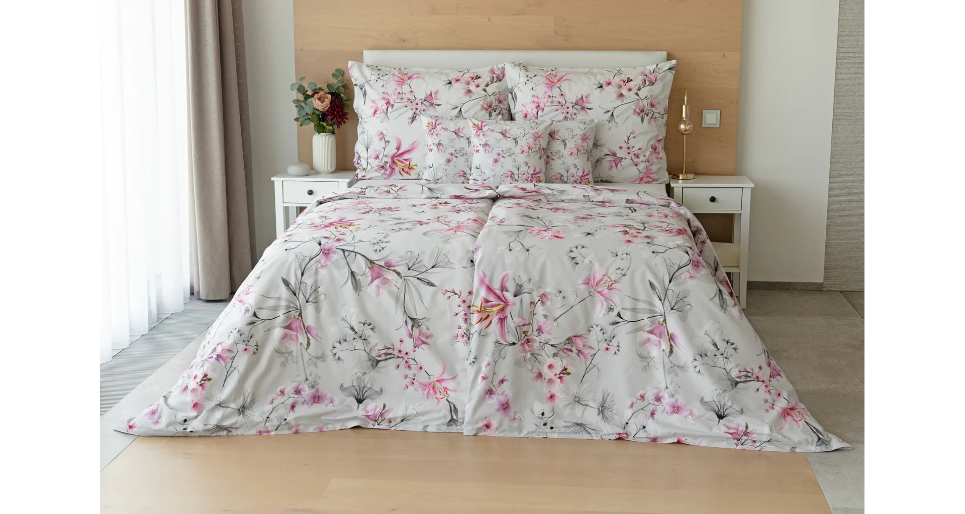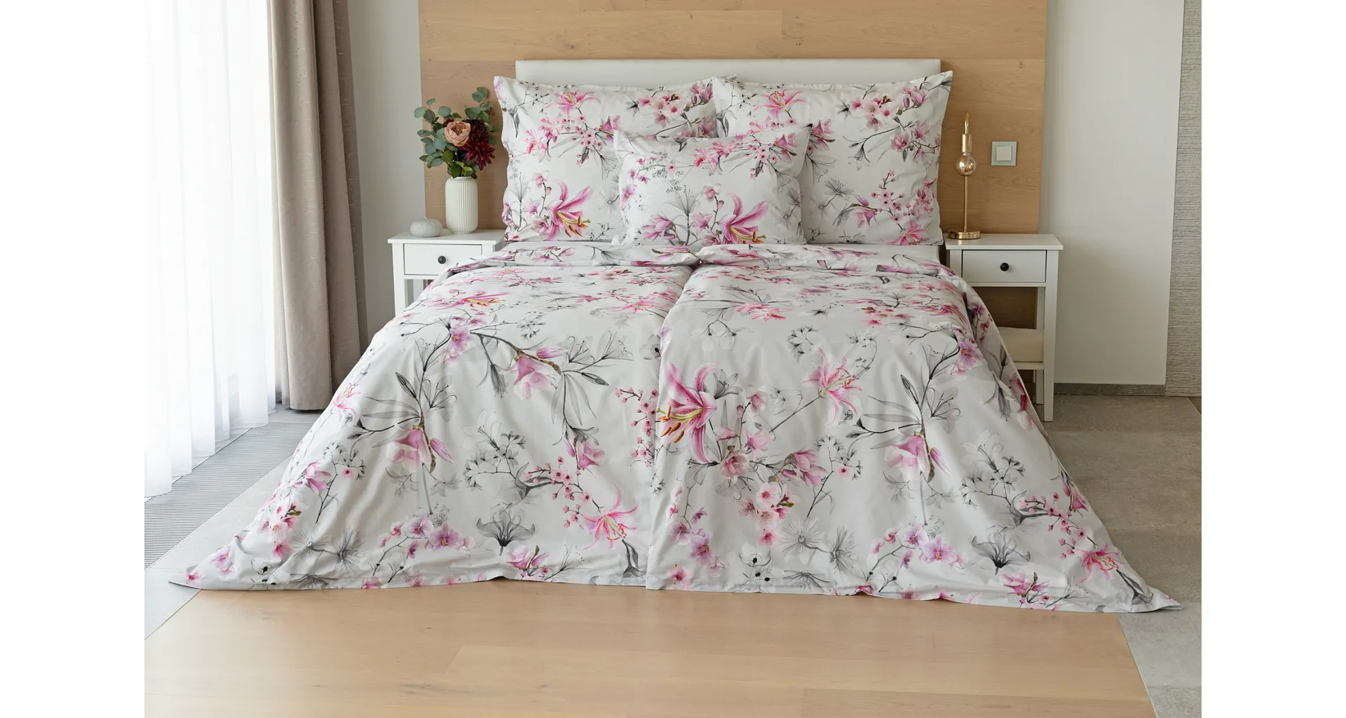 Obklopte se jemností a elegancí s bavlněným povlečením Elisse. Okouzlující vzor kombinuje květy exotických orchidejí a něžných lilií v růžovofialových tónech na světle šedém podkladu. Povlečení je vyrobeno ze 100% prvotřídní bavlny a přináší nejen estetickou hodnotu, ale i výjimečný komfort.