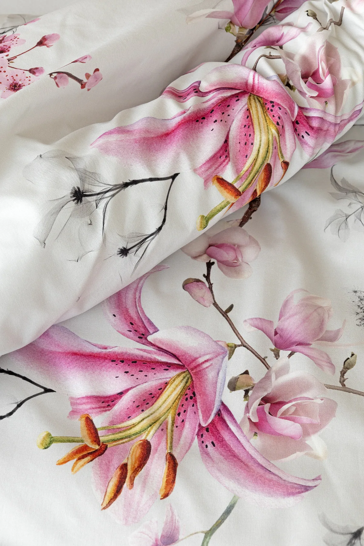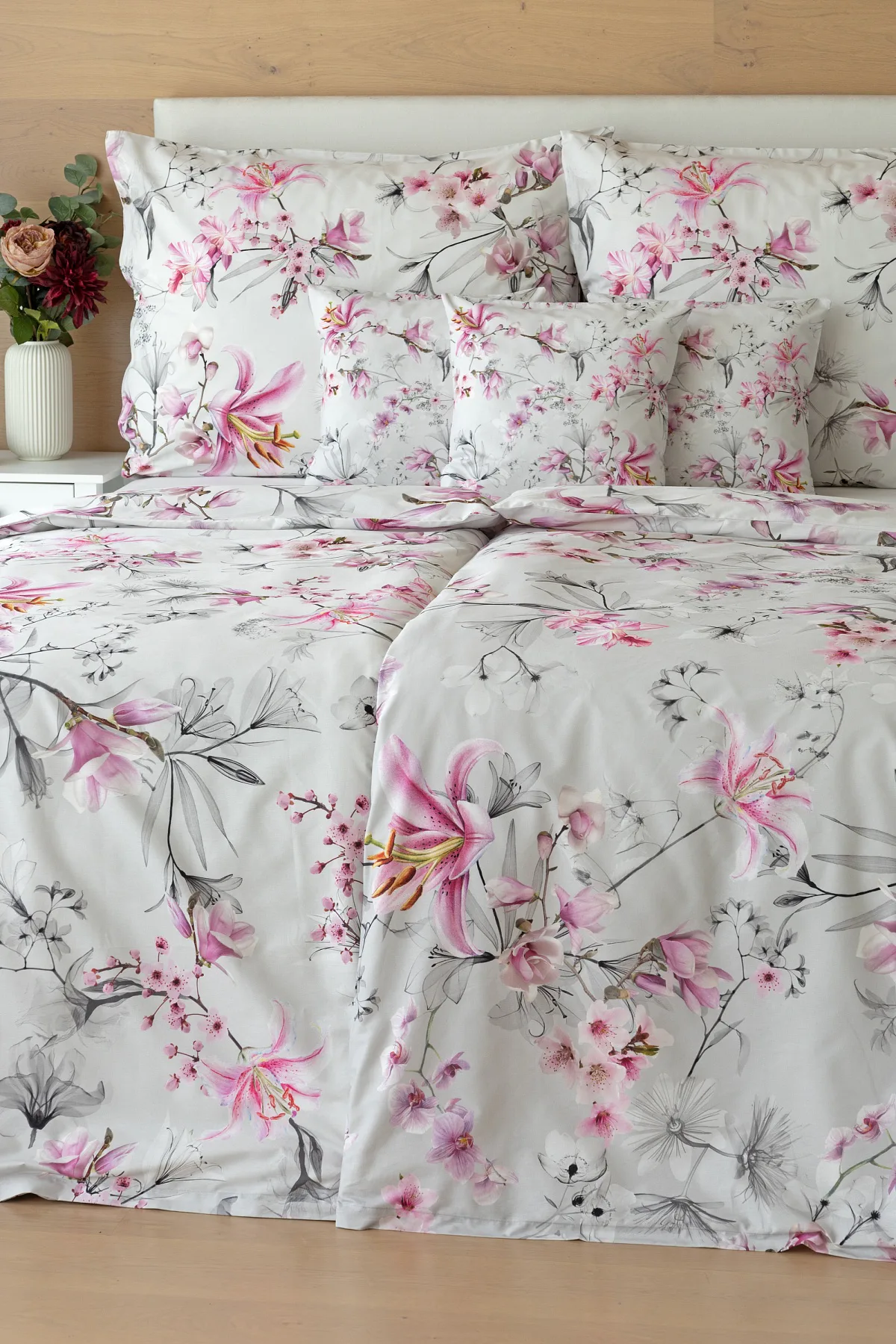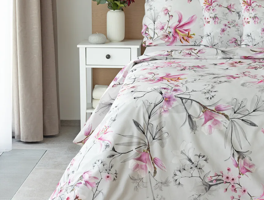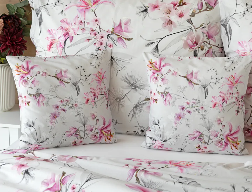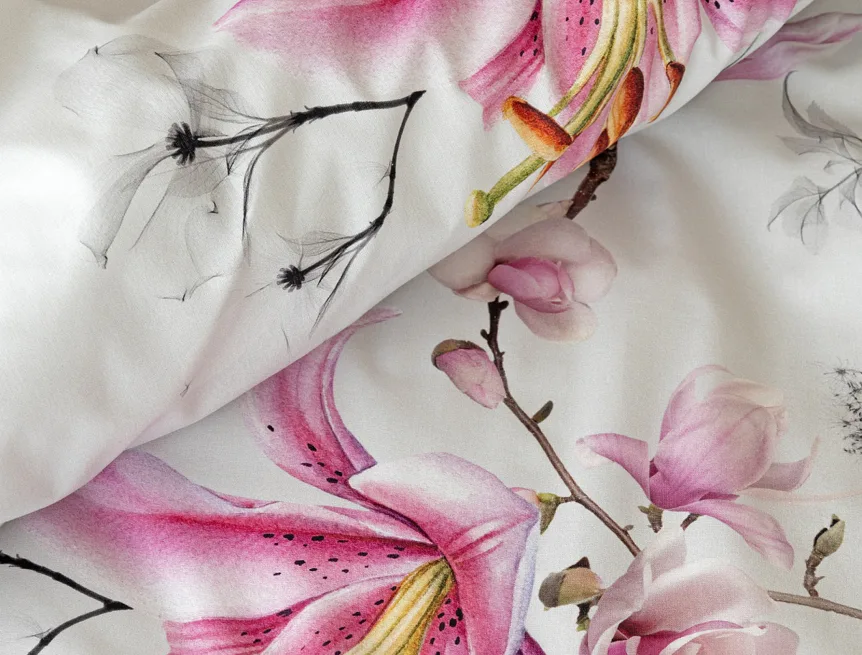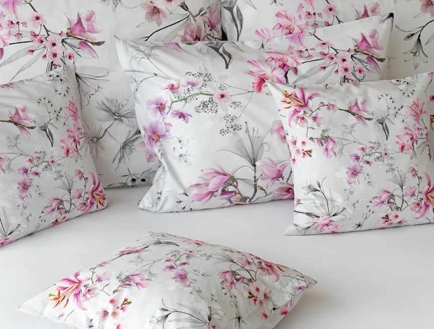 Obklopte se jemností a elegancí s bavlněným povlečením Elisse. Okouzlující vzor kombinuje květy exotických orchidejí a něžných lilií v růžovofialových tónech na světle šedém podkladu. Povlečení je vyrobeno ze 100% prvotřídní bavlny a přináší nejen estetickou hodnotu, ale i výjimečný komfort.