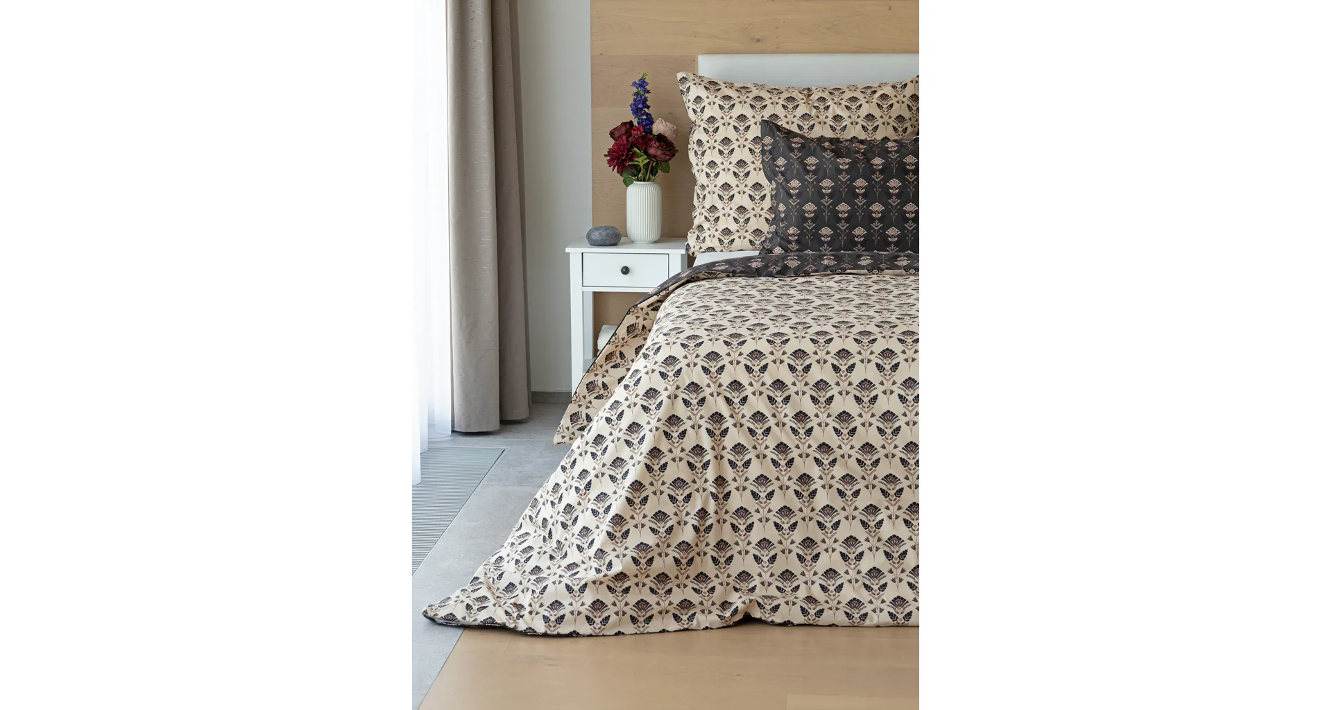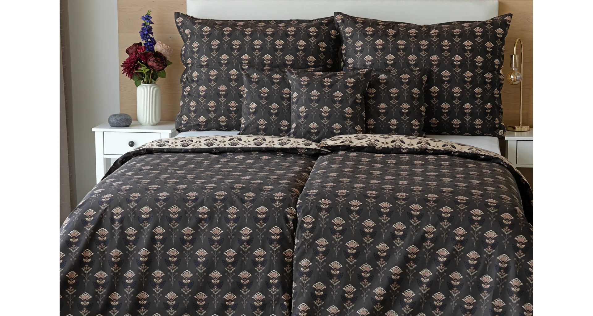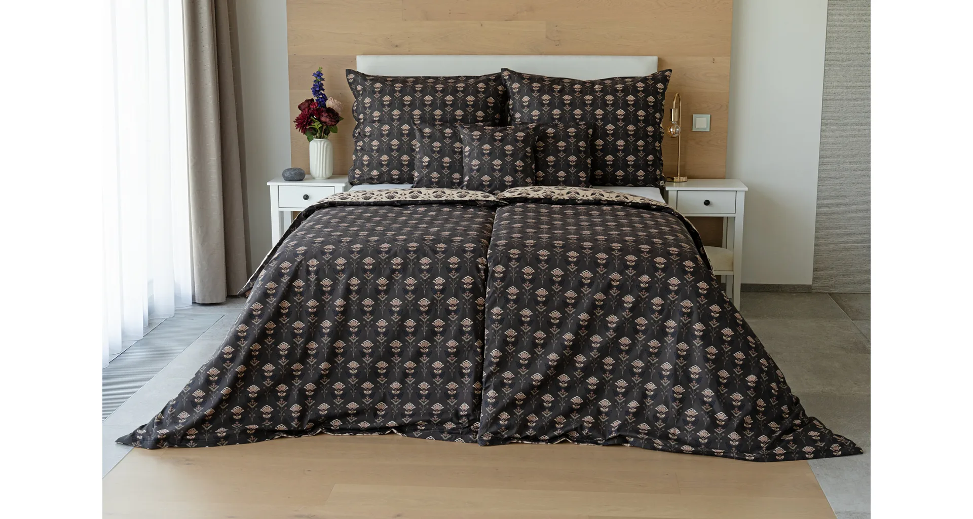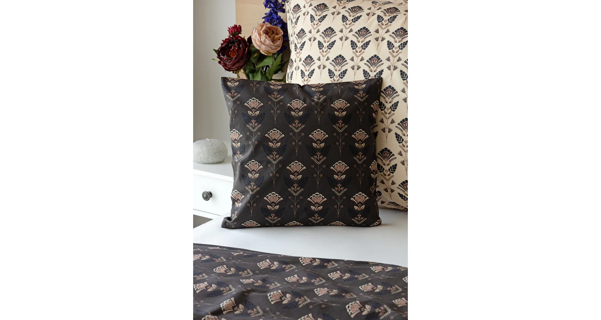 Povlaky na polštářky 40/40 cm se šijí ze stejné látky jako ložní povlečení, vzhledem k rozmanitosti vzoru může být každý povláček jiný. Dostupné pouze v tmavé variantě!