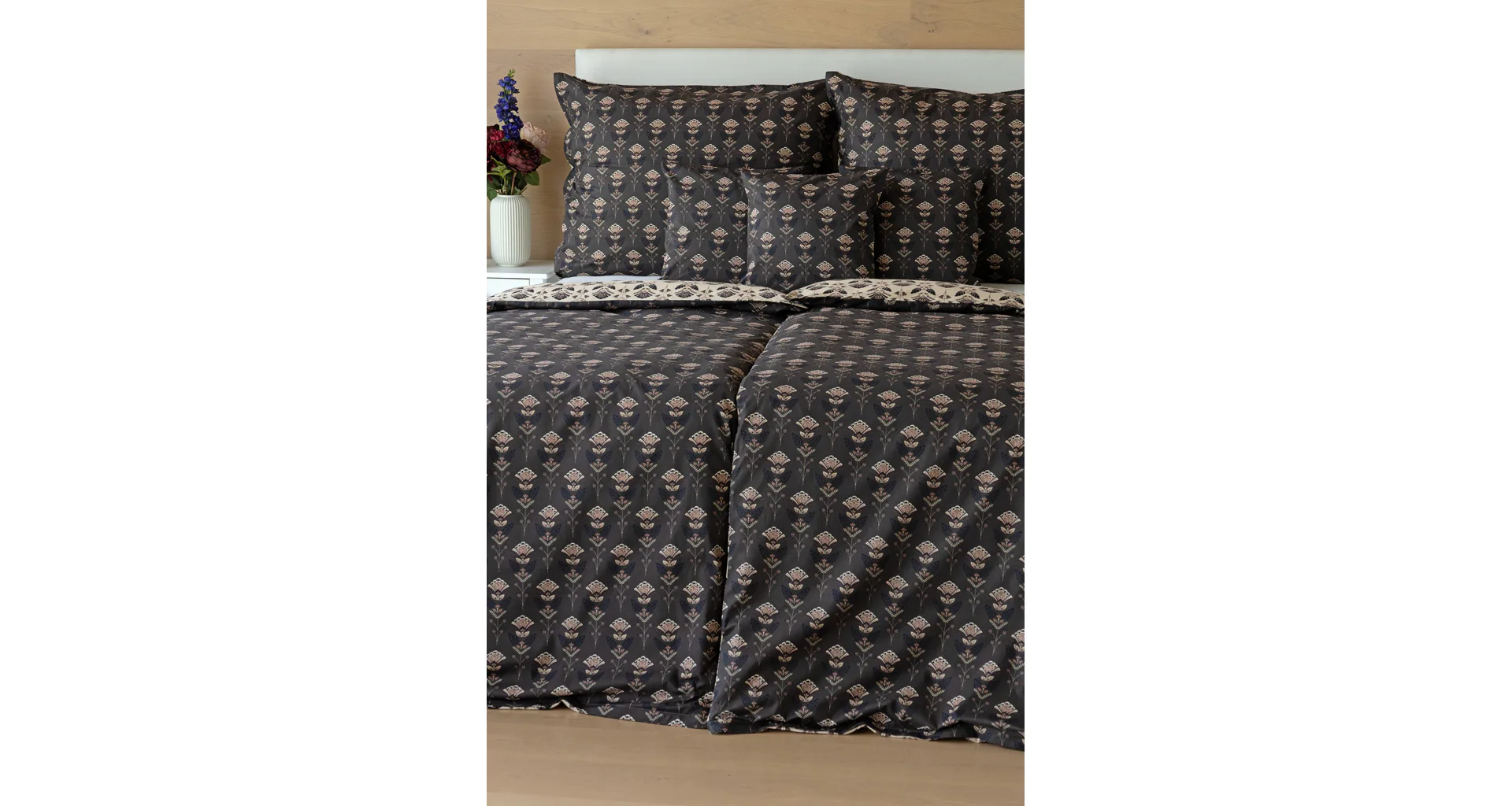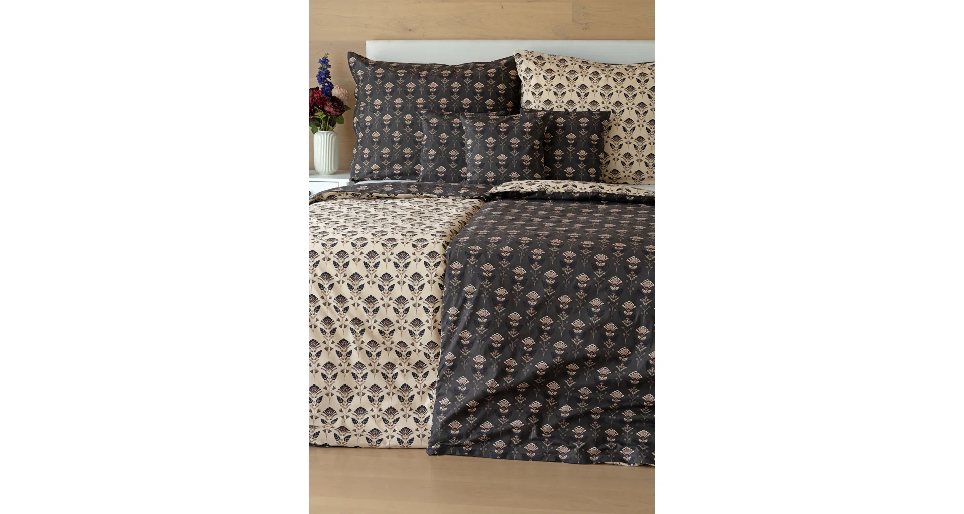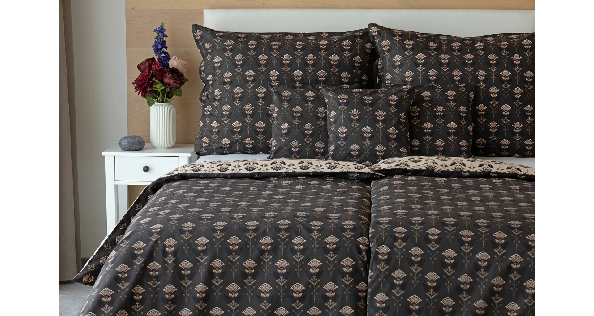 Povlaky na polštářky 40/40 cm se šijí ze stejné látky jako ložní povlečení, vzhledem k rozmanitosti vzoru může být každý povláček jiný. Dostupné pouze v tmavé variantě!