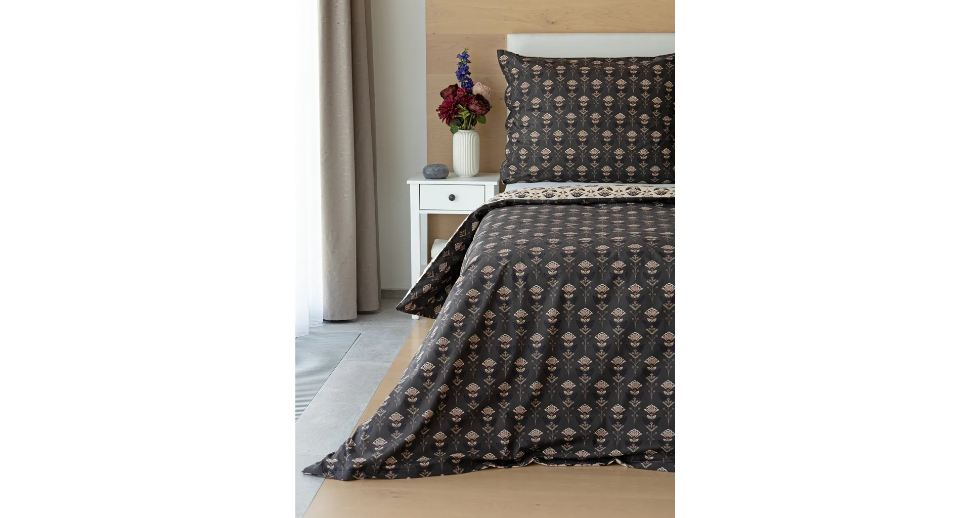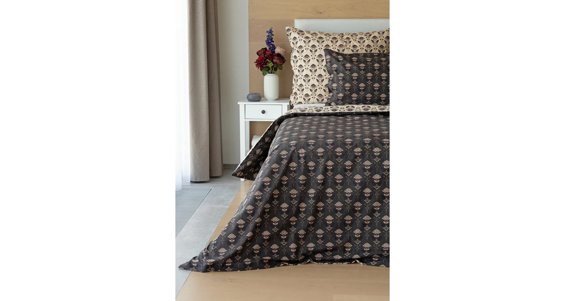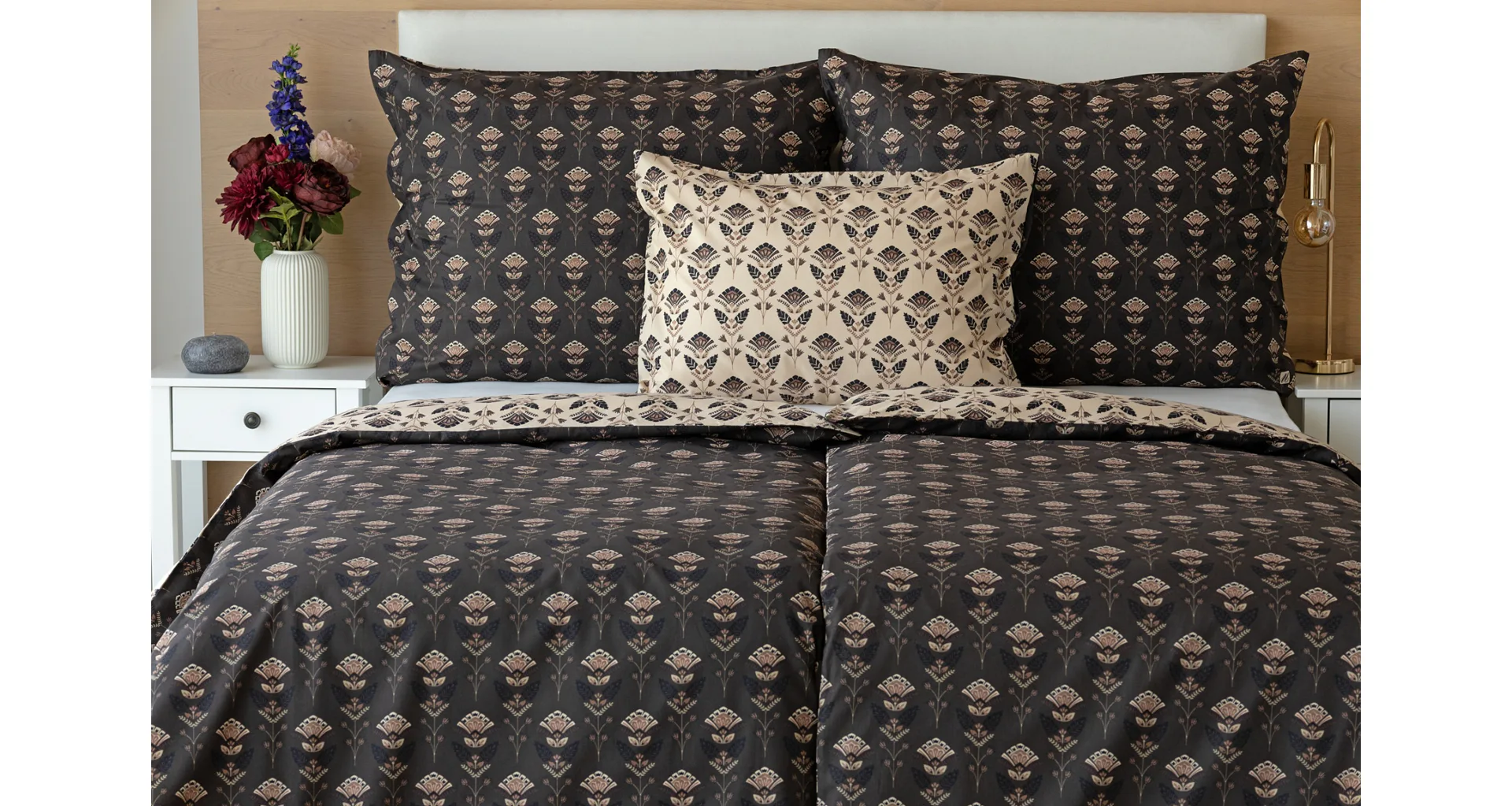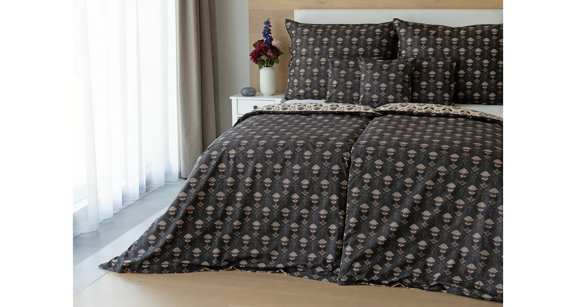 Povlaky na polštářky 40/40 cm se šijí ze stejné látky jako ložní povlečení, vzhledem k rozmanitosti vzoru může být každý povláček jiný. Dostupné pouze v tmavé variantě!