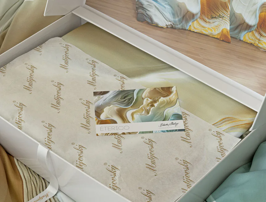 Povlečení je dodáváno v luxusní dárkové krabici (v případě dvou stejných setů baleno v jedné krabici jako sada povlečení na manželské lůžko).