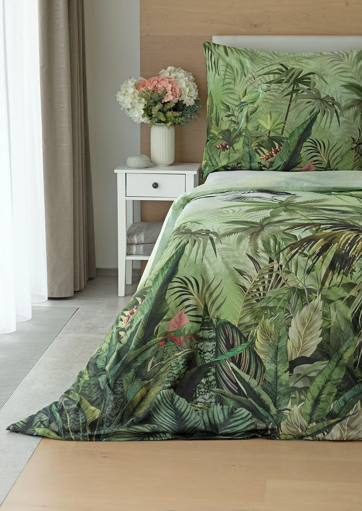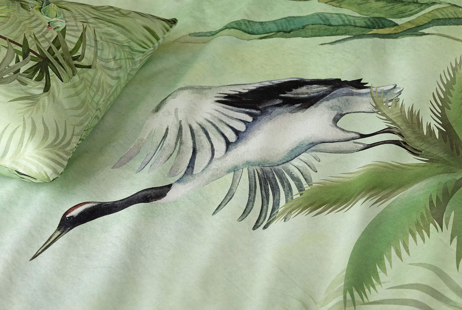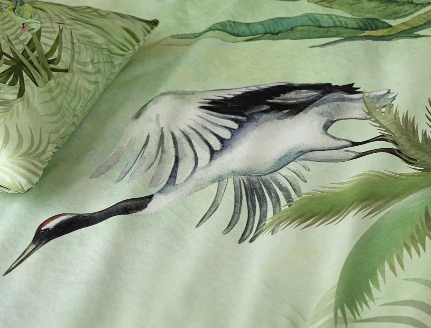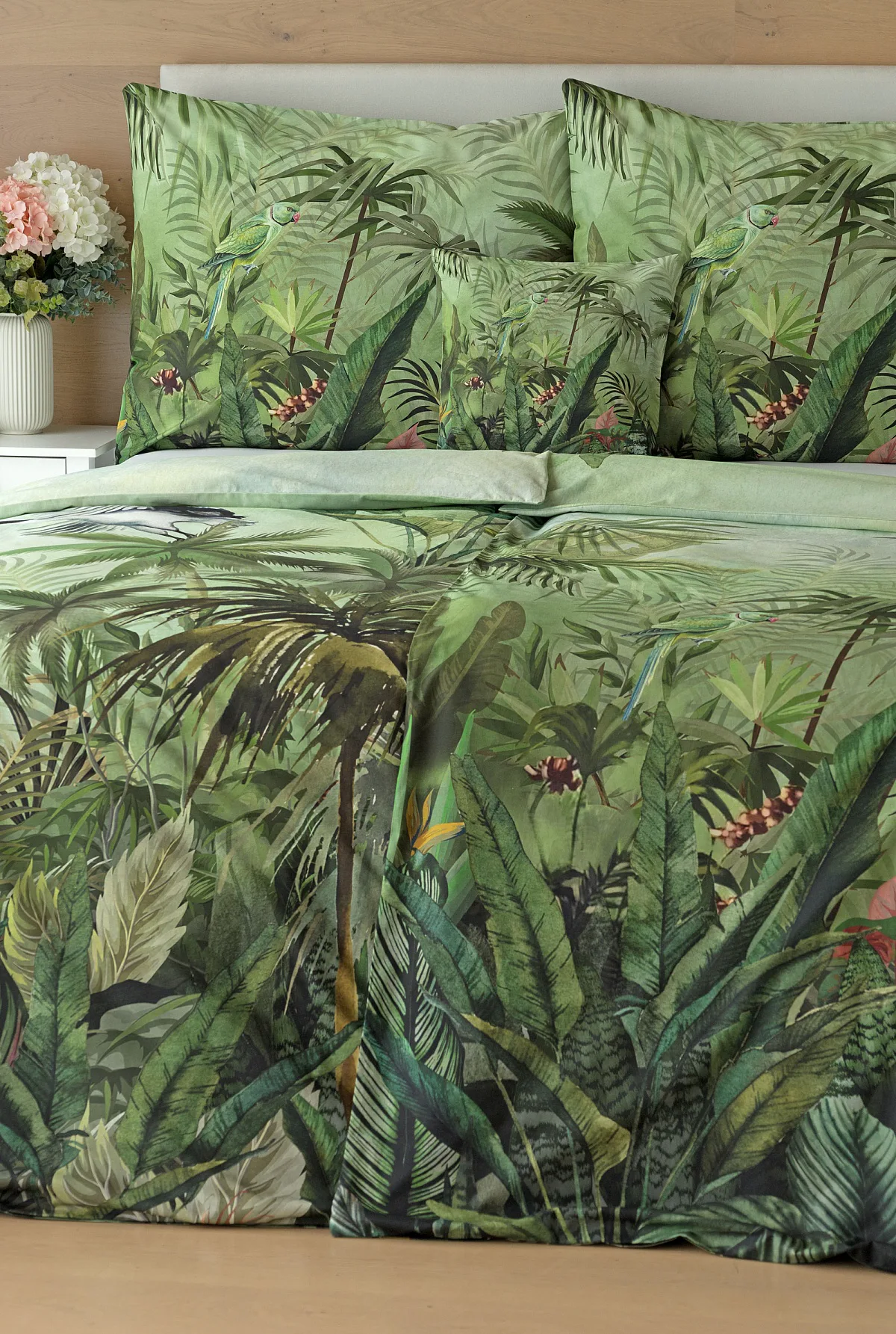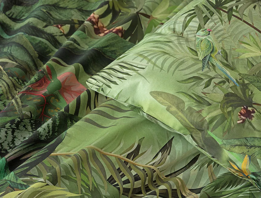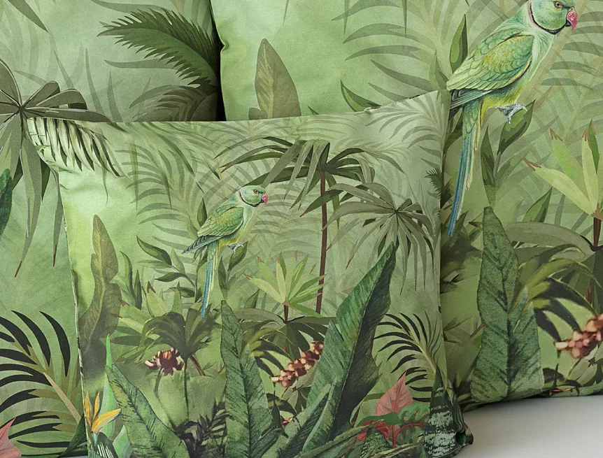 Pokud zrovna nejste na dovolené, nic si z toho nedělejte. S ložním povlečením Exotica si můžete vytvořit vlastní oázu svěžesti a pohody doma v ložnici. Exotický motiv v pestré paletě zelených tónů vyzařuje pozitivní energii, se kterou se budete probouzet do krásných letních dnů.