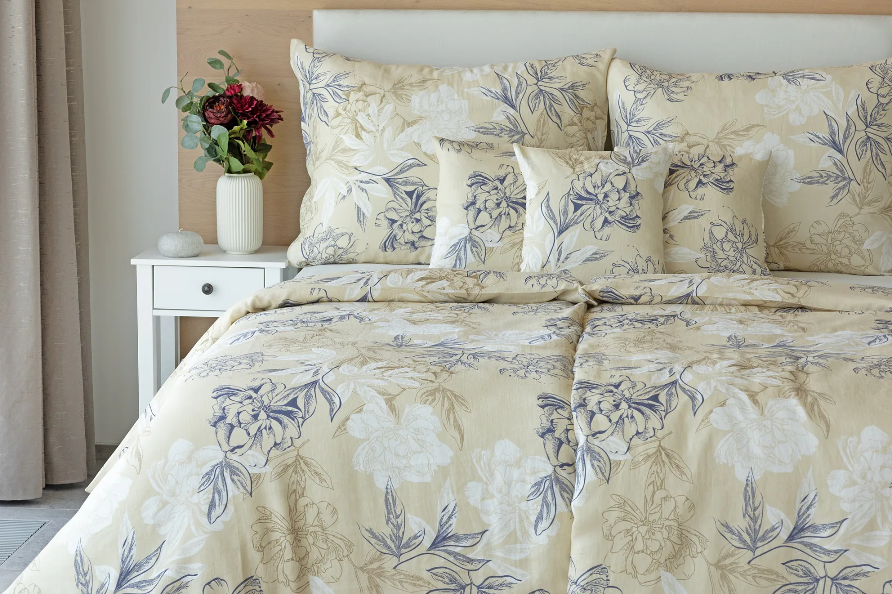 Objevte benefity jedinečného přírodního materiálu a dopřejte si nezaměnitelný komfort s naším lněným povlečením Flora. Jemný květinový motiv v přírodních tónech je jako stvořený pro tento ekologicky šetrný materiál a doladí k dokonalosti každý interiér s rustikálním nádechem.
