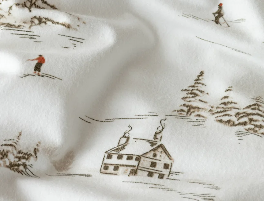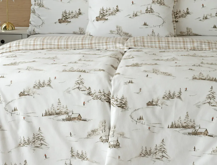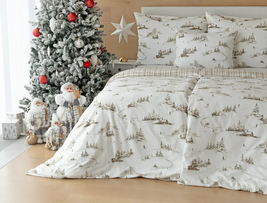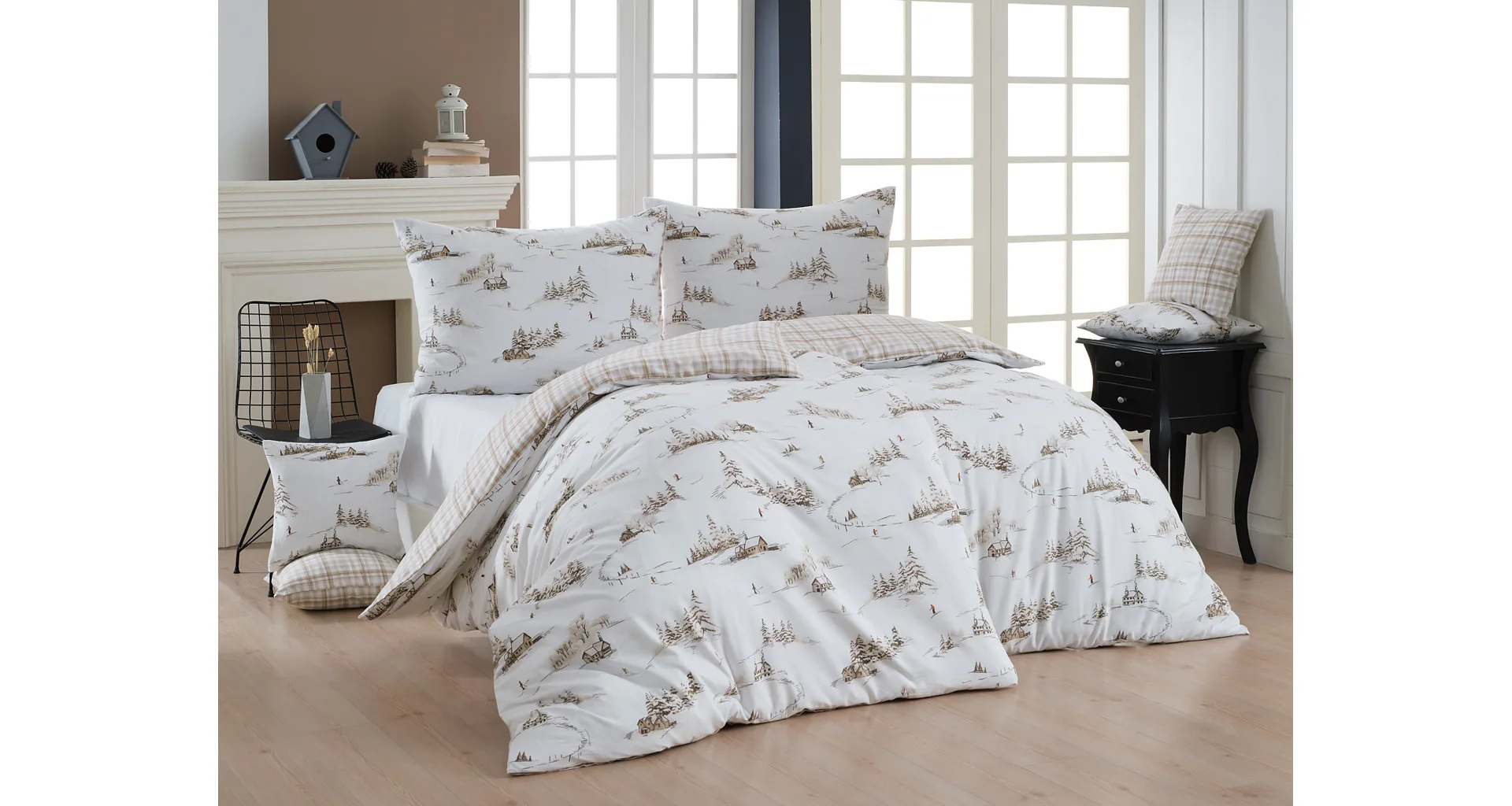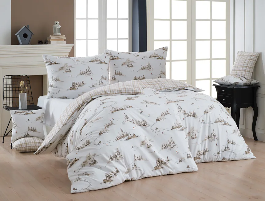 S okouzlujícím povlečením Frosty budou dlouhé zimní večery a chladné noci pohádkou. Jemná kresba horských domečků a zasněžených stromečků na lyžařském svahu vnese do vaší ložnice tu správnou zimní atmosféru. Atraktivitu vzoru podtrhuje nápadité oboustranné provedení, kdy zadní stranu zdobí jemné káro v paletě přírodně hnědých tónů na bílém podkladu. Nechte se hýčkat a zachumlejte se do měkoučkého prémiového flanelu.