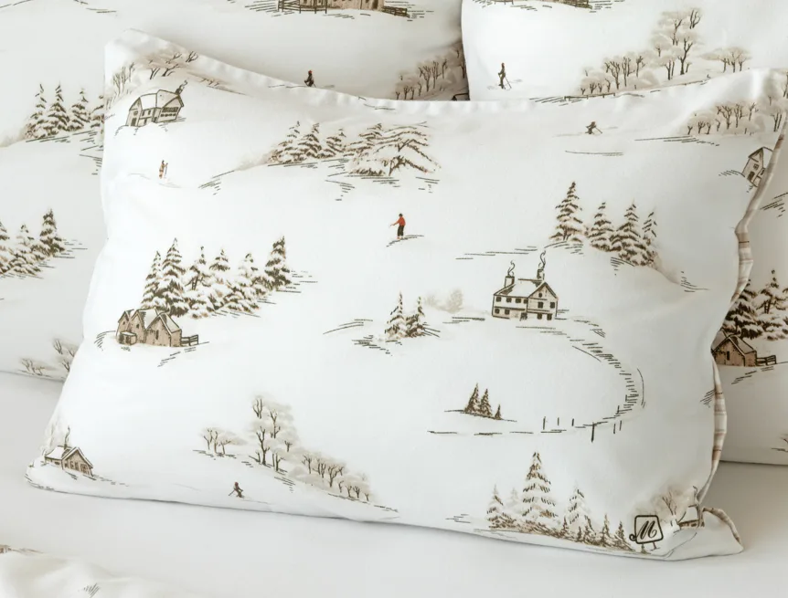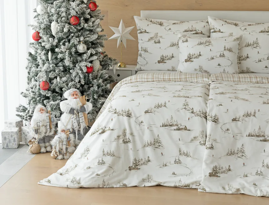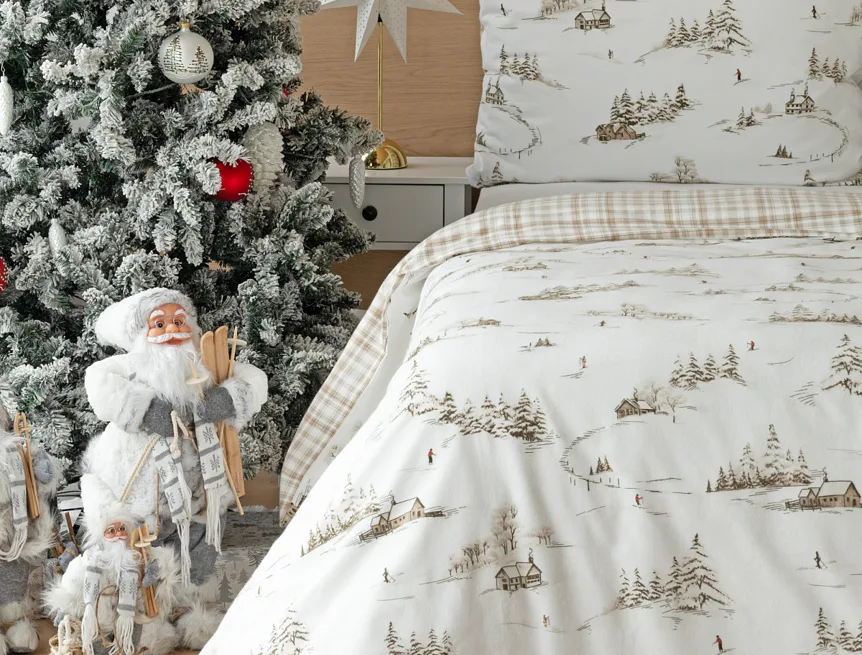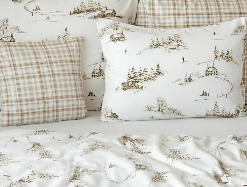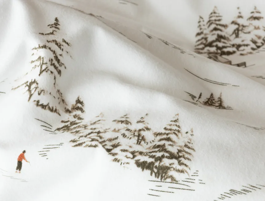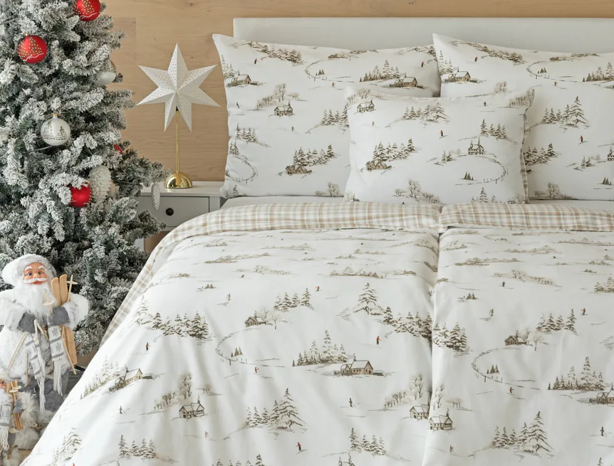 S okouzlujícím povlečením Frosty budou dlouhé zimní večery a chladné noci pohádkou. Jemná kresba horských domečků a zasněžených stromečků na lyžařském svahu vnese do vaší ložnice tu správnou zimní atmosféru. Atraktivitu vzoru podtrhuje nápadité oboustranné provedení, kdy zadní stranu zdobí jemné káro v paletě přírodně hnědých tónů na bílém podkladu. Nechte se hýčkat a zachumlejte se do měkoučkého prémiového flanelu.