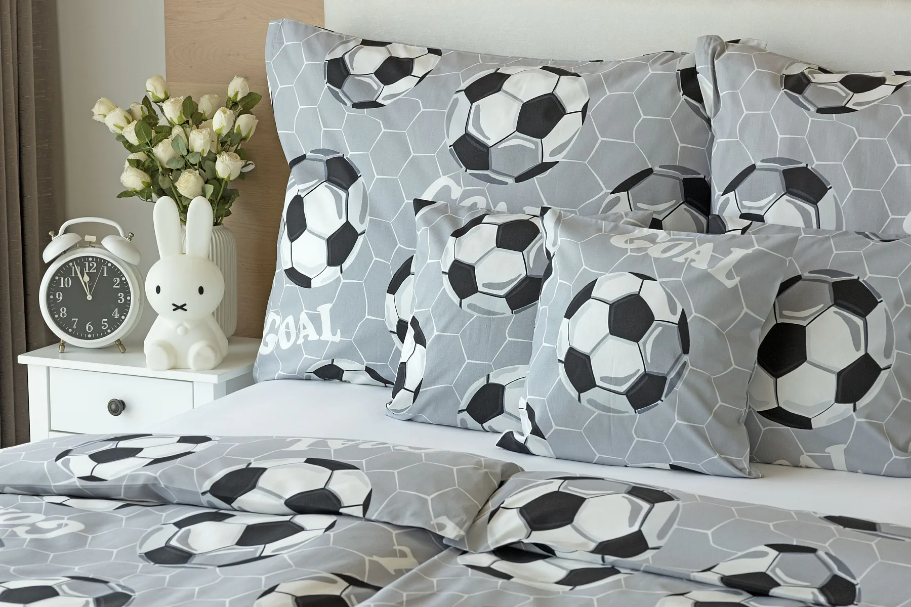 Potěšte své dítko novým bavlněným povlečením Goal s fotbalovou tematikou. Oblíbený sportovní motiv v decentní kombinaci barev potěší malé i větší sportovce. Díky stoprocentní prvotřídní bavlně budou spokojeně usínat děti i rodiče.