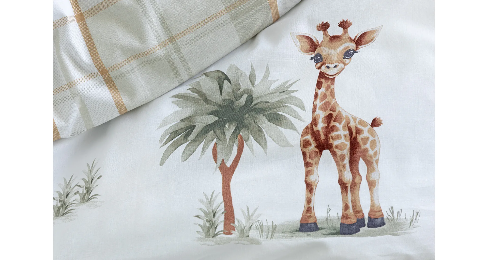 Proměňte dětský pokojíček v zábavné safari s bavlněným povlečením Happy! Roztomilý a hravý design je díky neutrální kombinaci barev vhodný pro děvčátka i chlapce. O jejich spokojený spánek se už postará hebká prvotřídní bavlna.
