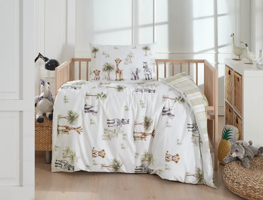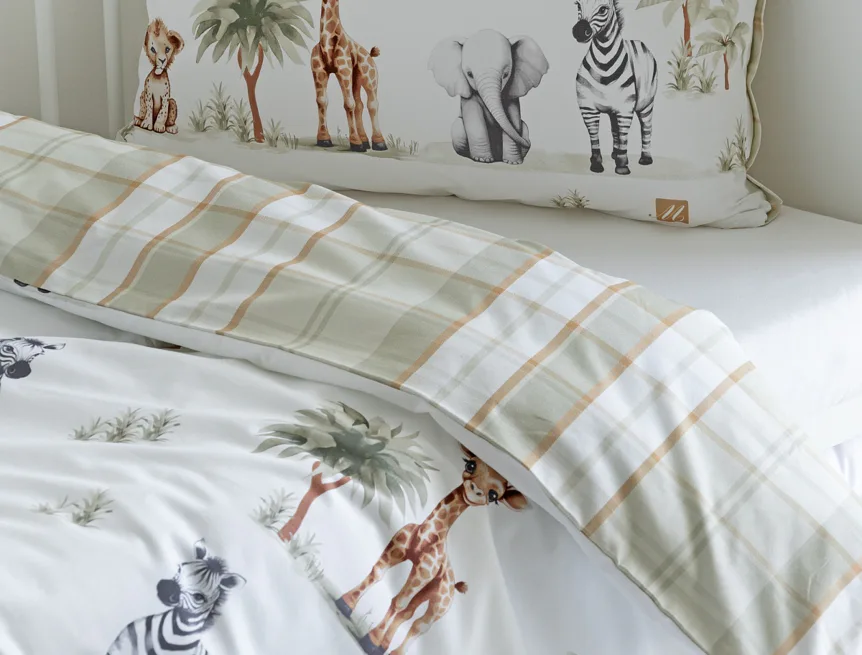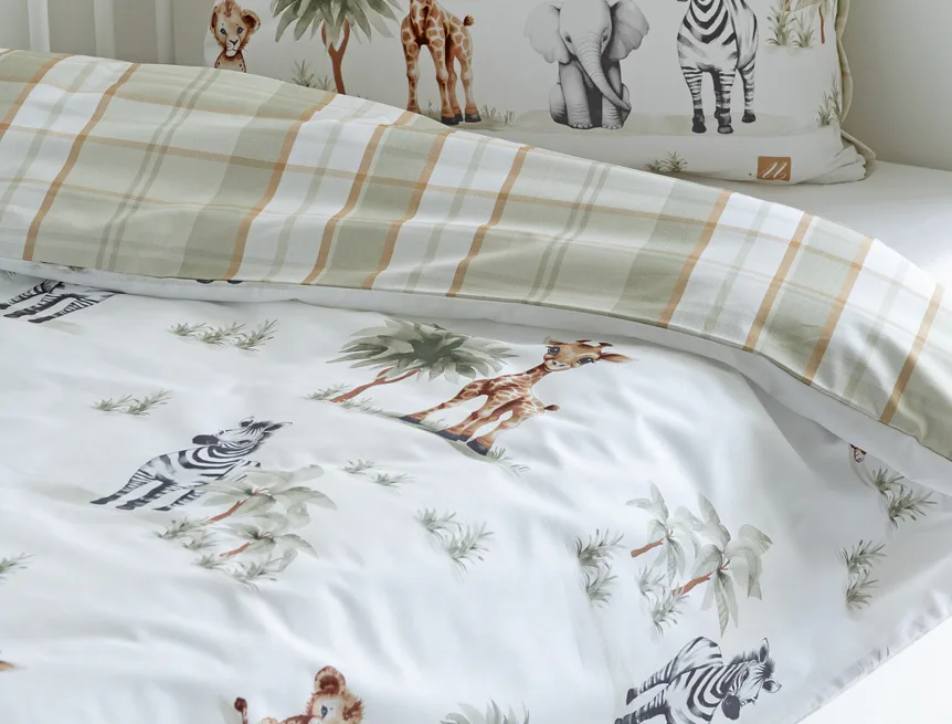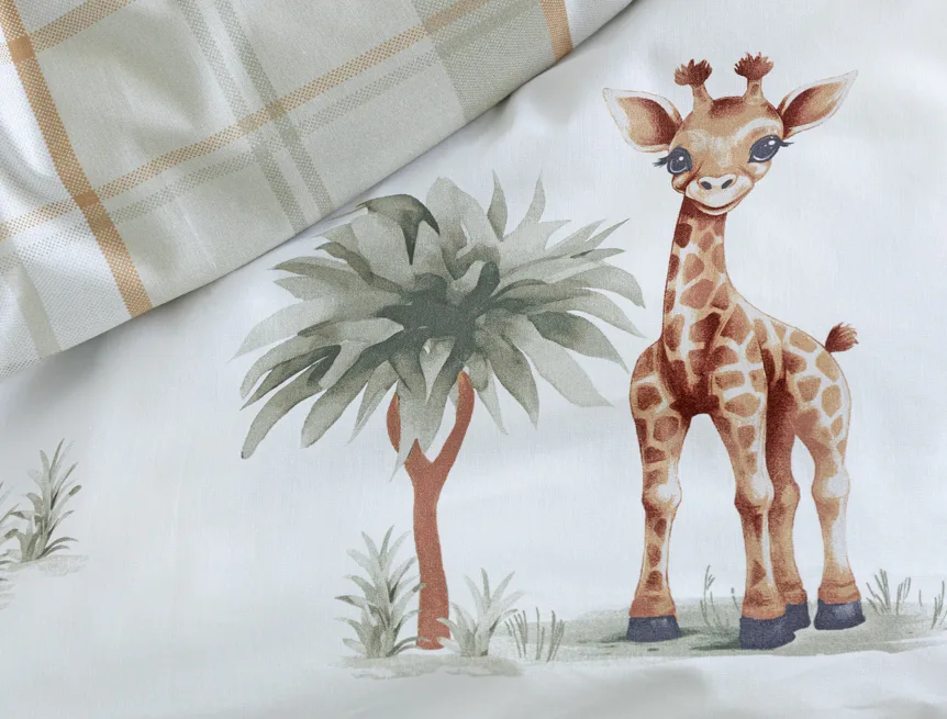 Proměňte dětský pokojíček v zábavné safari s bavlněným povlečením Happy! Roztomilý a hravý design je díky neutrální kombinaci barev vhodný pro děvčátka i chlapce. O jejich spokojený spánek se už postará hebká prvotřídní bavlna.