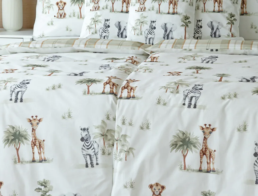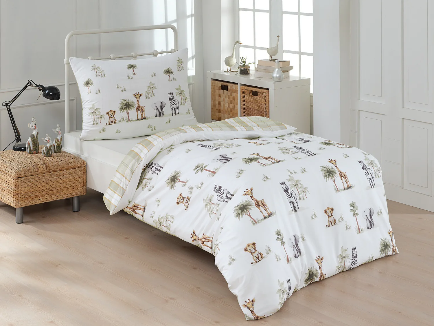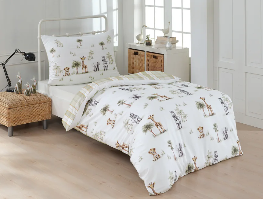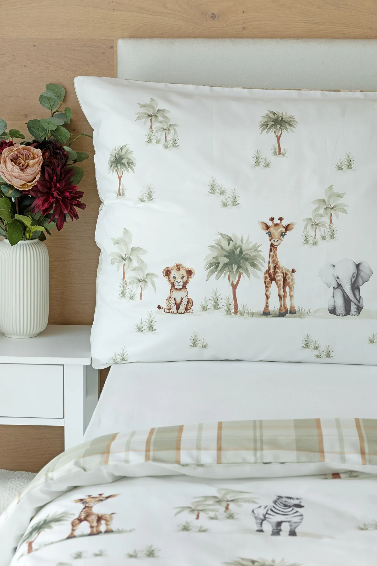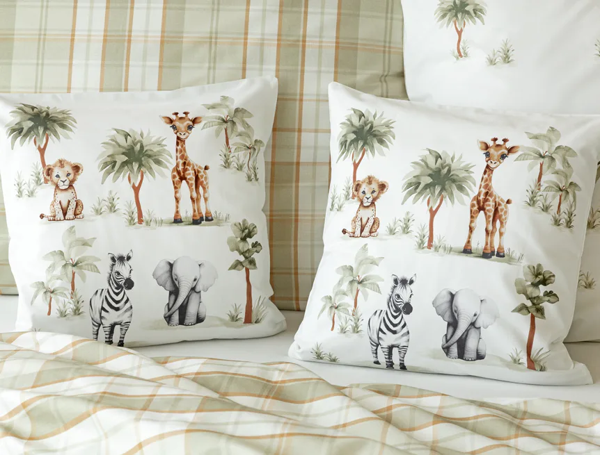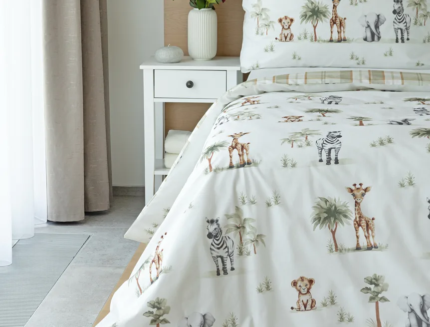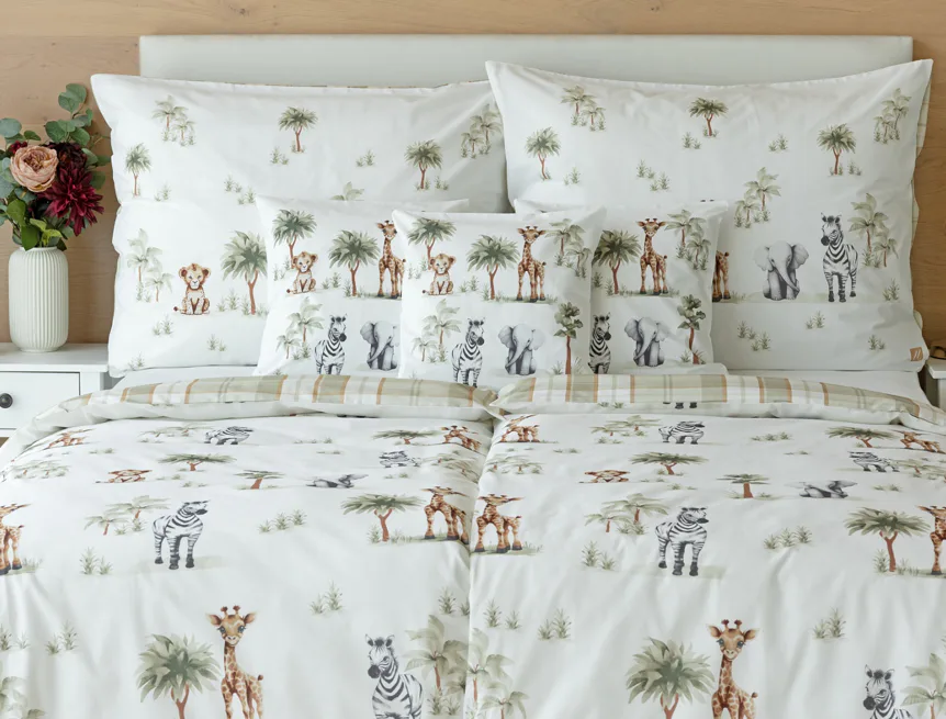 Proměňte dětský pokojíček v zábavné safari s bavlněným povlečením Happy! Roztomilý a hravý design je díky neutrální kombinaci barev vhodný pro děvčátka i chlapce. O jejich spokojený spánek se už postará hebká prvotřídní bavlna.