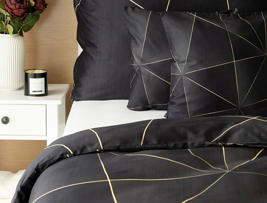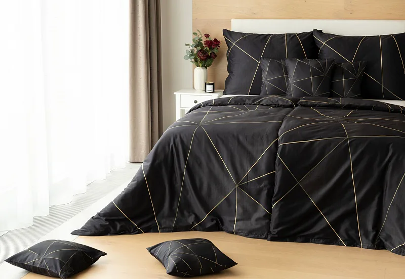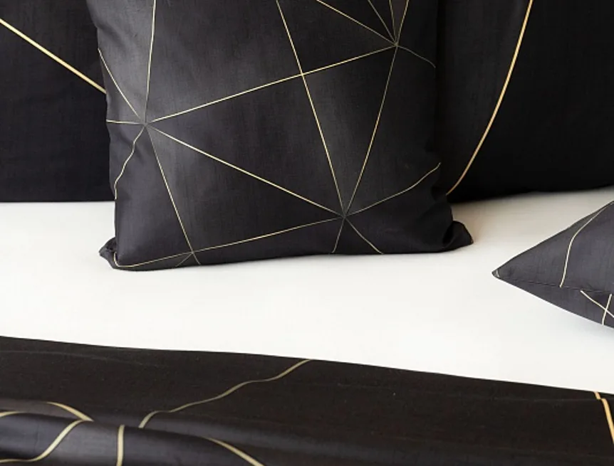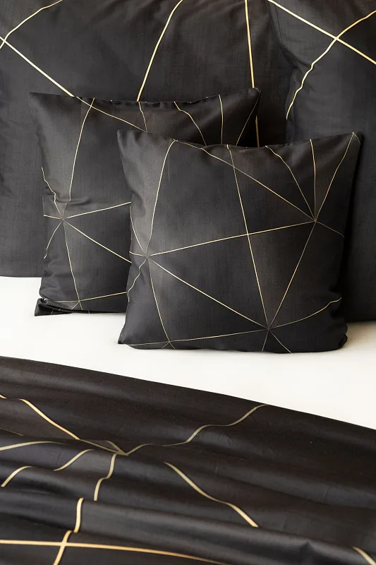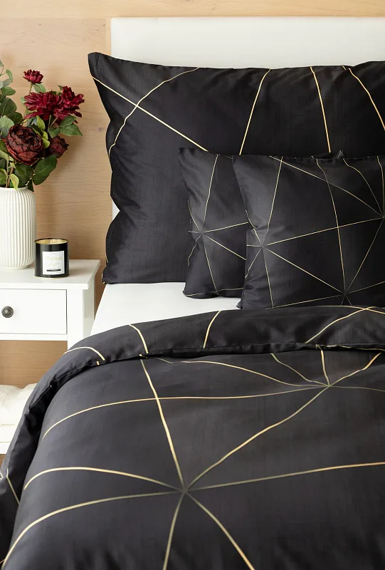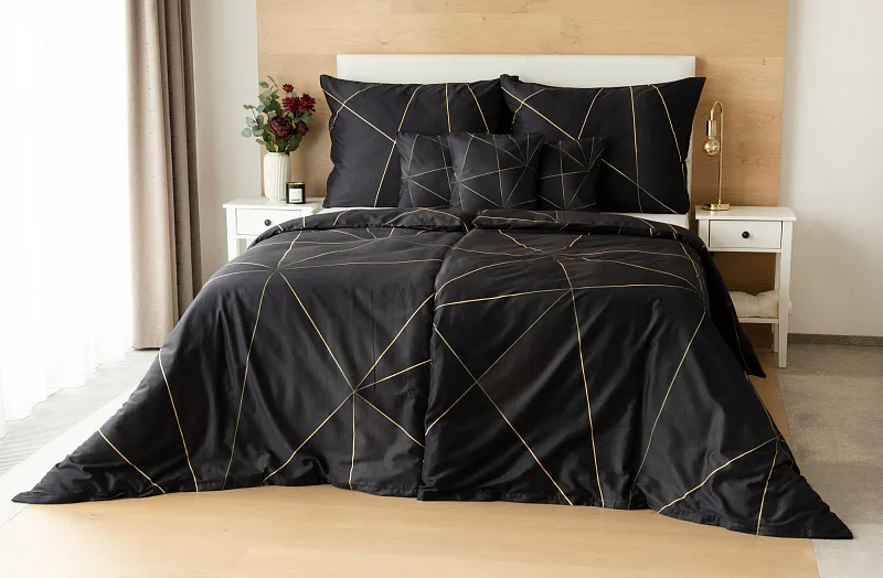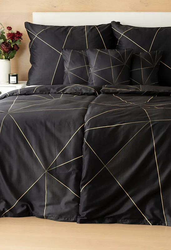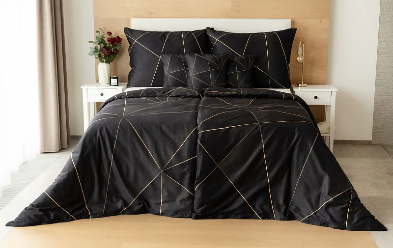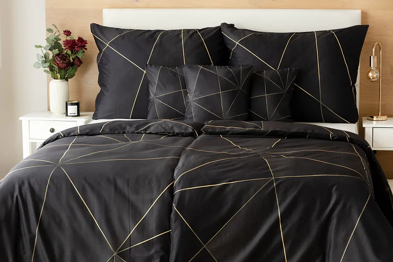 Vychutnejte si dokonalé spojení elegance a prvotřídního luxusu s ložním povlečením Hillary. Poutavý geometrický vzor v kombinaci černé a zlaté vás pohltí a budete ho chtít povlékat zas a znovu....