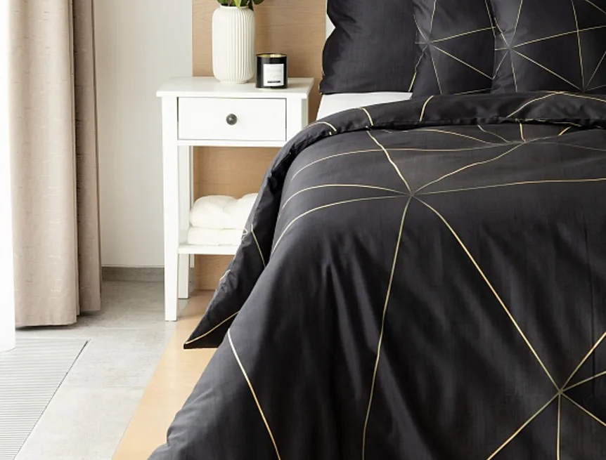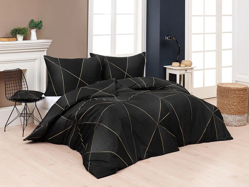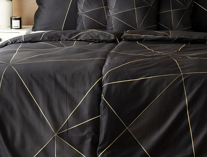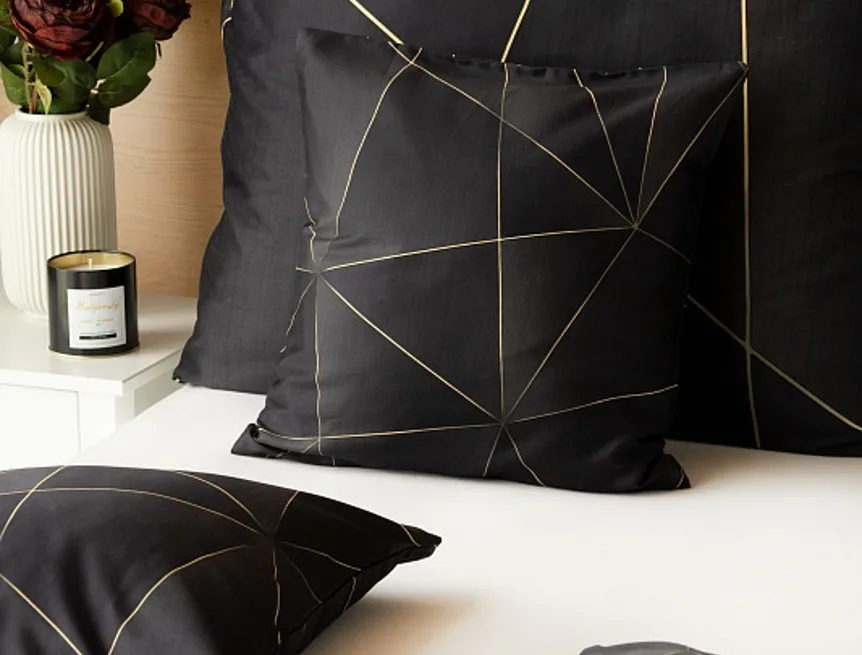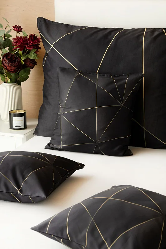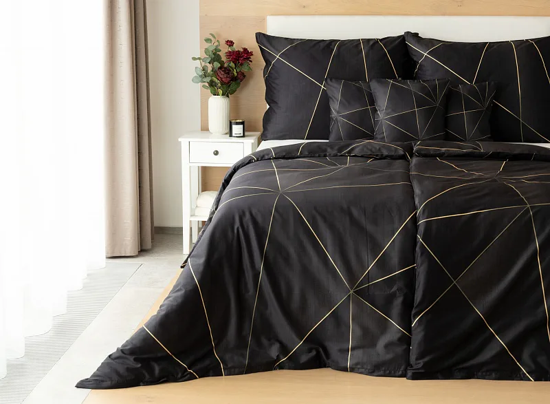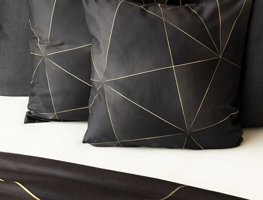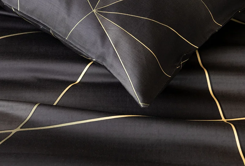 Vychutnejte si dokonalé spojení elegance a prvotřídního luxusu s ložním povlečením Hillary. Poutavý geometrický vzor v kombinaci černé a zlaté vás pohltí a budete ho chtít povlékat zas a znovu....
