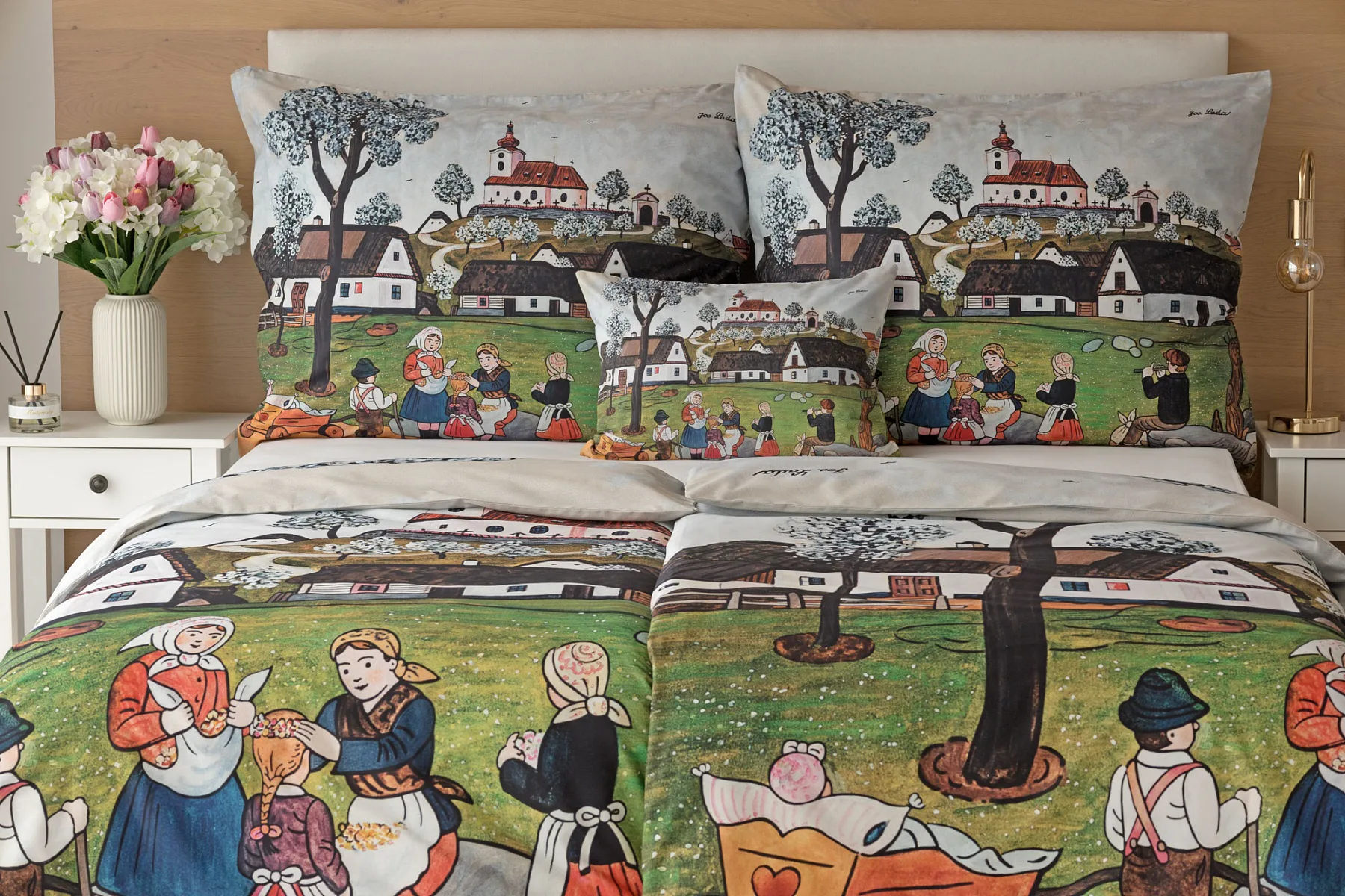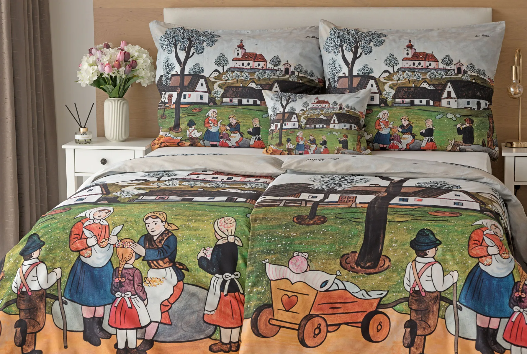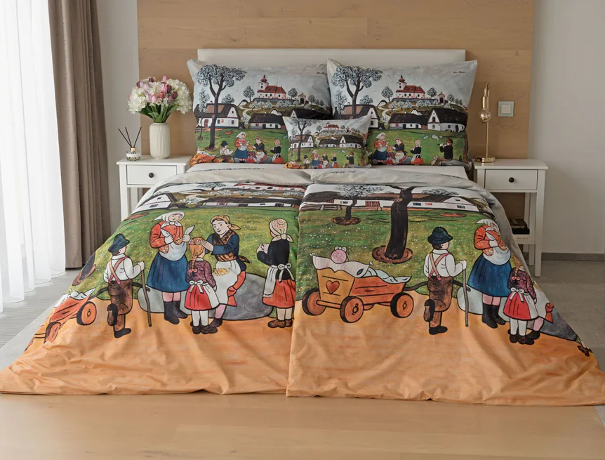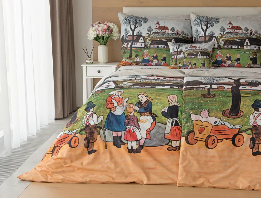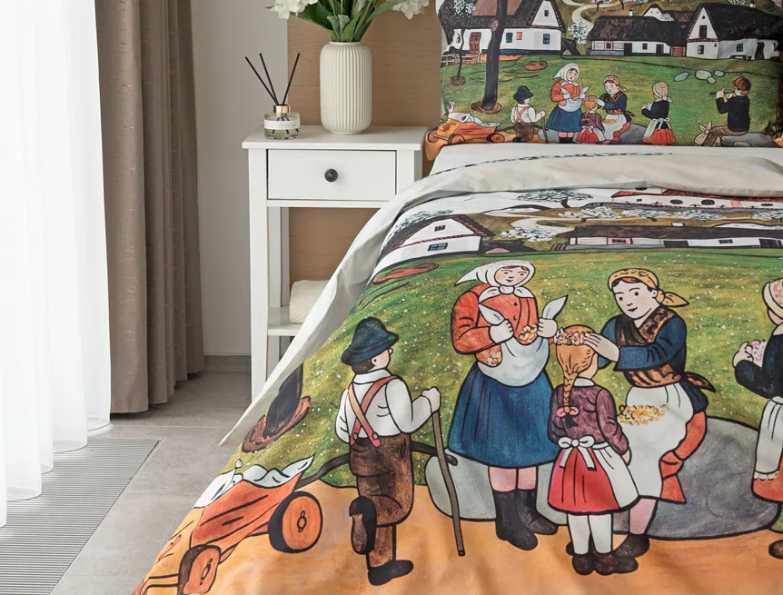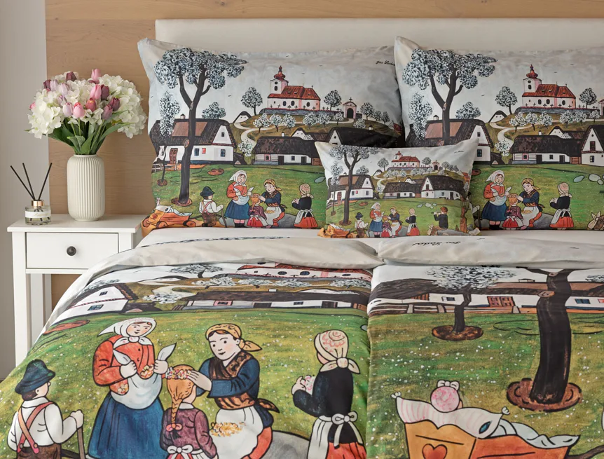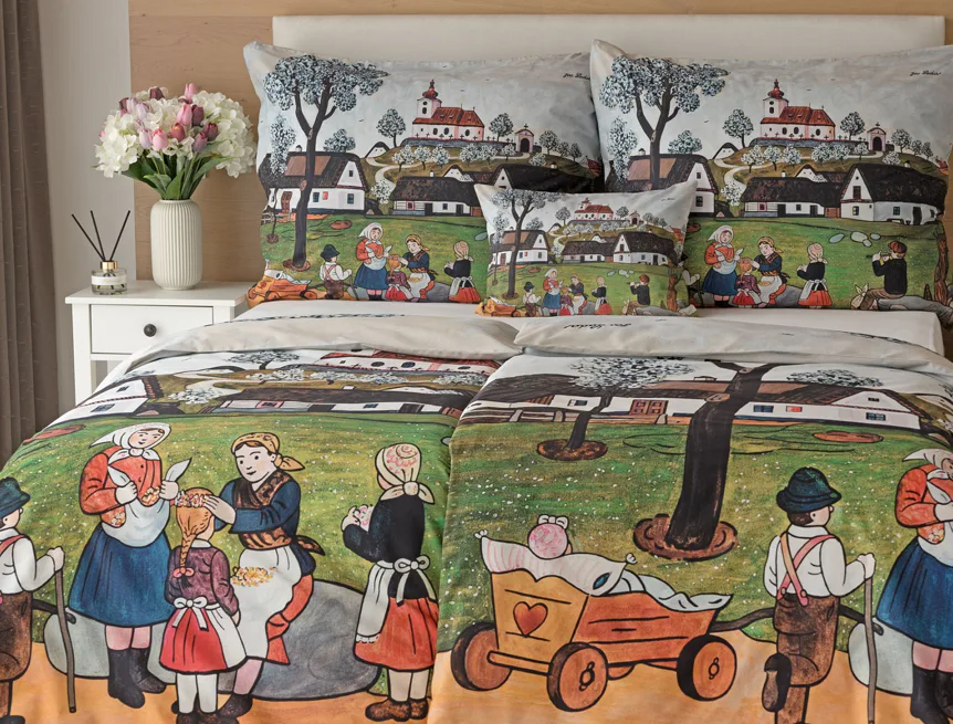 Pozvěte k sobě domů kouzlo nestárnoucích kreseb Josefa Lady, které jsou pro mnohé z nás symbolem dětství, harmonického venkova a české tradice. Svěží jarní atmosféru do vaší ložnice vnese bavlněné povlečení Jaro na vsi.