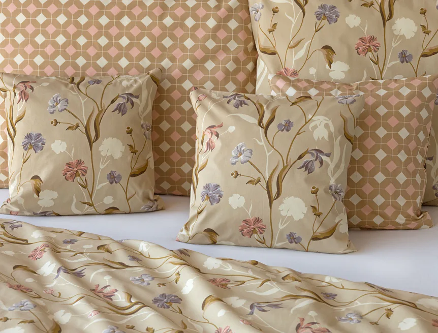 Povlaky na polštářky 40/40 cm se šijí ze stejné látky jako ložní povlečení, vzhledem k rozmanitosti vzoru může být každý povláček jiný.