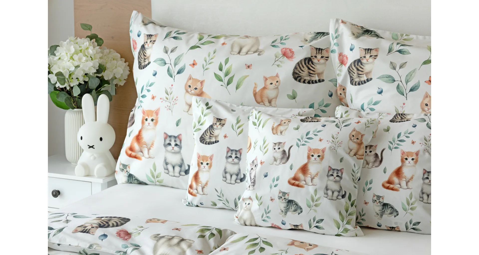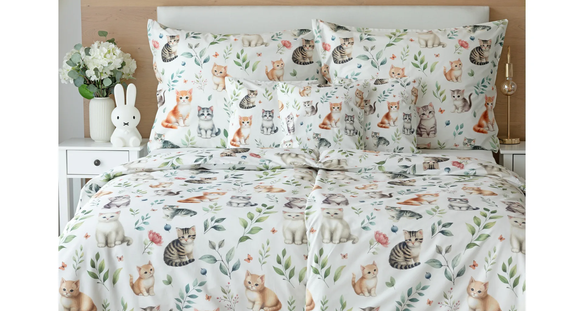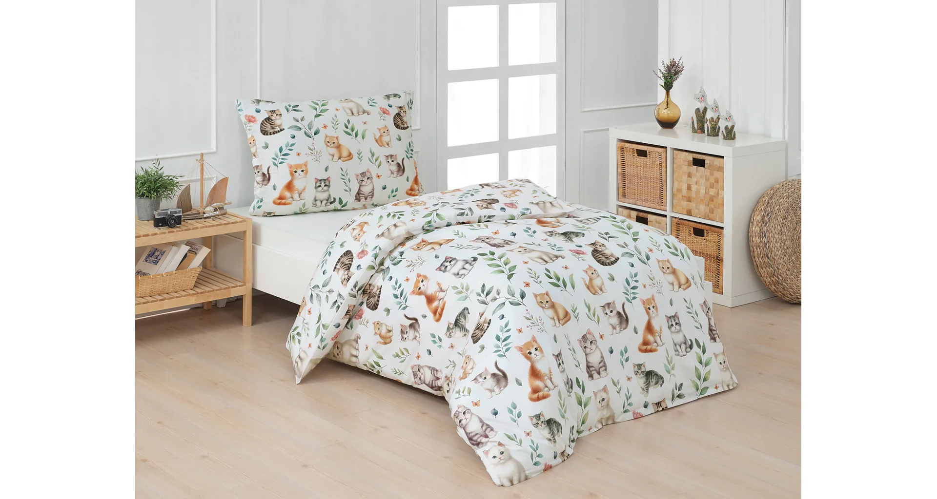S povlečením Kitty vykouzlíte úsměv na tváři všem malým i velkým milovníkům kočičích mazlíčků! Hravý design je díky neutrální kombinaci barev vhodný pro děvčátka i chlapce. O jejich spokojený spánek se postará hebká prvotřídní bavlna.