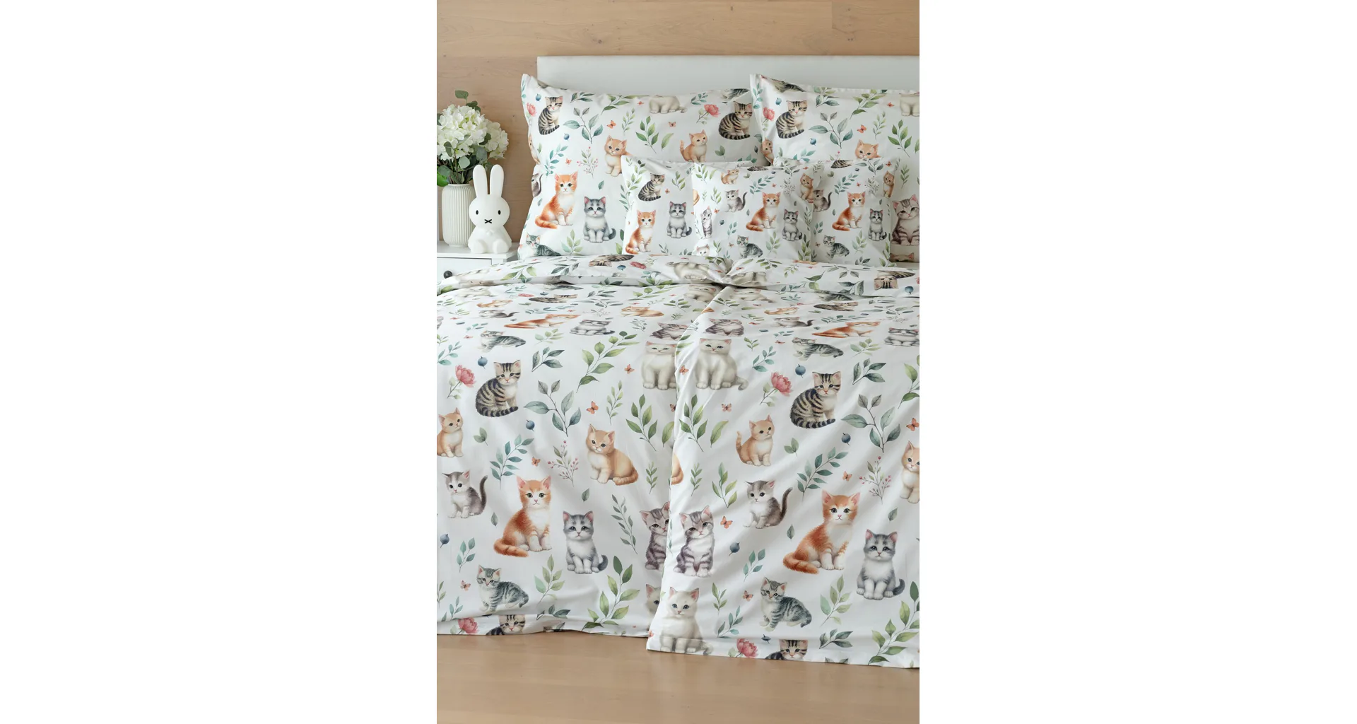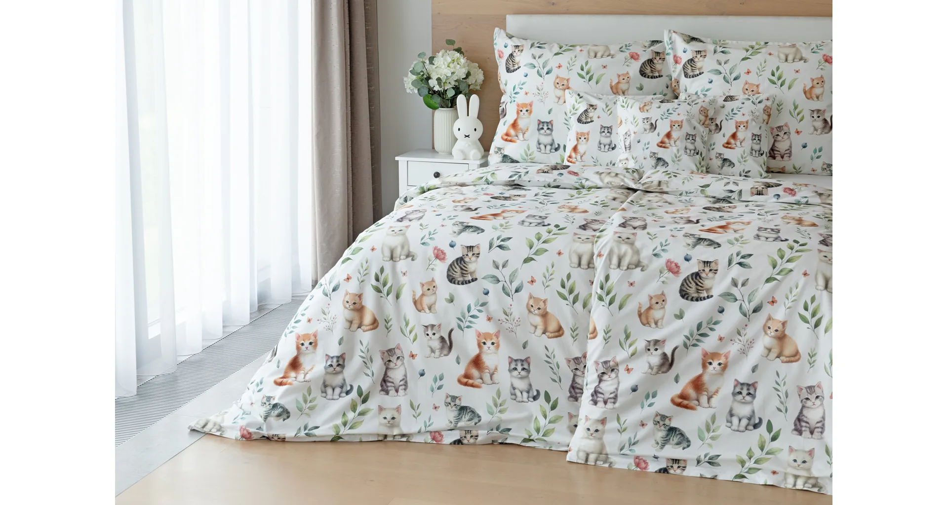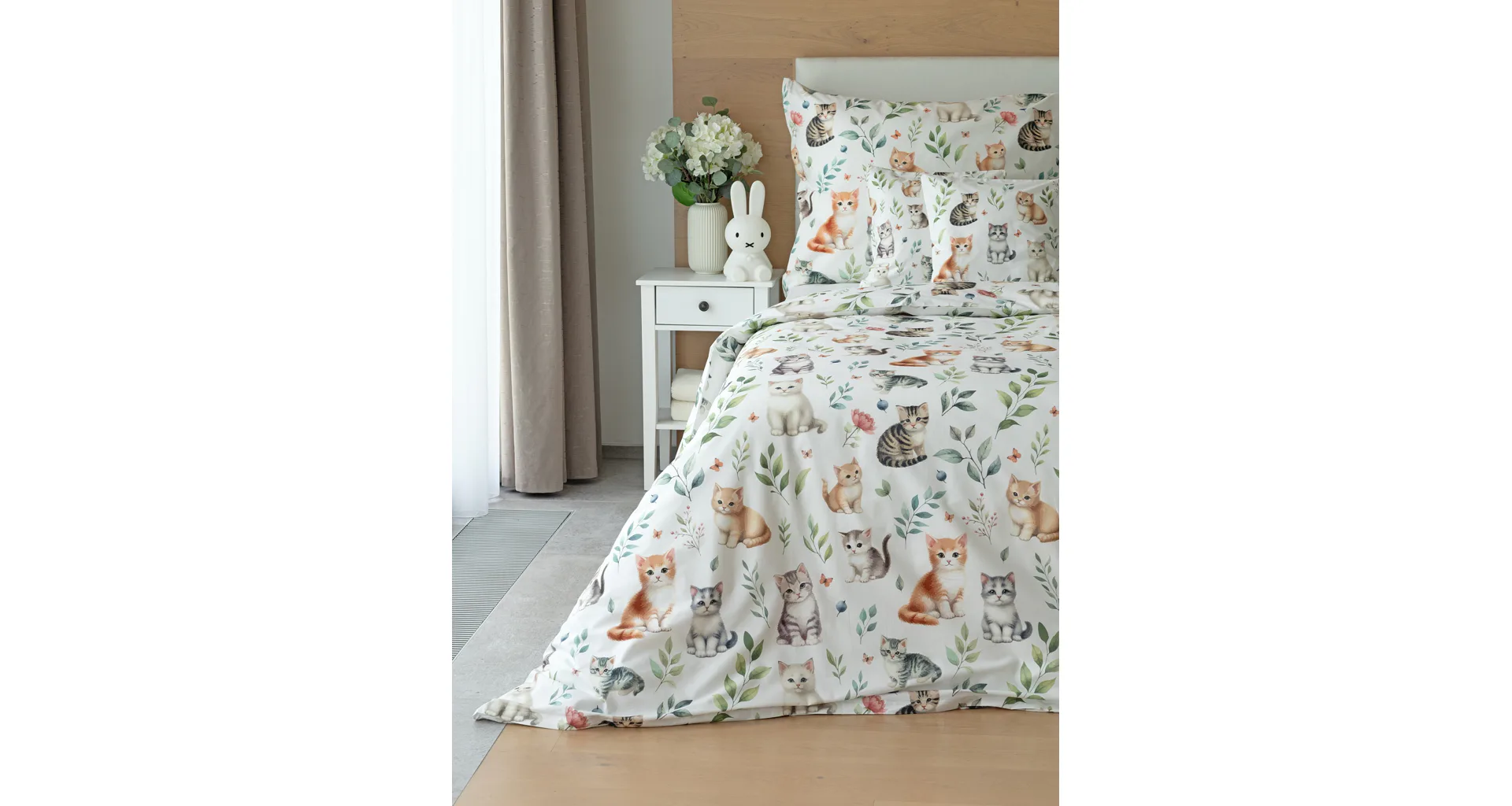 S povlečením Kitty vykouzlíte úsměv na tváři všem malým i velkým milovníkům kočičích mazlíčků! Hravý design je díky neutrální kombinaci barev vhodný pro děvčátka i chlapce. O jejich spokojený spánek se postará hebká prvotřídní bavlna.