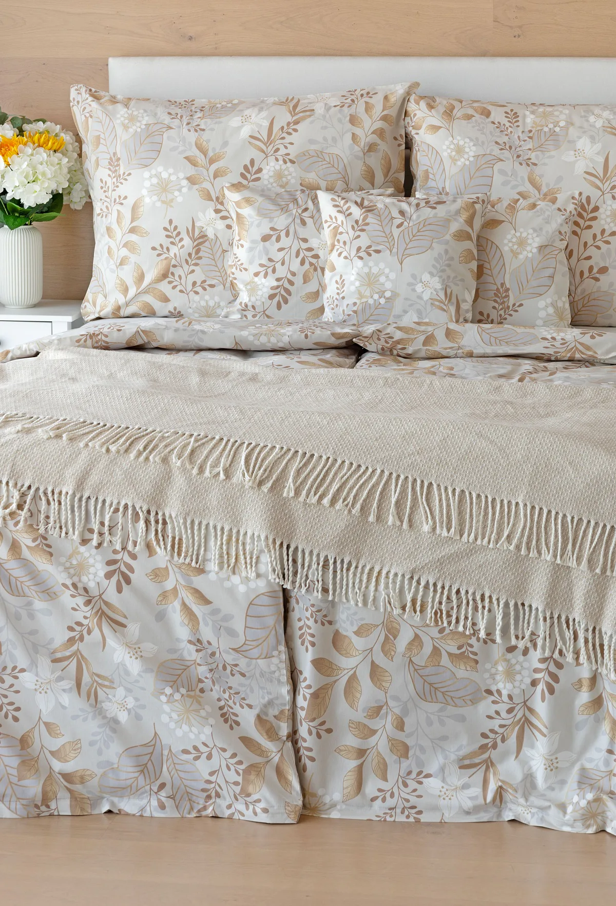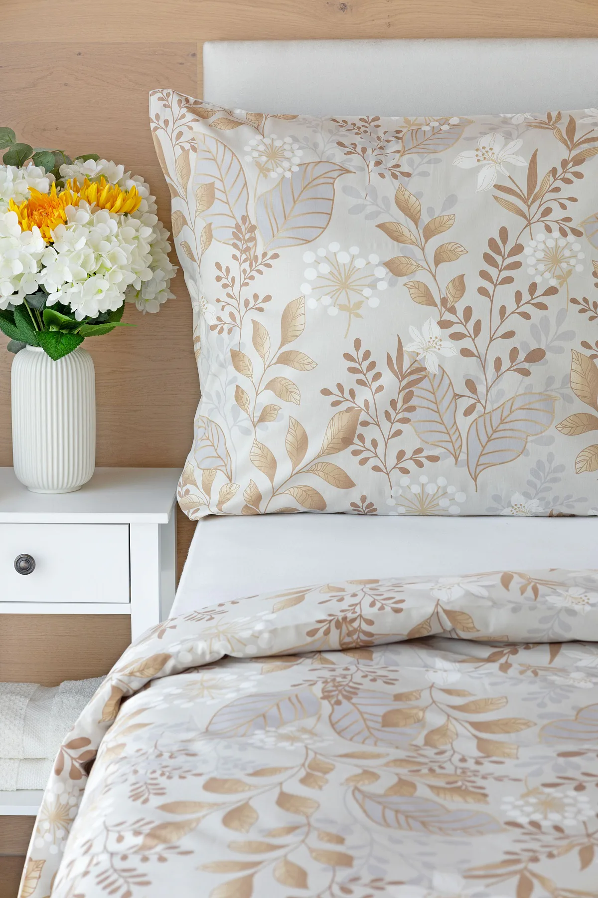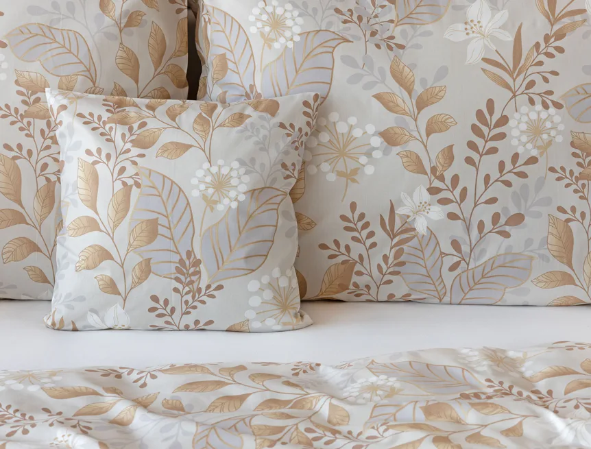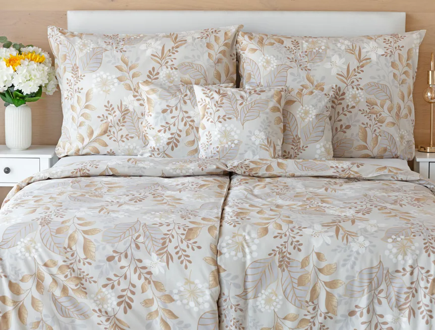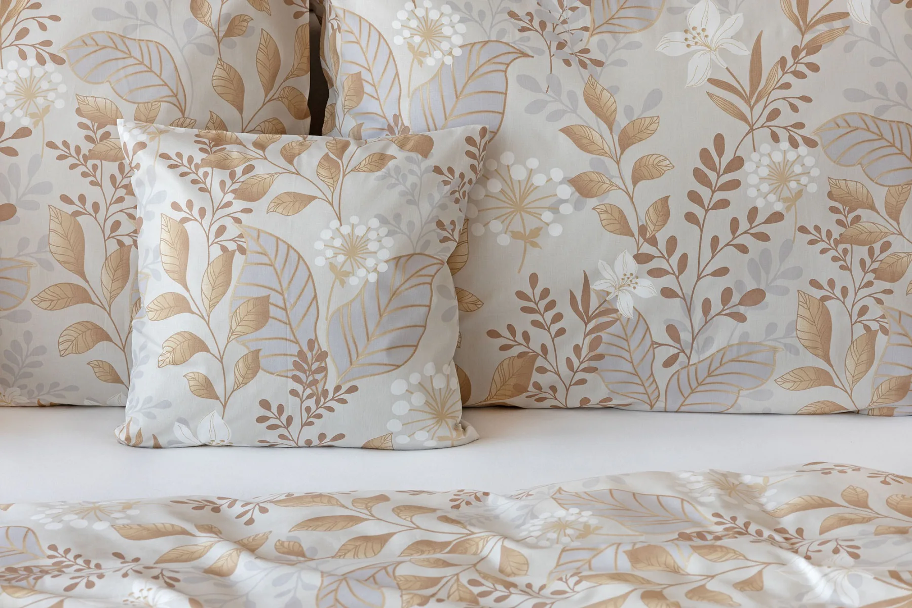 S okouzlujícím ložním povlečením Libertine bude vaše ložnice vždy působivě elegantní. Jemný florální motiv v paletě béžových, hnědých a světle šedých tónů je v dokonalé harmonii s podkladem v barvě slonové kosti.