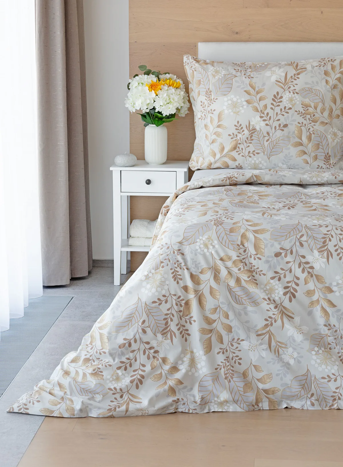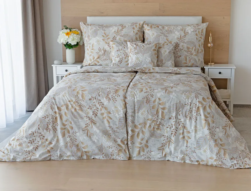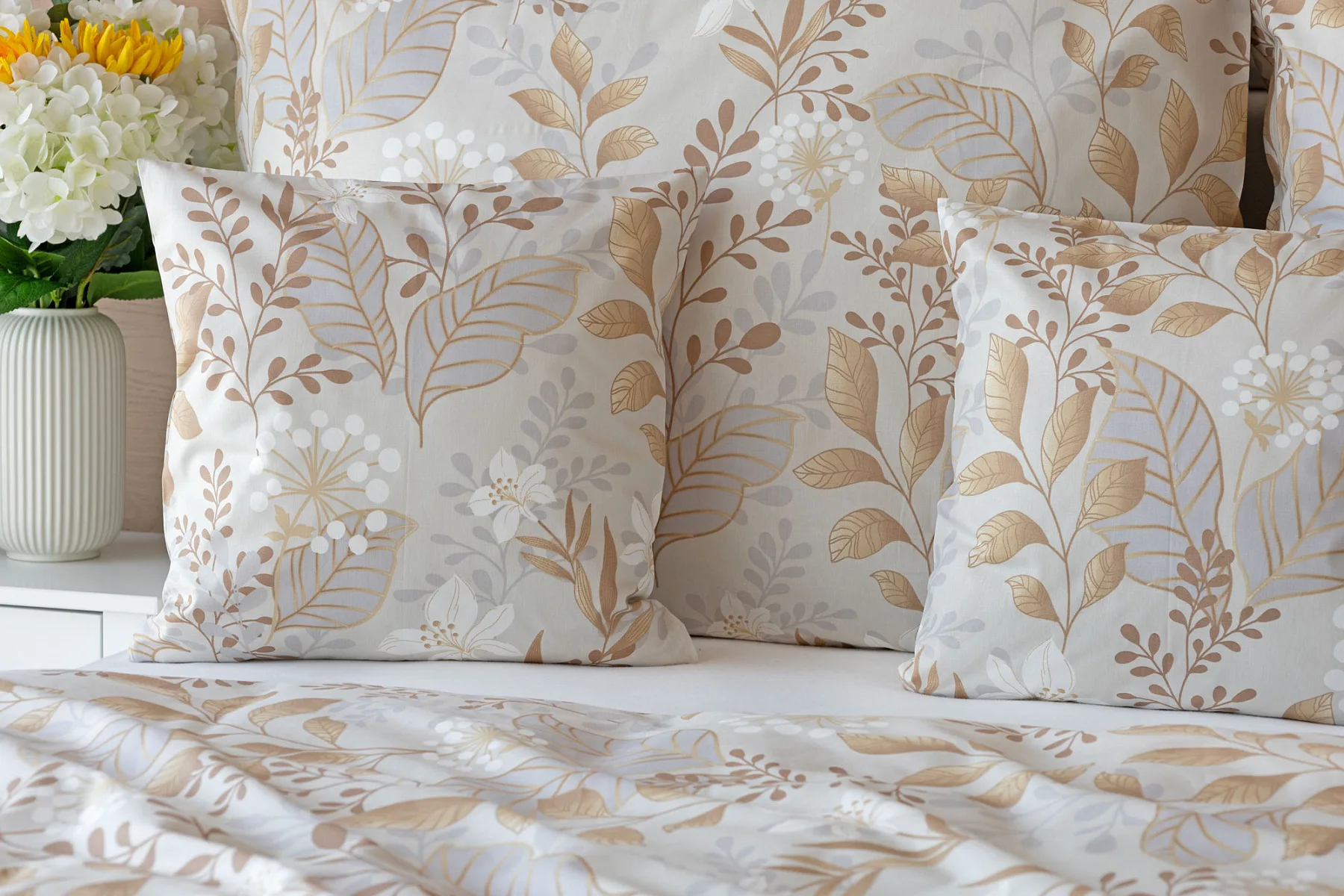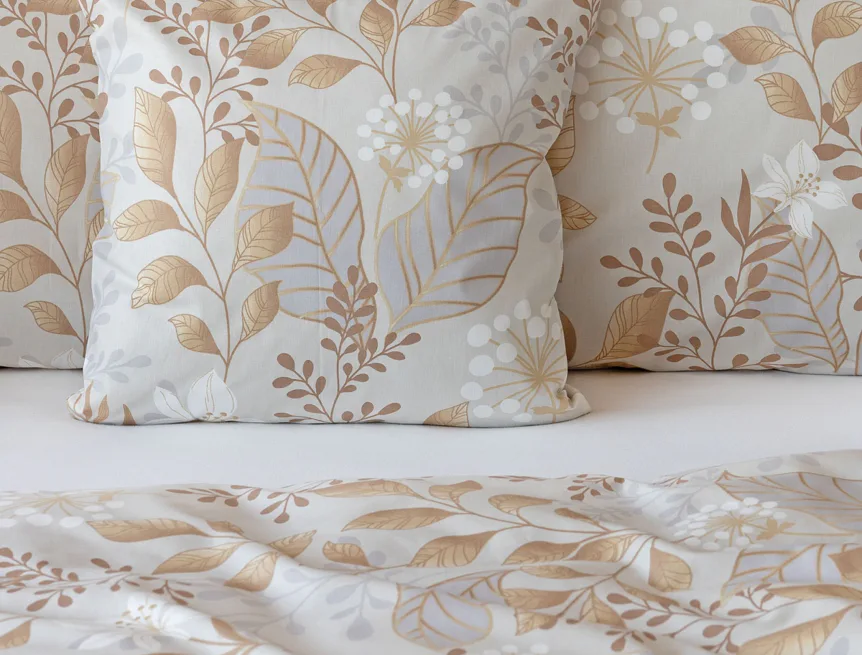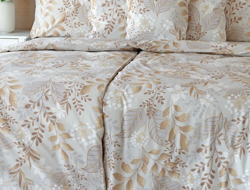 S okouzlujícím ložním povlečením Libertine bude vaše ložnice vždy působivě elegantní. Jemný florální motiv v paletě béžových, hnědých a světle šedých tónů je v dokonalé harmonii s podkladem v barvě slonové kosti.