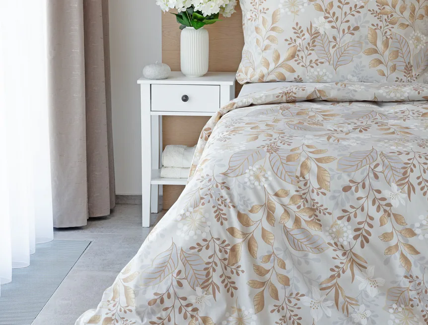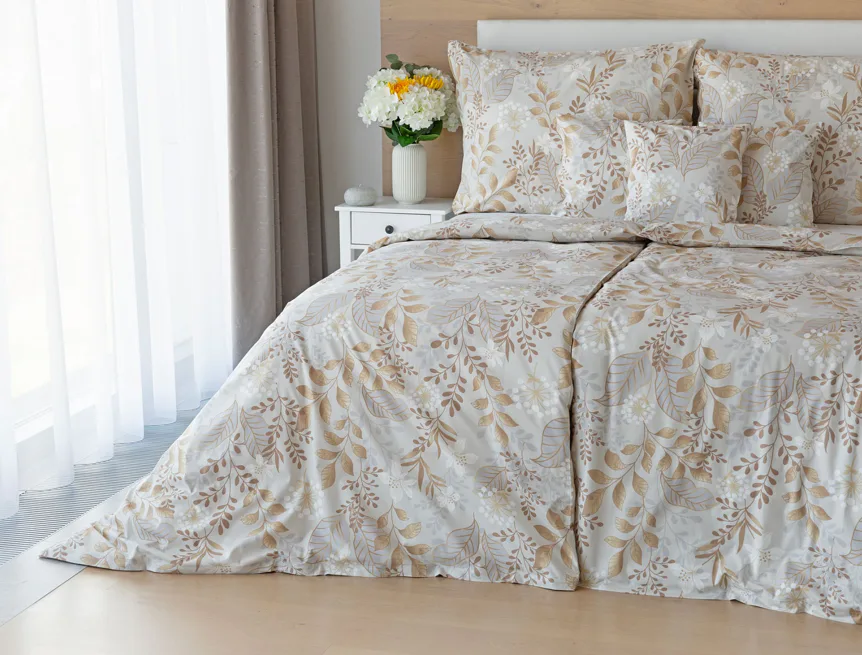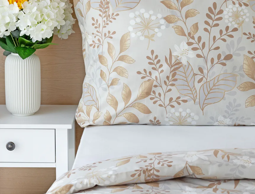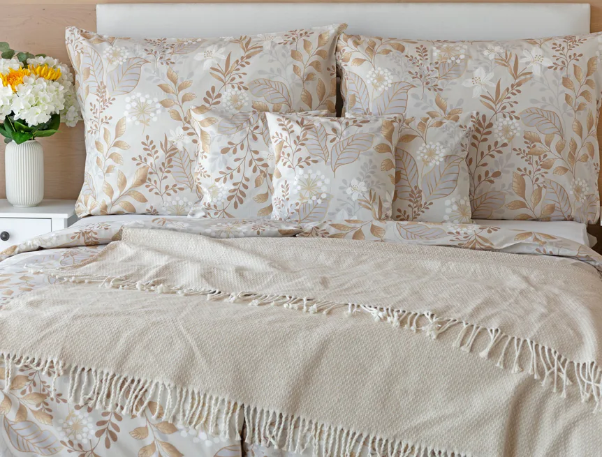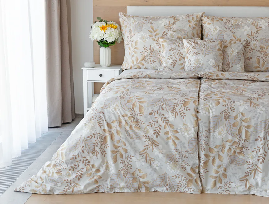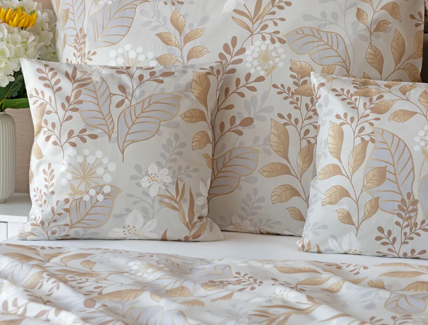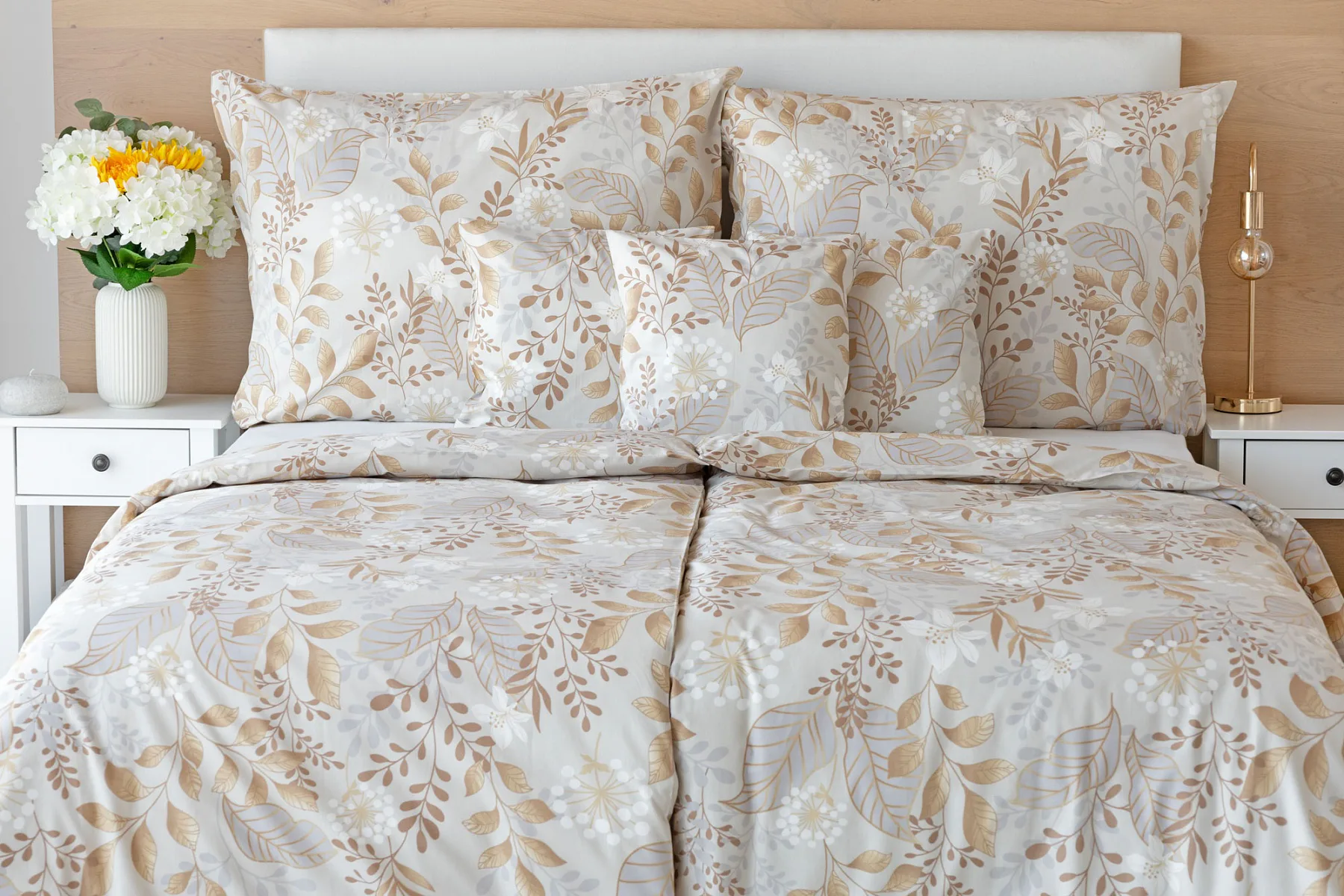 S okouzlujícím ložním povlečením Libertine bude vaše ložnice vždy působivě elegantní. Jemný florální motiv v paletě béžových, hnědých a světle šedých tónů je v dokonalé harmonii s podkladem v barvě slonové kosti.