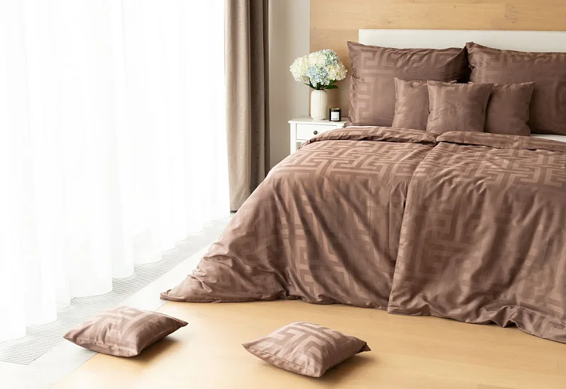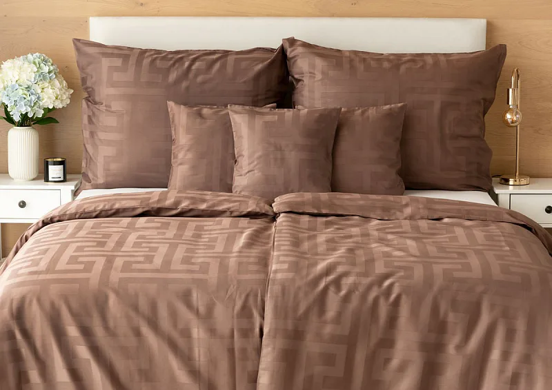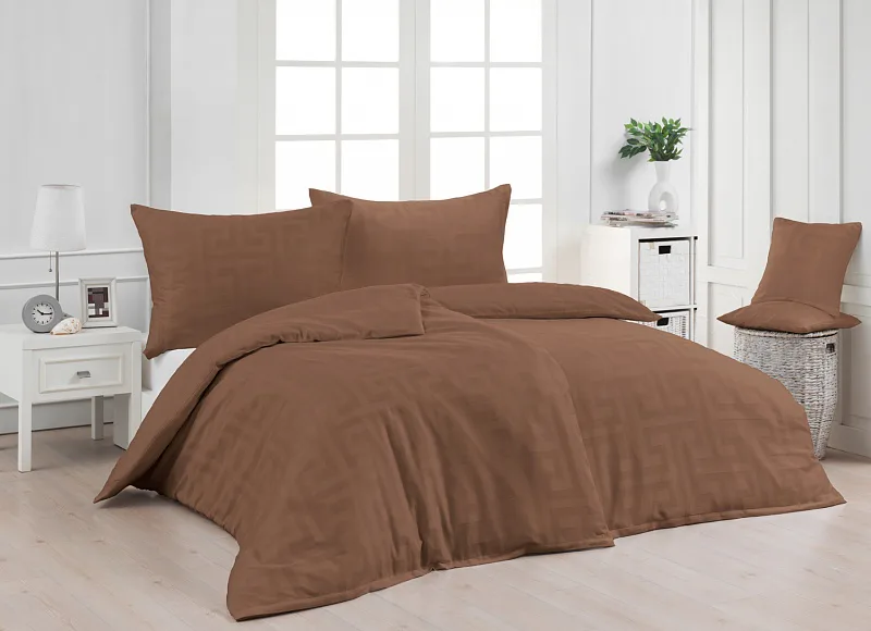 Nová kolekce damaškového povlečení Louvre vás zcela okouzlí originálním žakárovým vzorem a pečlivě vybranými přírodními barvami. Vychutnejte si královský komfort a pocit přepychu každou noc s povlečením Louvre Braun v odstínu nugátově hnědé.