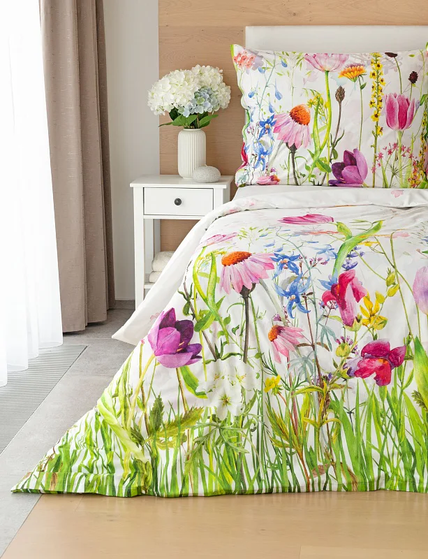 Okouzlující povlečení Luisa vnese do vaší ložnice jarní svěžest. Malba pestrobarevného lučního kvítí na krémově bílém podkladu vyzařuje pozitivní energii. Probouzejte se každý den s dobrou náladou!