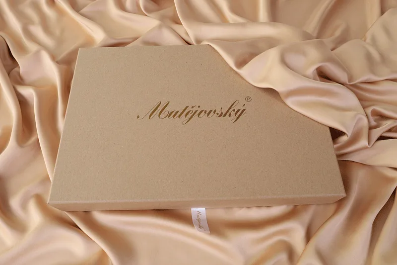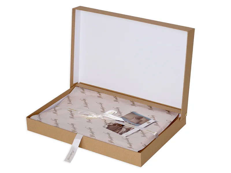 Povlečení je dodáváno v luxusní dárkové krabici (v případě dvou stejných setů baleno v jedné krabici jako sada povlečení na manželské lůžko). Obal z přírodních surovin podtrhuje jedinečnost tohoto 100% přírodního produktu.