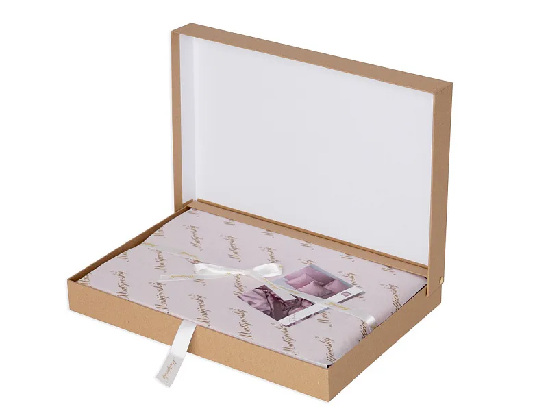Povlečení je dodáváno v luxusní dárkové krabici (v případě dvou stejných setů baleno v jedné krabici jako sada povlečení na manželské lůžko). Obal z přírodních surovin podtrhuje jedinečnost tohoto 100% přírodního produktu.