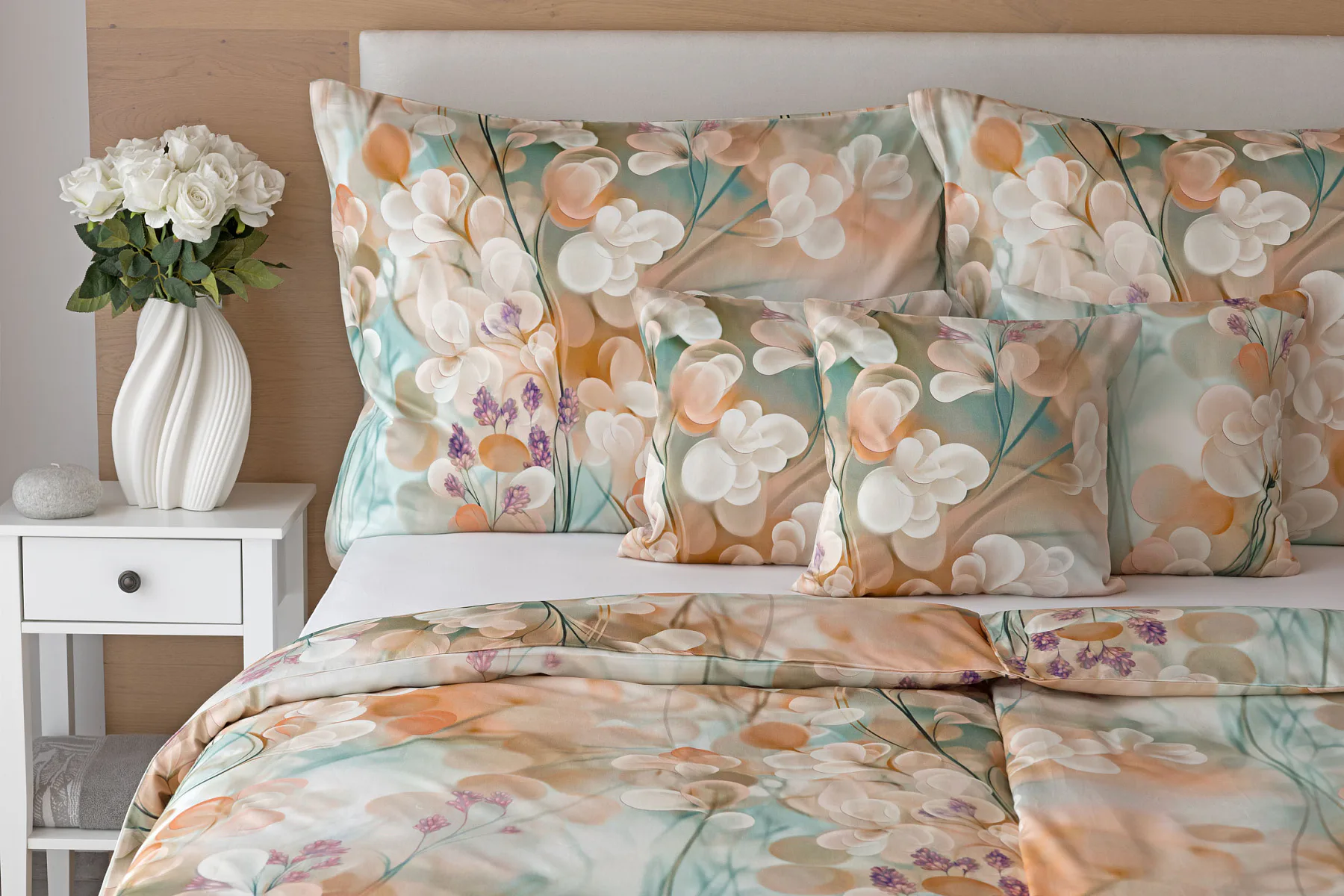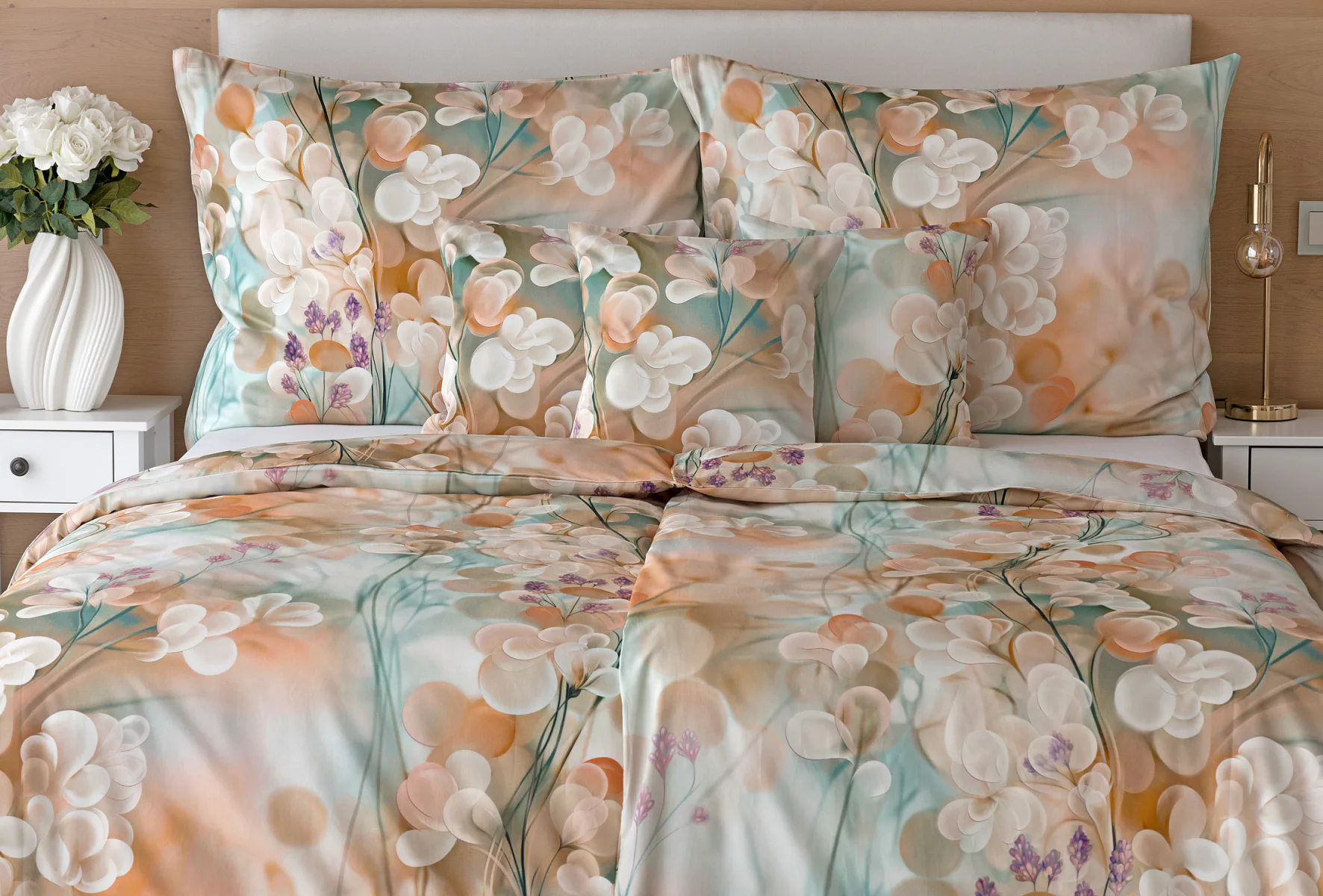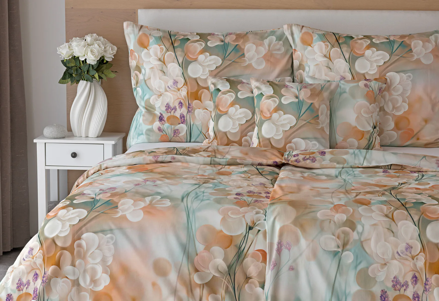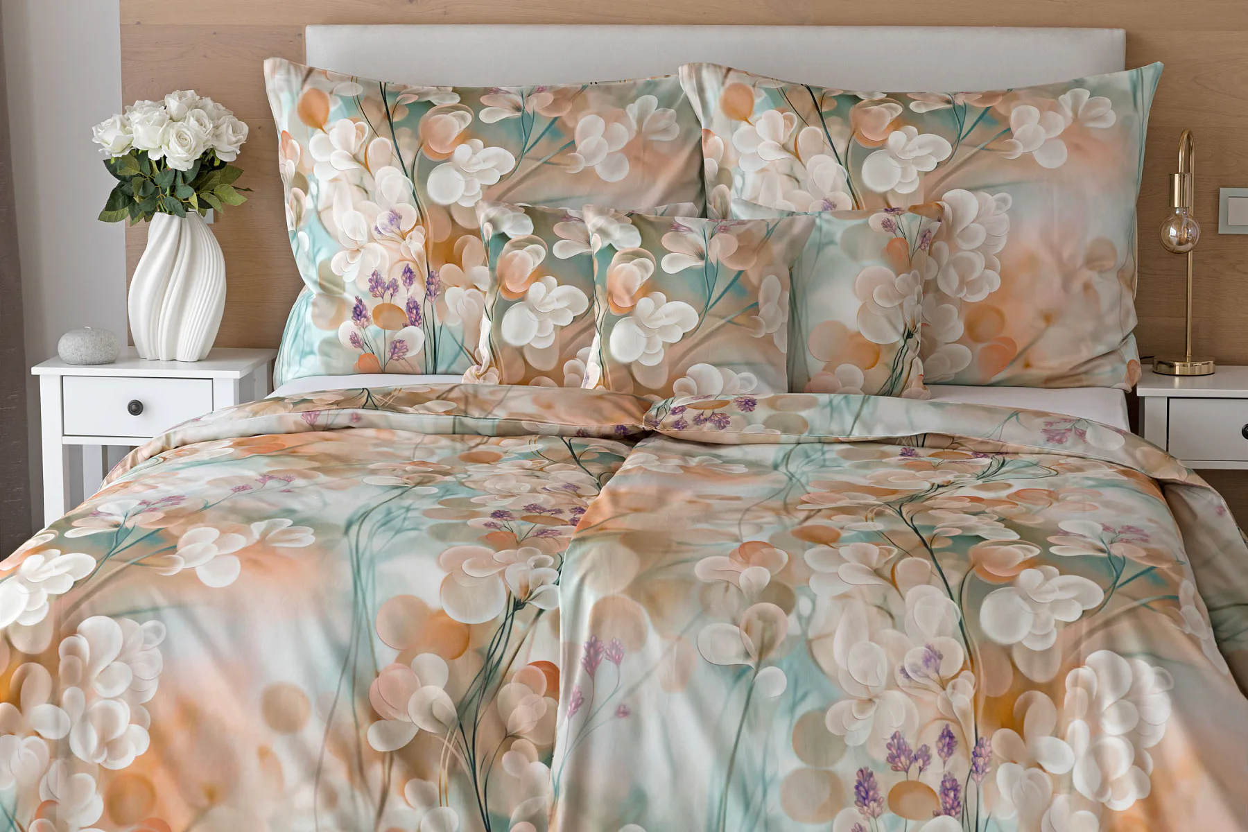 Vdechněte své ložnici svěžest a nadčasový vzhled s ložním povlečením Lunaris. Jemný florální motiv v harmonickém spojení krémových, oranžových a světle tyrkysových tónů působí vzdušně a stylově. Díky nejmodernějšímu digitálnímu tisku vyniká vzor v čistých liniích i jemných detailech. Hebký bavlněný satén dodává povlečení decentní lesk, který tomuto designu velmi sluší.