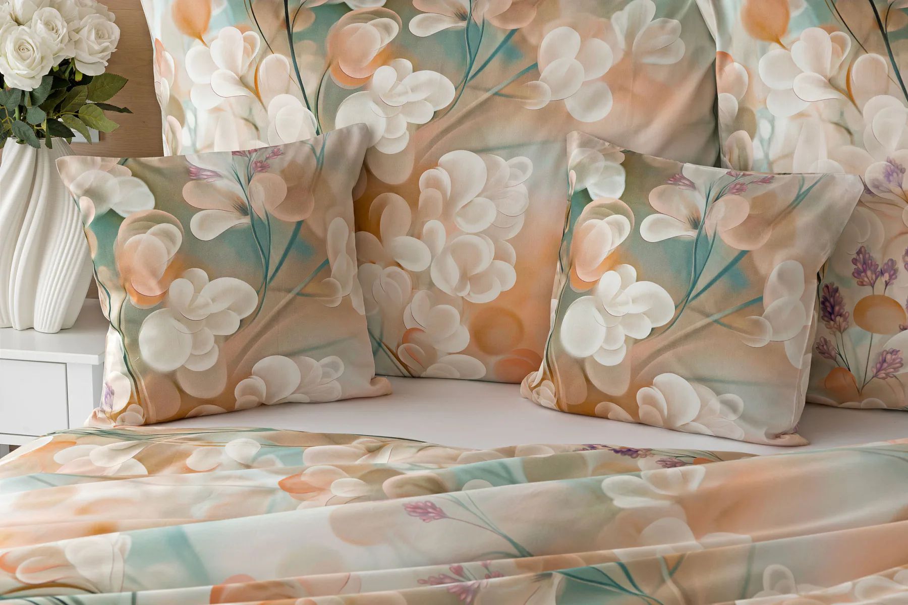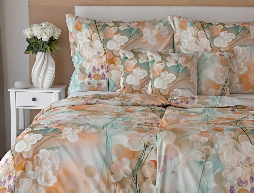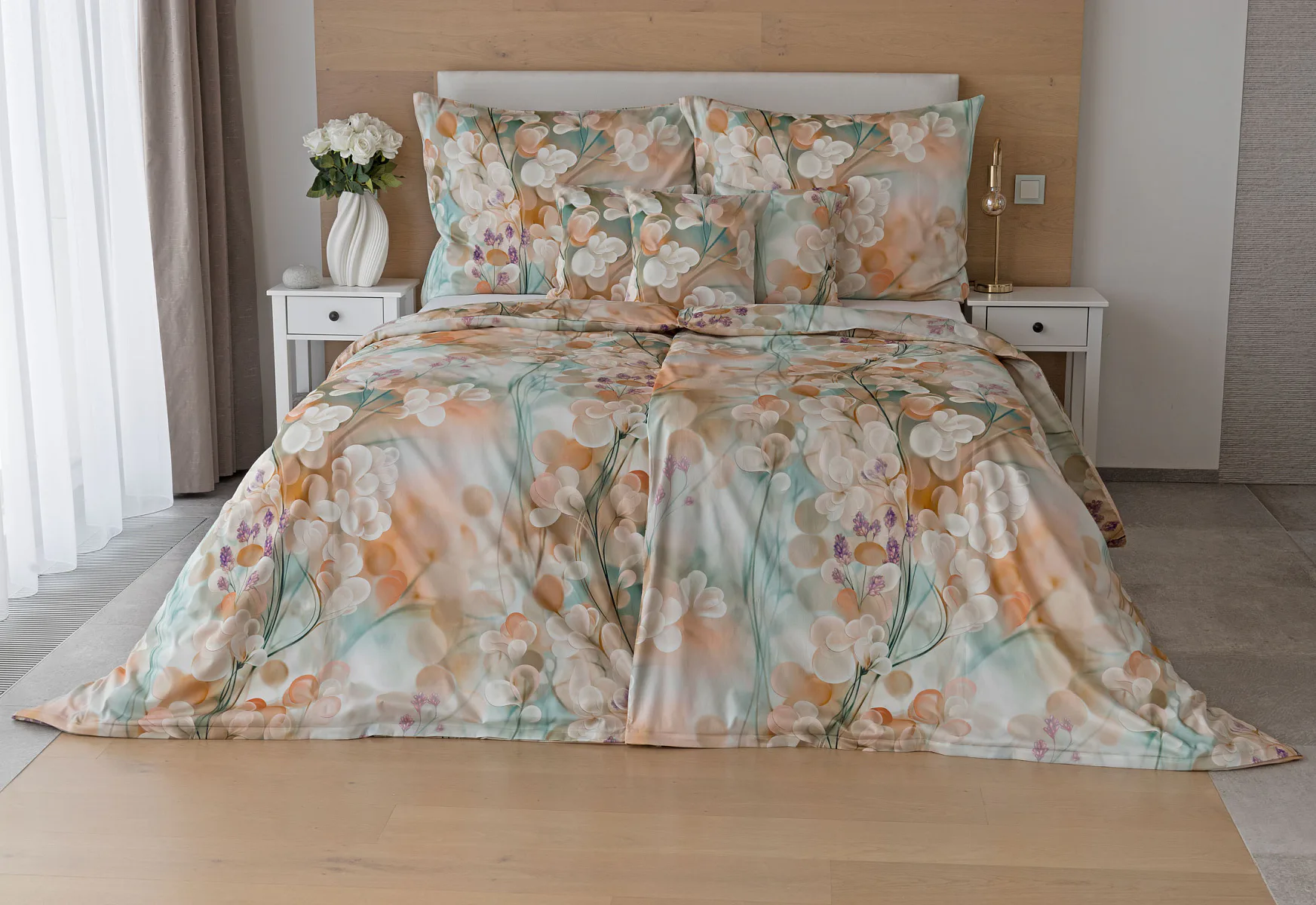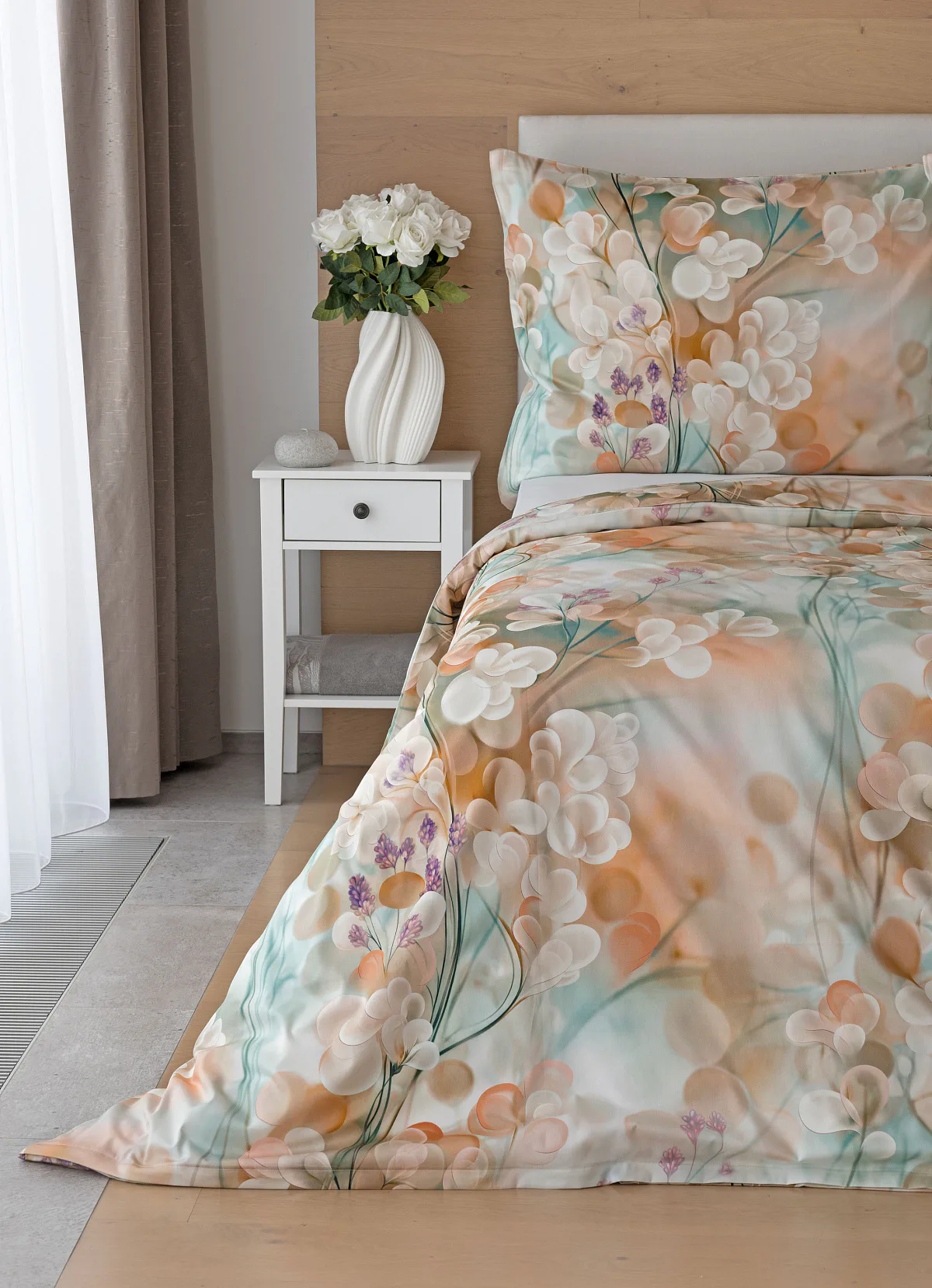 Vdechněte své ložnici svěžest a nadčasový vzhled s ložním povlečením Lunaris. Jemný florální motiv v harmonickém spojení krémových, oranžových a světle tyrkysových tónů působí vzdušně a stylově. Díky nejmodernějšímu digitálnímu tisku vyniká vzor v čistých liniích i jemných detailech. Hebký bavlněný satén dodává povlečení decentní lesk, který tomuto designu velmi sluší.