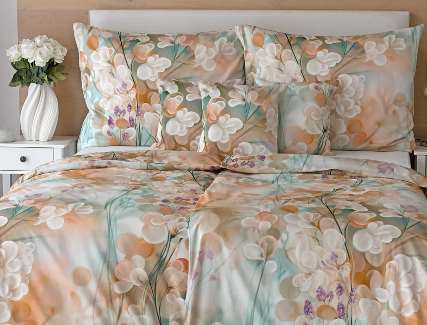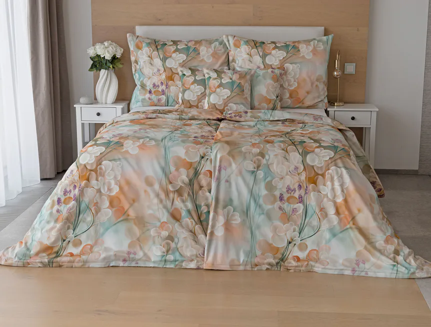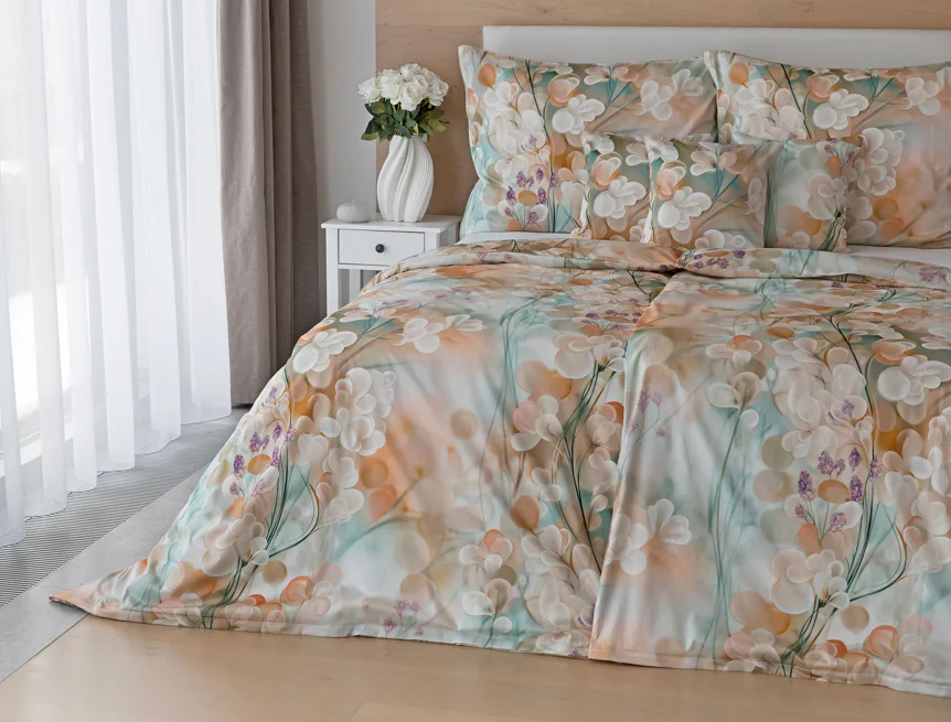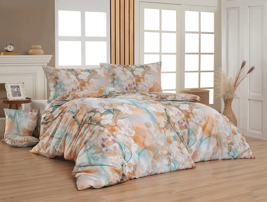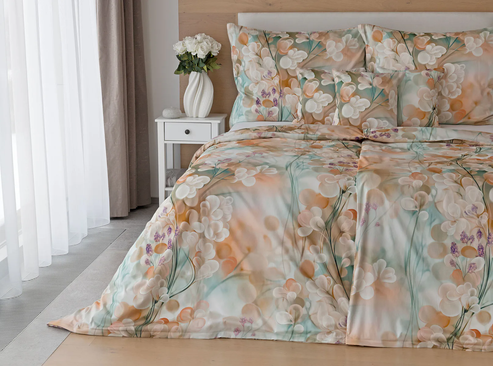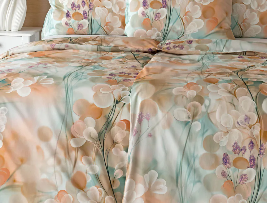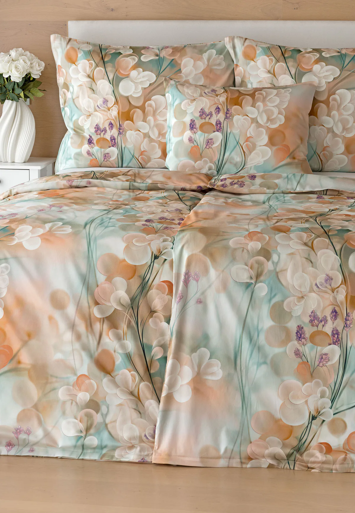Vdechněte své ložnici svěžest a nadčasový vzhled s ložním povlečením Lunaris. Jemný florální motiv v harmonickém spojení krémových, oranžových a světle tyrkysových tónů působí vzdušně a stylově. Díky nejmodernějšímu digitálnímu tisku vyniká vzor v čistých liniích i jemných detailech. Hebký bavlněný satén dodává povlečení decentní lesk, který tomuto designu velmi sluší.