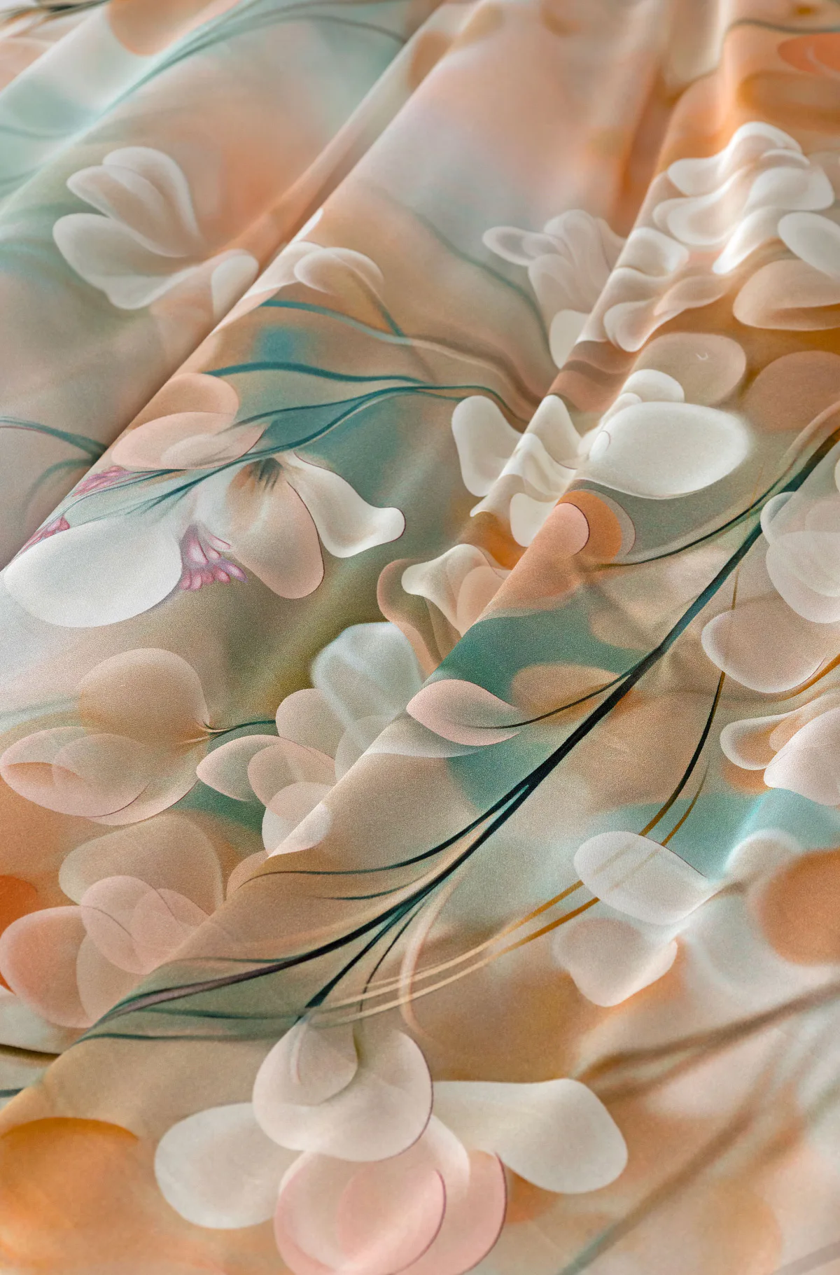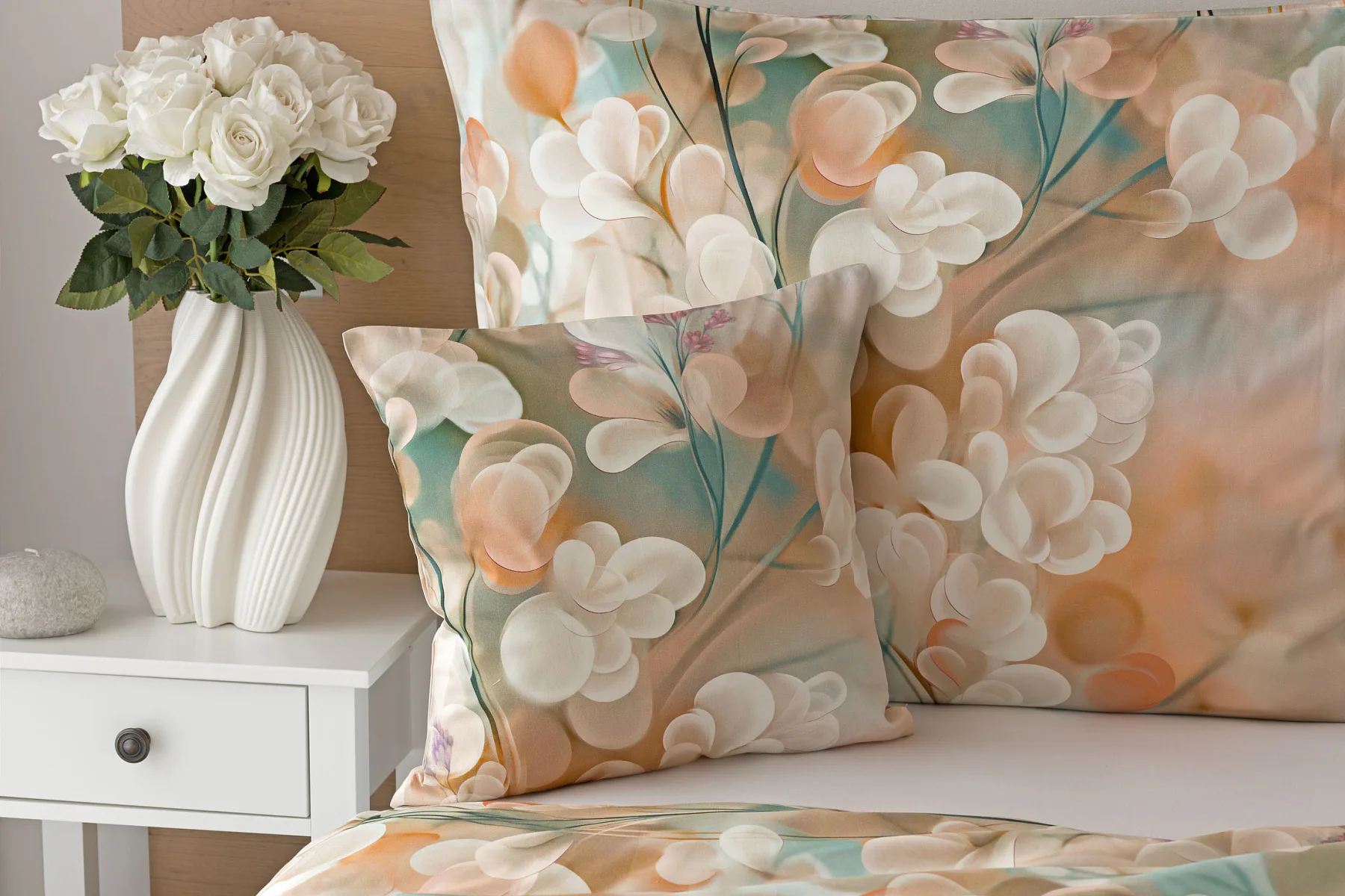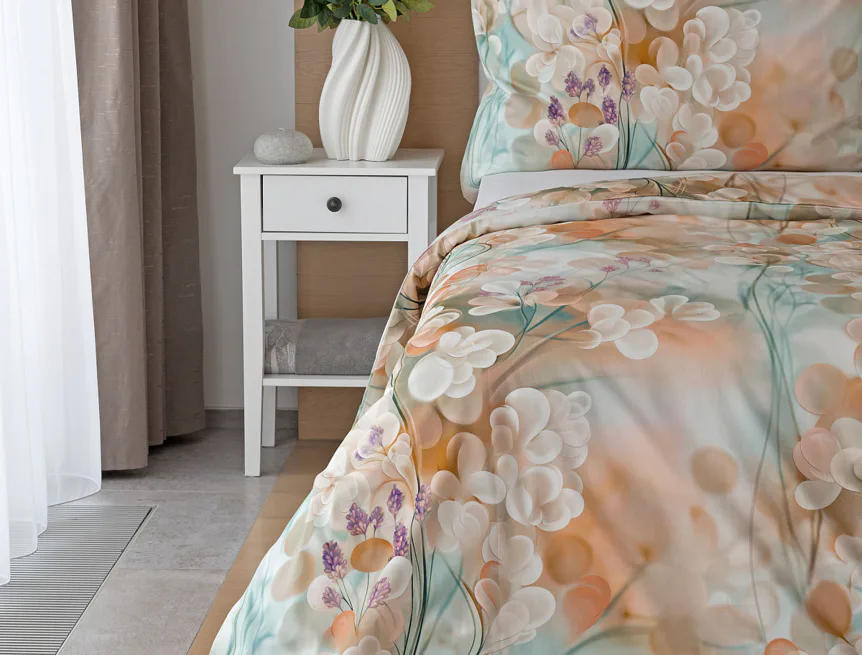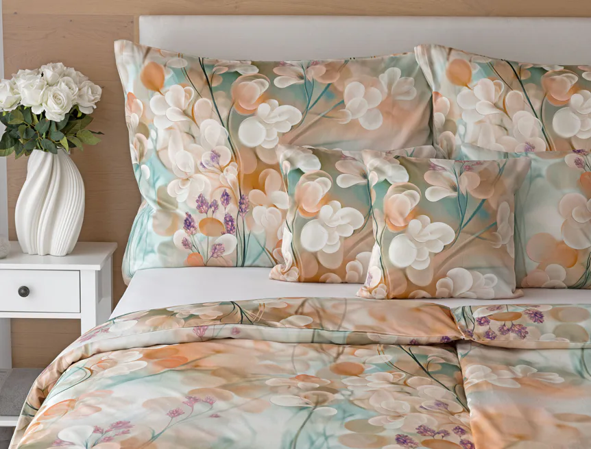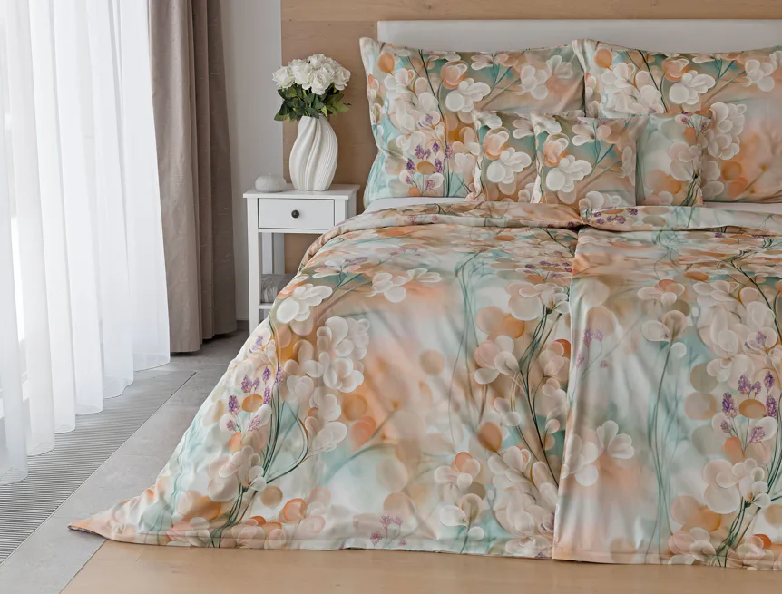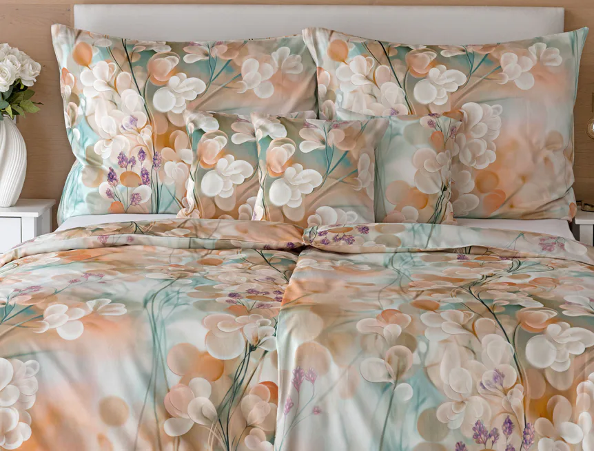 Vdechněte své ložnici svěžest a nadčasový vzhled s ložním povlečením Lunaris. Jemný florální motiv v harmonickém spojení krémových, oranžových a světle tyrkysových tónů působí vzdušně a stylově. Díky nejmodernějšímu digitálnímu tisku vyniká vzor v čistých liniích i jemných detailech. Hebký bavlněný satén dodává povlečení decentní lesk, který tomuto designu velmi sluší.