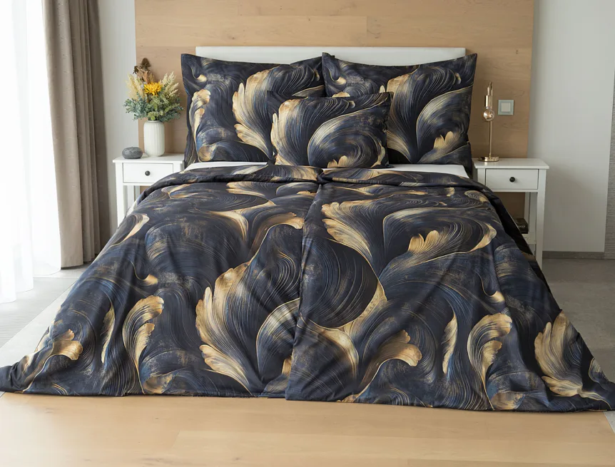 Elegantní bavlněné povlečení Lyra povznese každodenní stlaní na radost a potěšení z krásného bydlení. Abstraktní vzor vyniká v jedinečném spojení temně modrých tónů s pískově zlatými konturami, které...