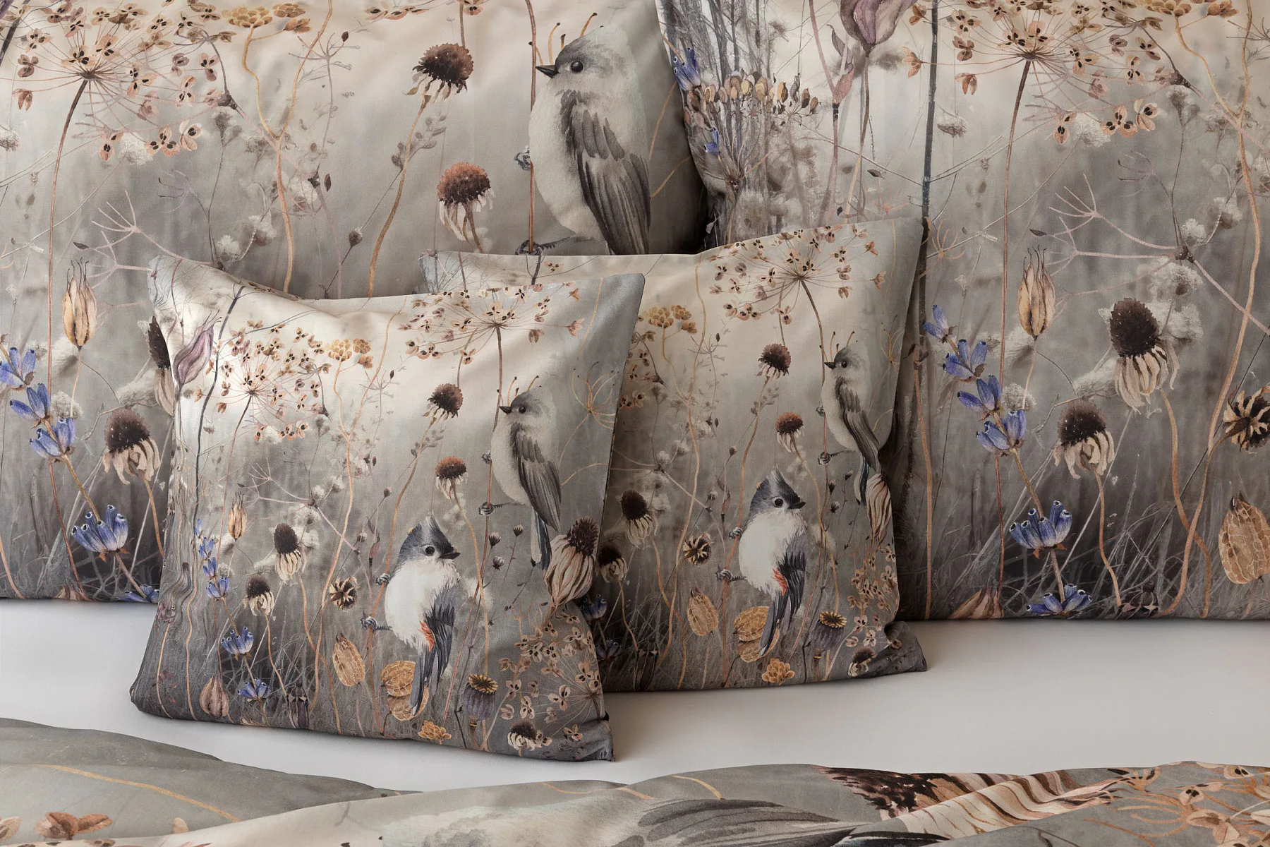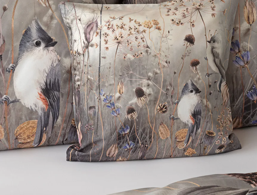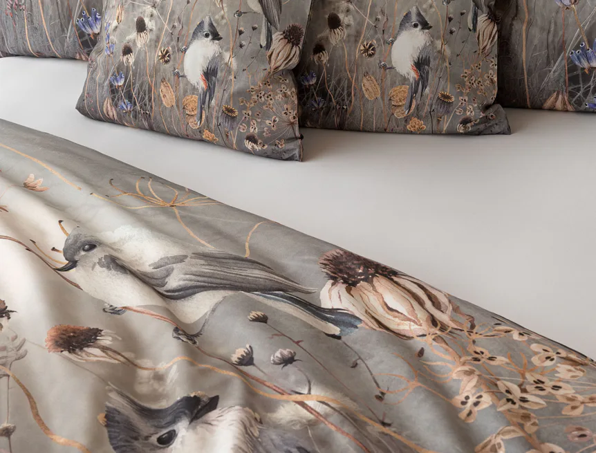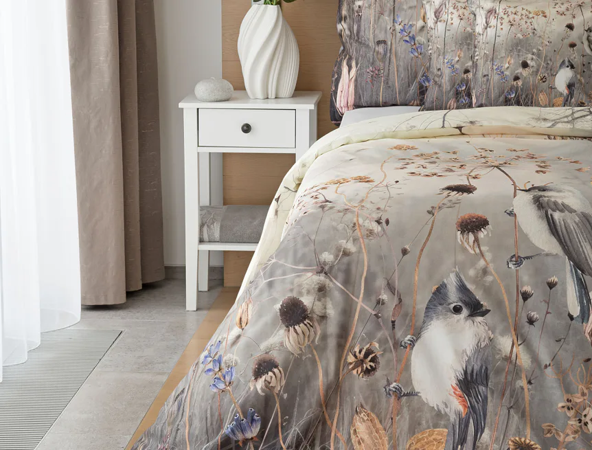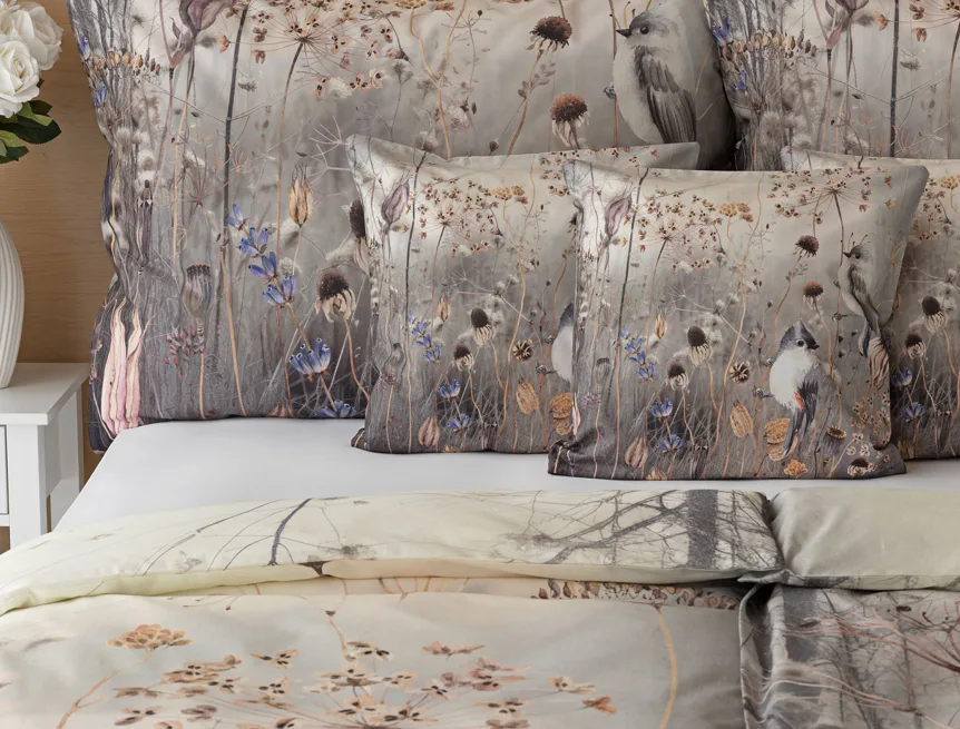 Vneste do své ložnice klid a harmonii s bavlněným povlečením Marcia. Podzimní krajina v tlumených tónech, jemný pohyb trav a tichá přítomnost ptáčků vytvářejí jemnou atmosféru pro odpočinek. Motiv inspirovaný přírodou je zpracován s citem pro detail i barevnou střídmost. Zemité odstíny tvoří nadčasový základ, který se stane přirozenou součástí interiéru v jakékoli roční době.