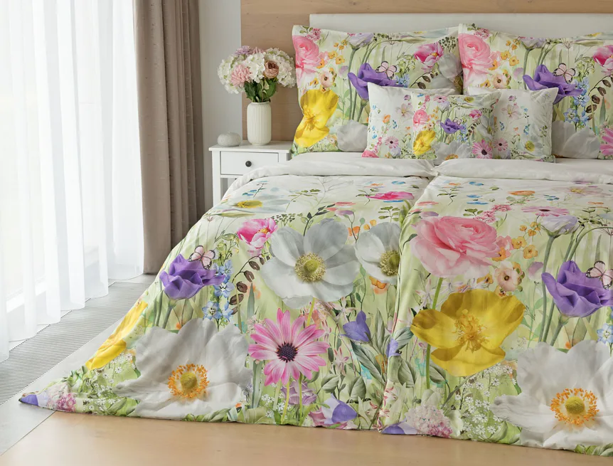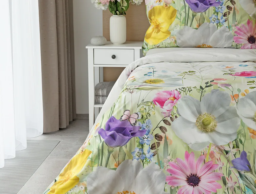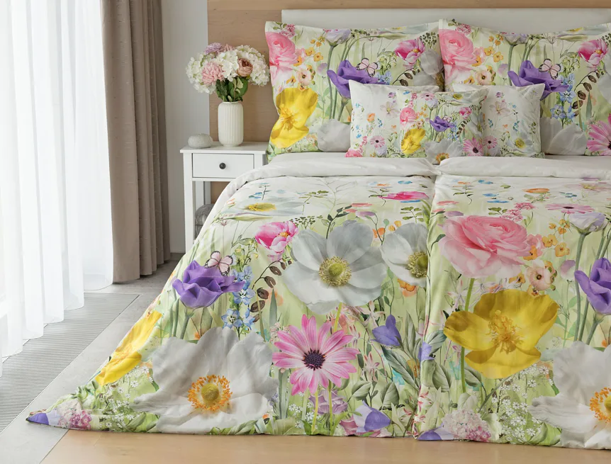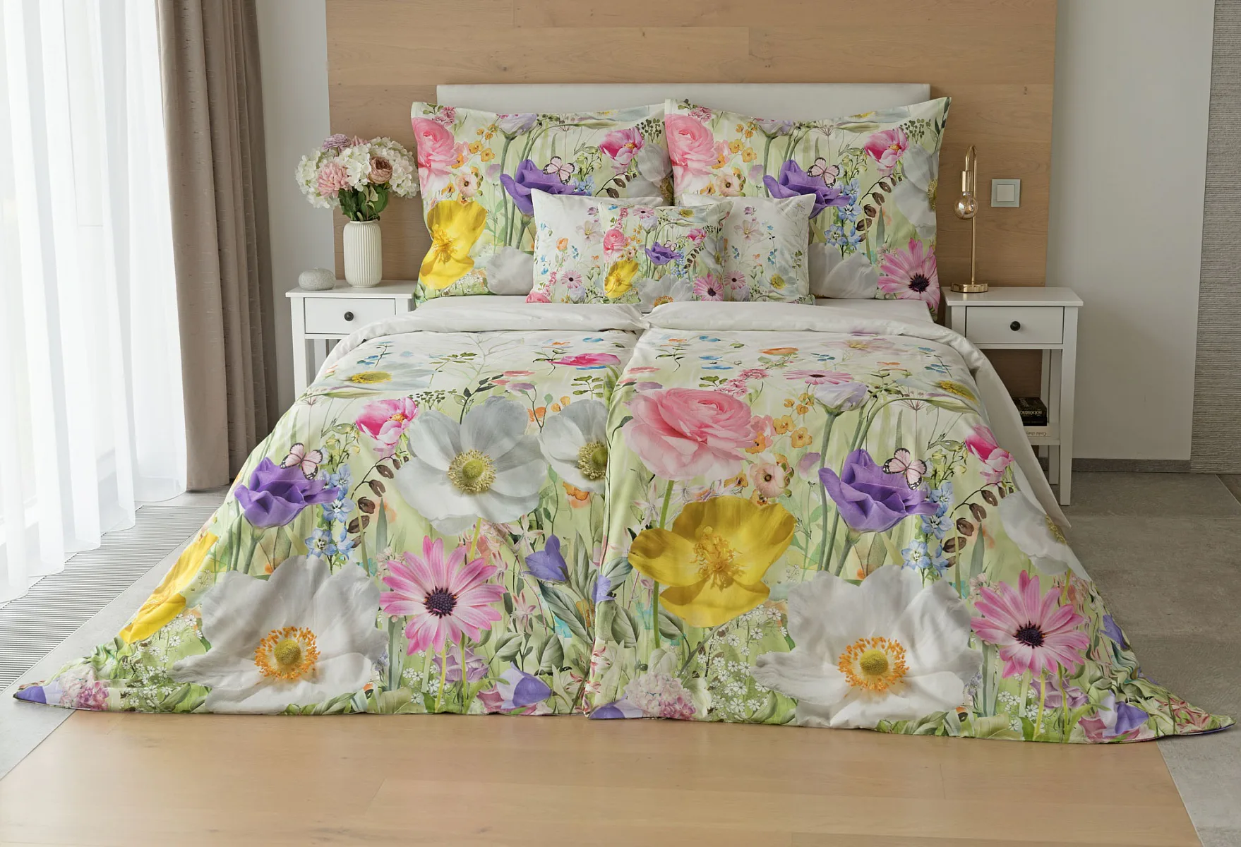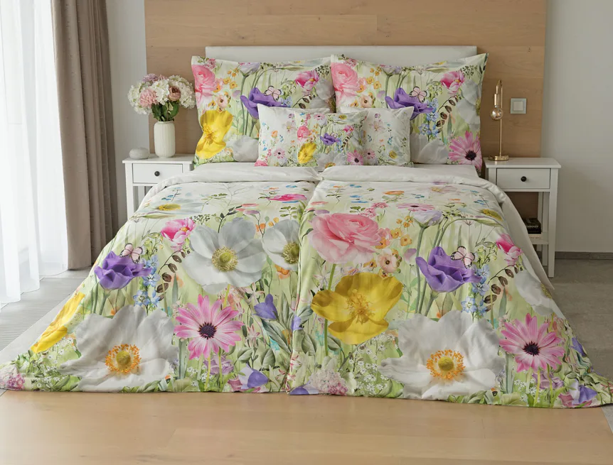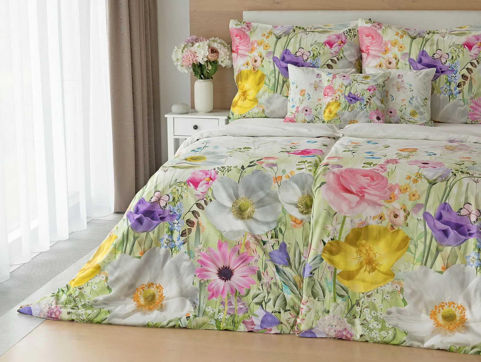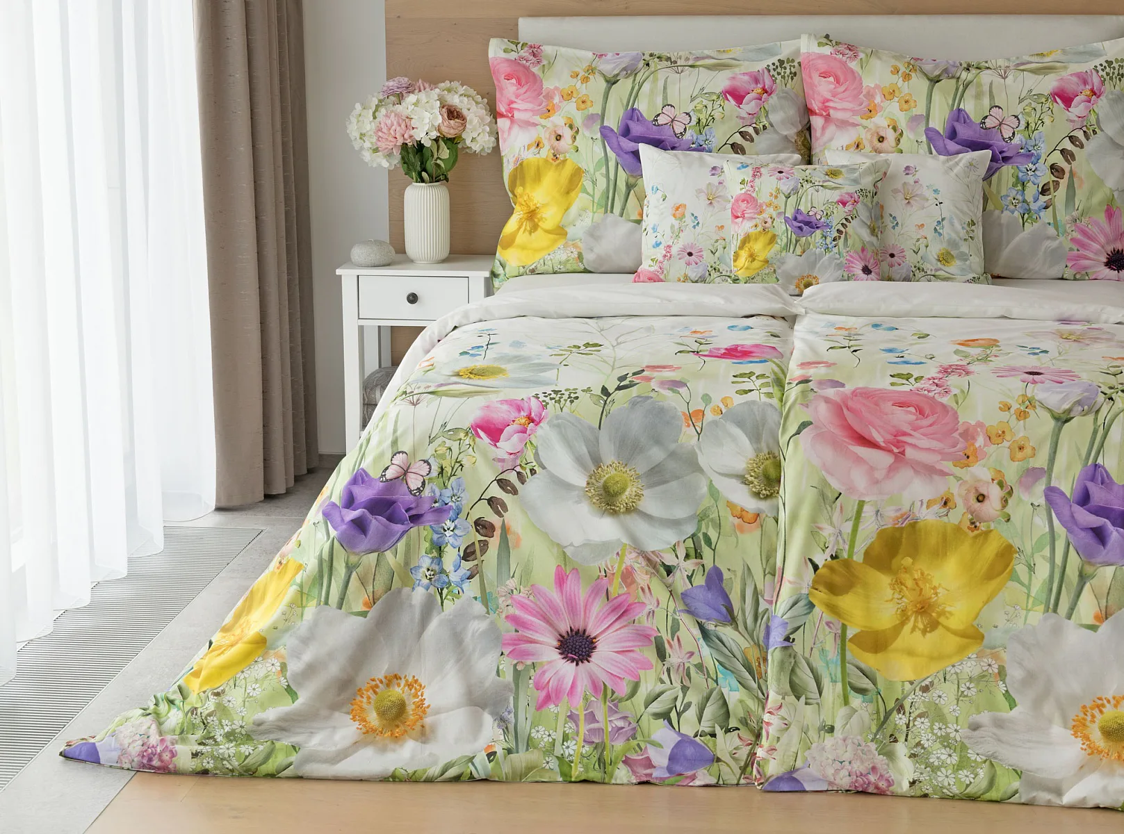 Pozvěte do své ložnice jaro s povlečením Melody. Květinové fotoprvky nápaditě zakomponované do svěží luční koláže vytváří unikátní florální motiv, který oživí každý interiér. Díky nejmodernějšímu digitálnímu tisku vyniká květinový vzor v precizním detailu.