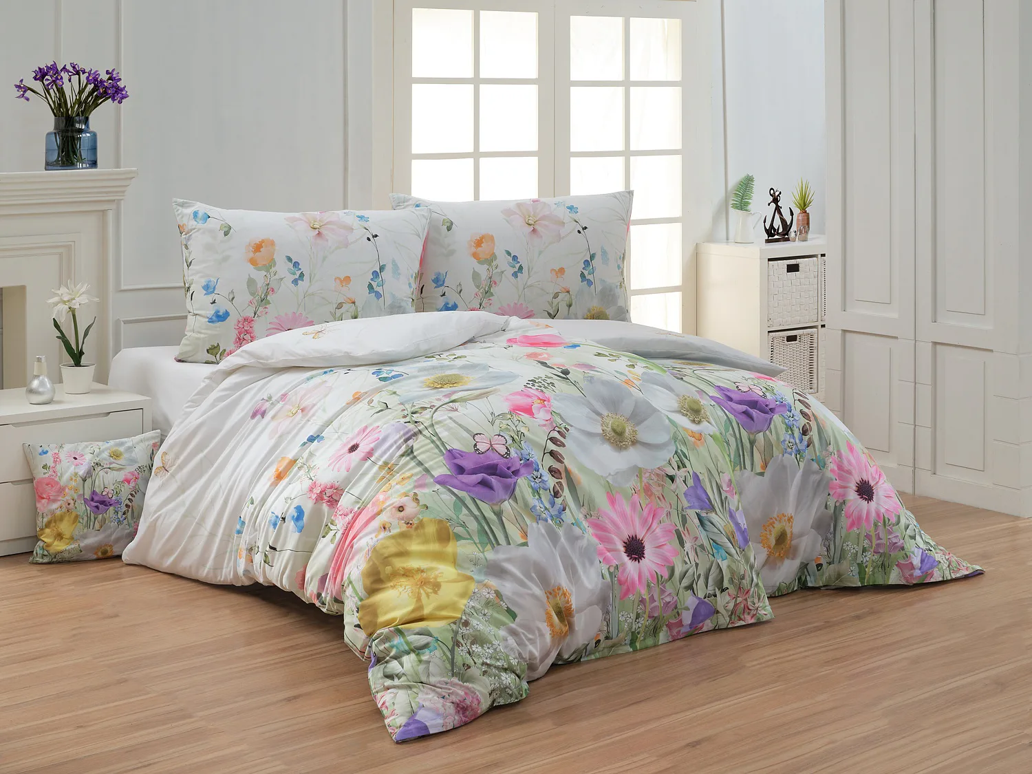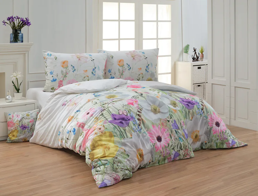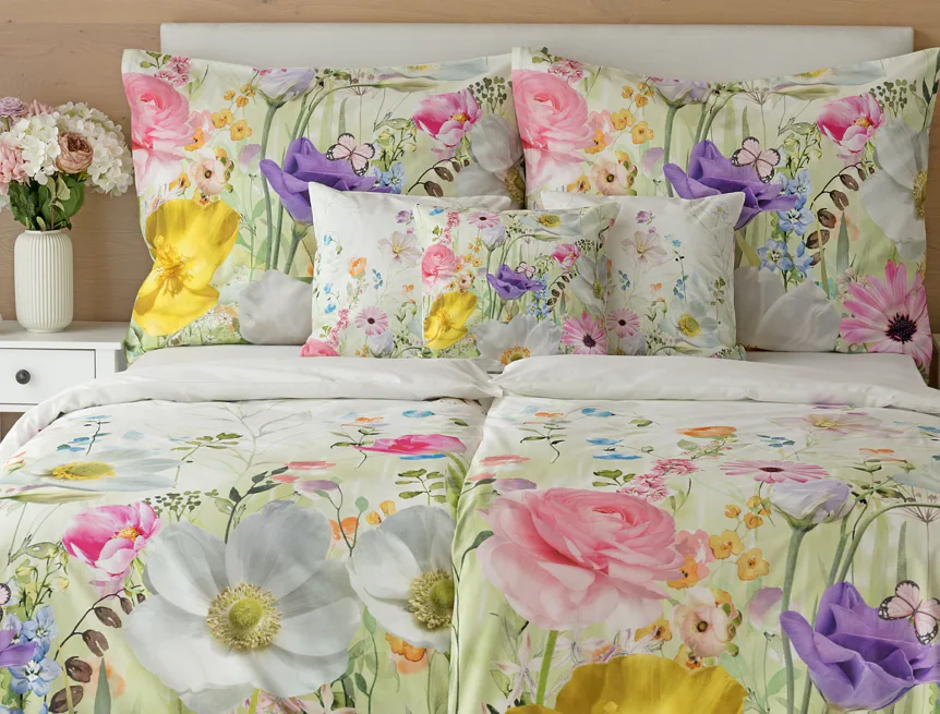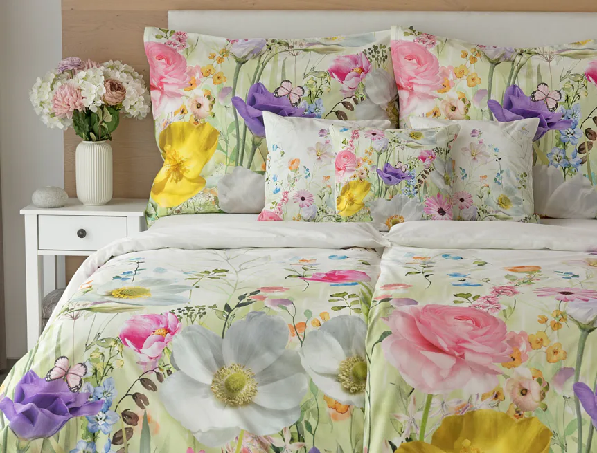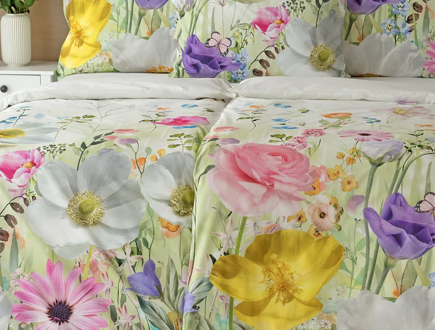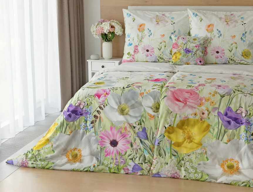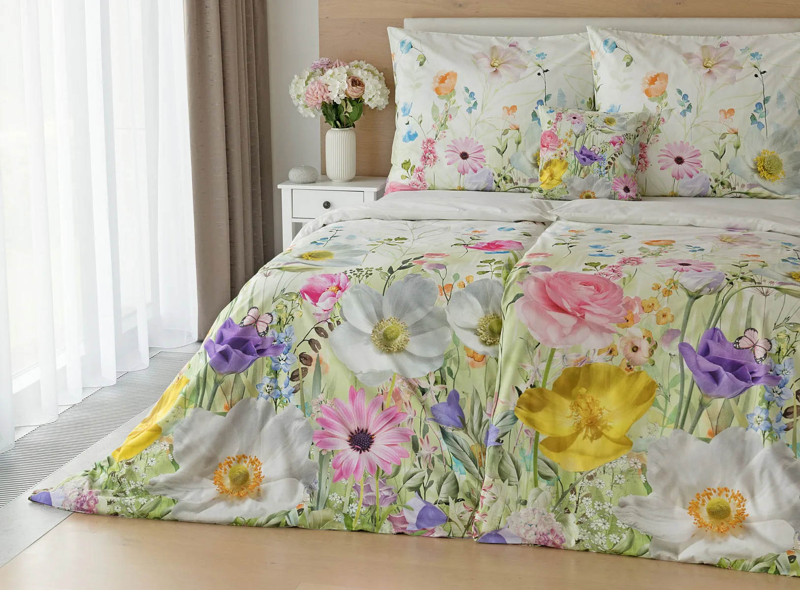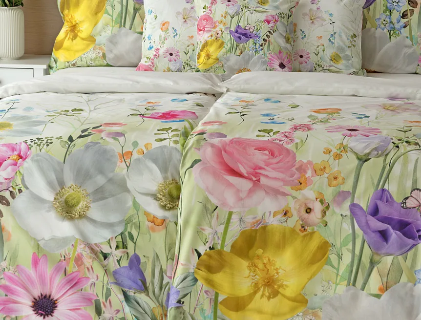 Pozvěte do své ložnice jaro s povlečením Melody. Květinové fotoprvky nápaditě zakomponované do svěží luční koláže vytváří unikátní florální motiv, který oživí každý interiér. Díky nejmodernějšímu digitálnímu tisku vyniká květinový vzor v precizním detailu.