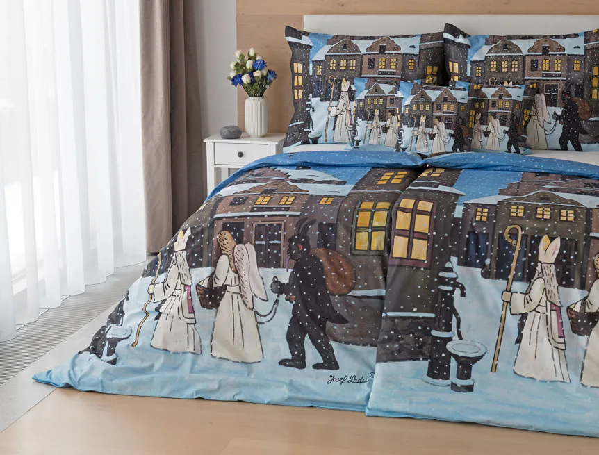 Tento motiv povlečení z kolekce Josef Lada vyrábíme s ohledem na dostupná tisková data pouze v klasickém rozměru přikrývek 140x200 cm, případně v prodloužené délce 140x220 cm.