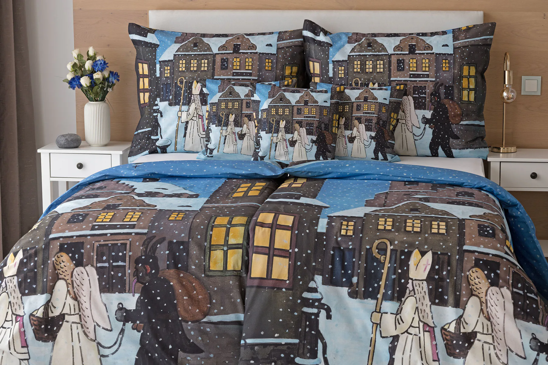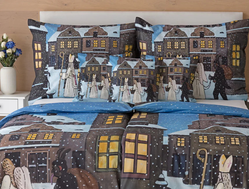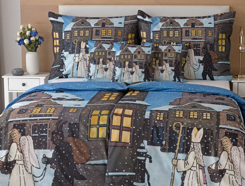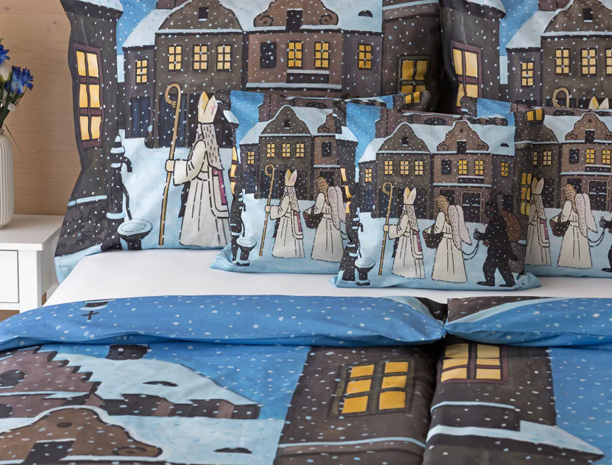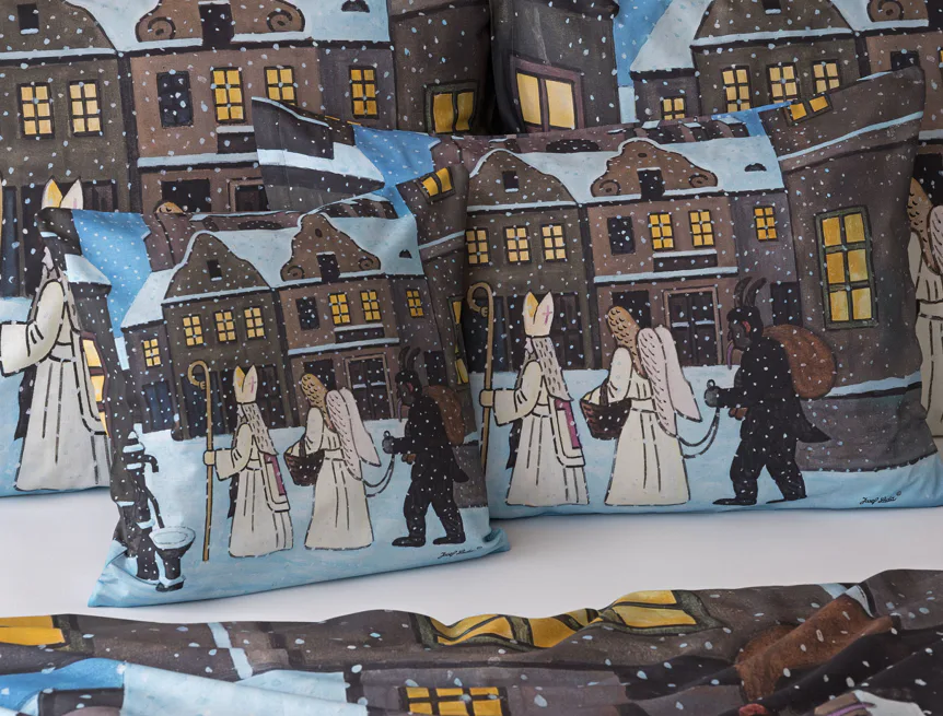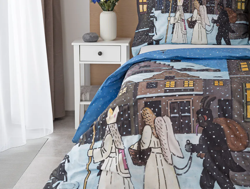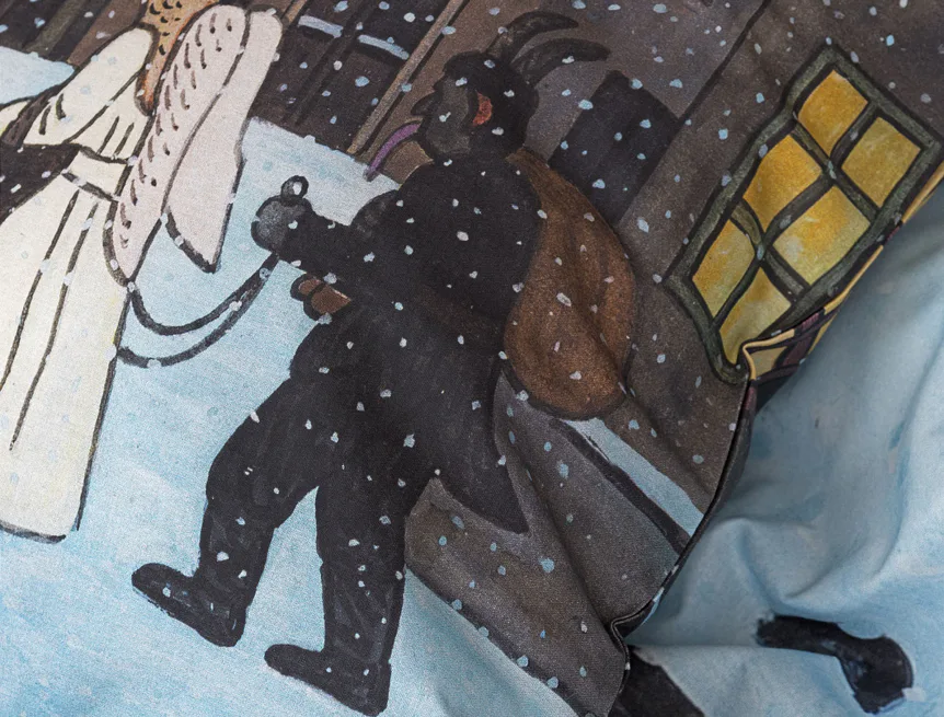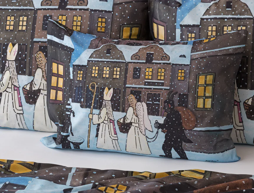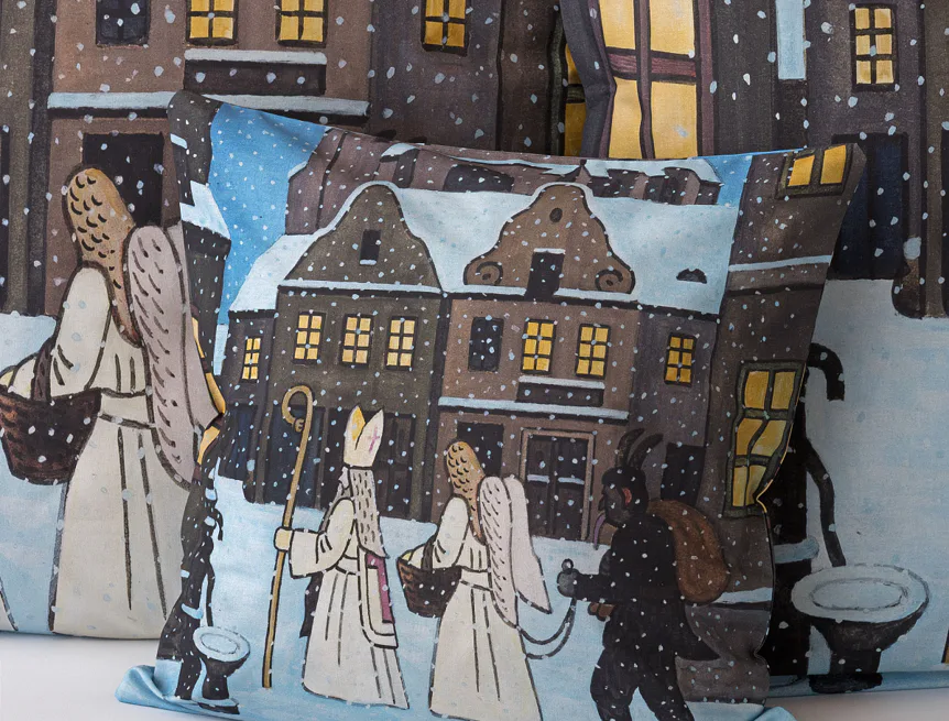 Pozvěte k sobě domů kouzlo nestárnoucích kreseb Josefa Lady, které jsou pro mnohé z nás symbolem dětství, harmonického venkova a české tradice. Motiv inspirovaný lidovou tradicí Mikuláše, anděla a čerta zachycuje kouzlo adventního období a připomíná oblíbený zvyk spojený s očekáváním Vánoc.