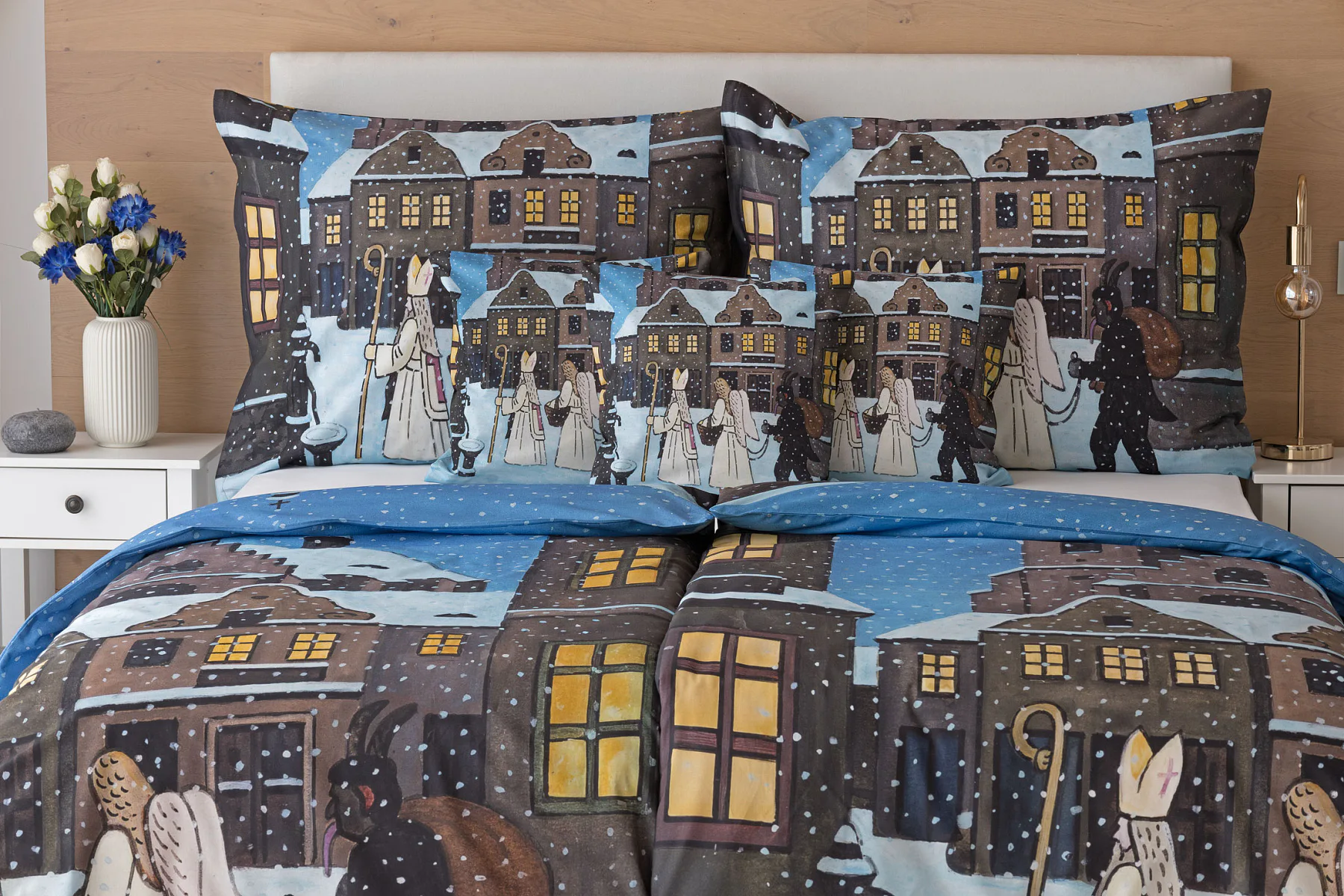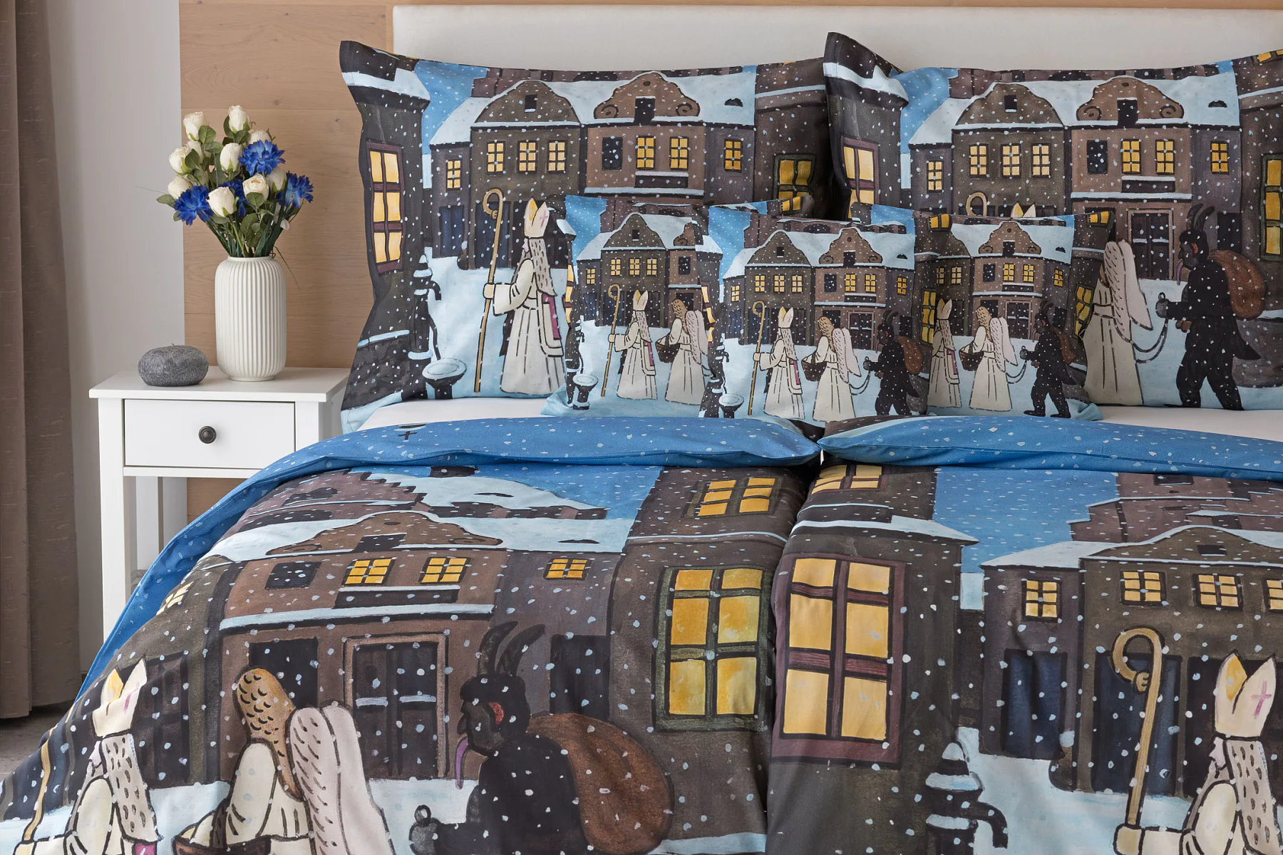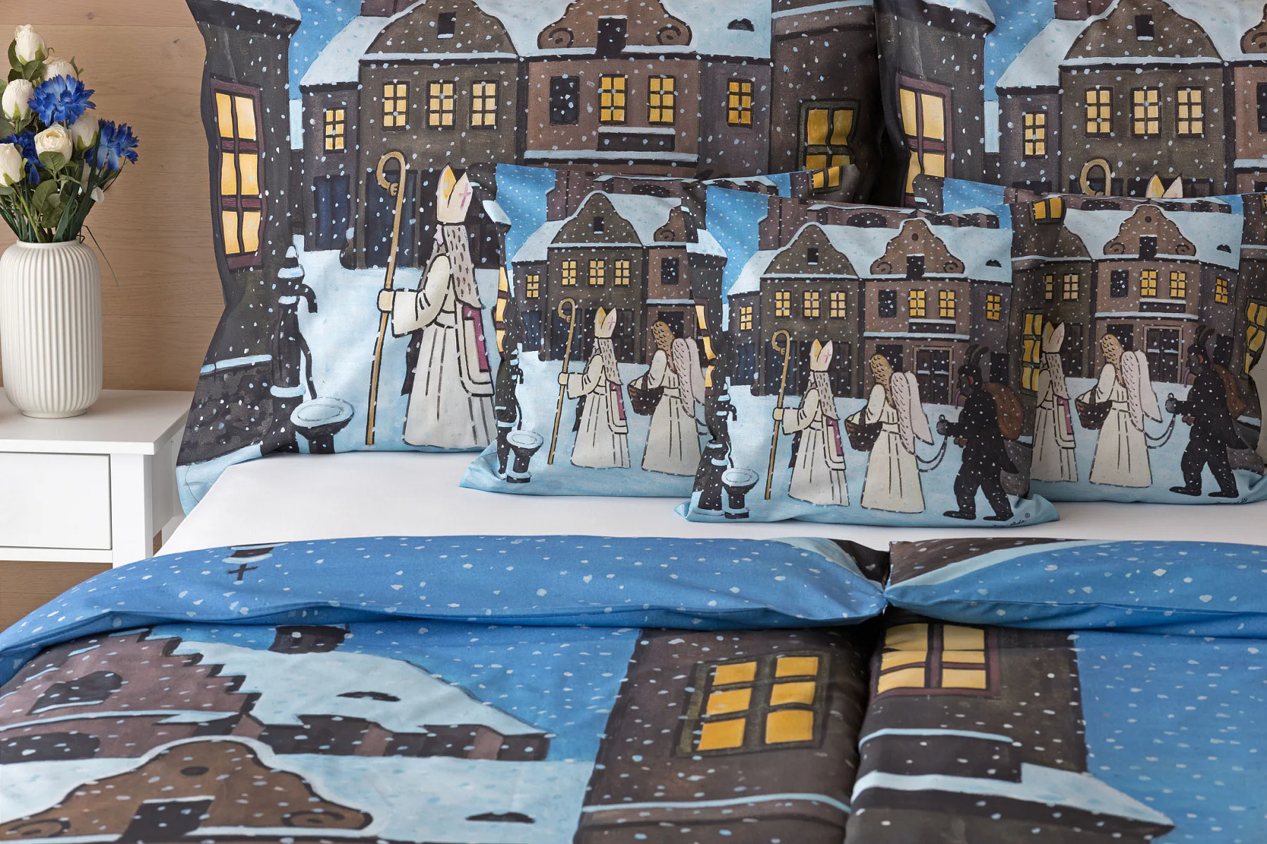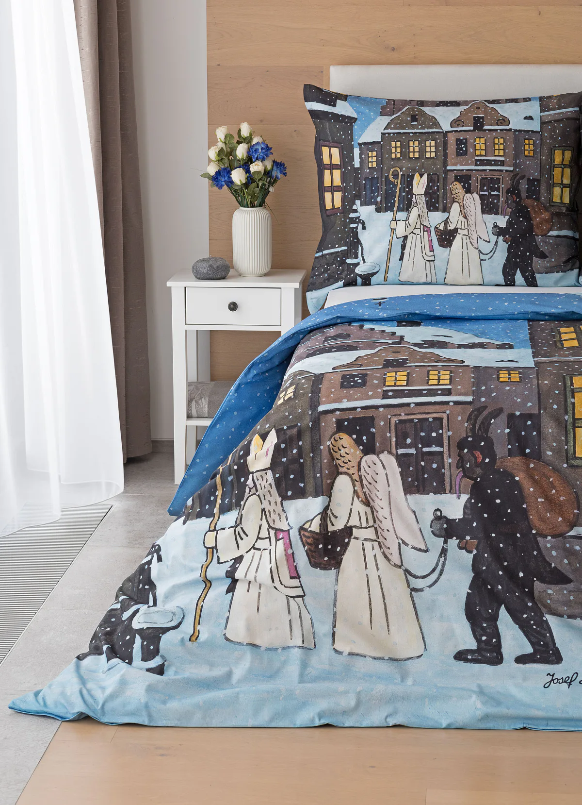 Pozvěte k sobě domů kouzlo nestárnoucích kreseb Josefa Lady, které jsou pro mnohé z nás symbolem dětství, harmonického venkova a české tradice. Motiv inspirovaný lidovou tradicí Mikuláše, anděla a čerta zachycuje kouzlo adventního období a připomíná oblíbený zvyk spojený s očekáváním Vánoc.