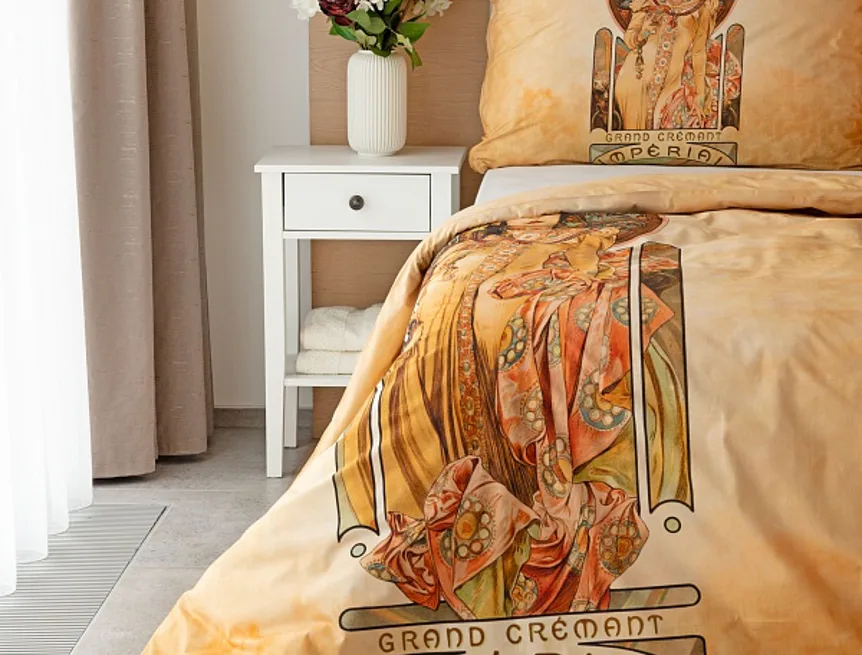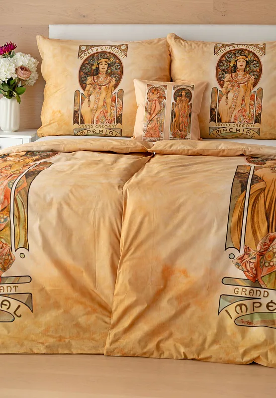 Pečlivě vybrané motivy z díla světově známého malíře Alfonse Muchy teď mohou zdobit váš interiér v podobě luxusního bavlněného povlečení. Nechte se vnést do atmosféry zdobné secese s povlečením Moet.