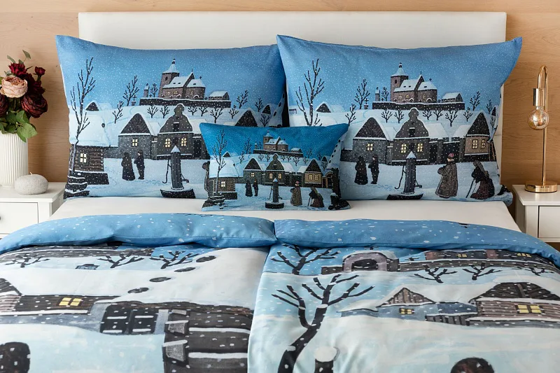 Povlečení se zimními motivy kreseb Josefa Lady, které do českých domovů přinášejí tu pravou vánoční poetiku, se stane unikátním praktickým solitérem v interiéru i originální dárkem. Vykouzlete si jedinečnou atmosféru i u sebe doma díky bavlněnému povlečení Na půlnoční.