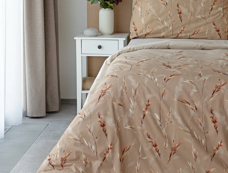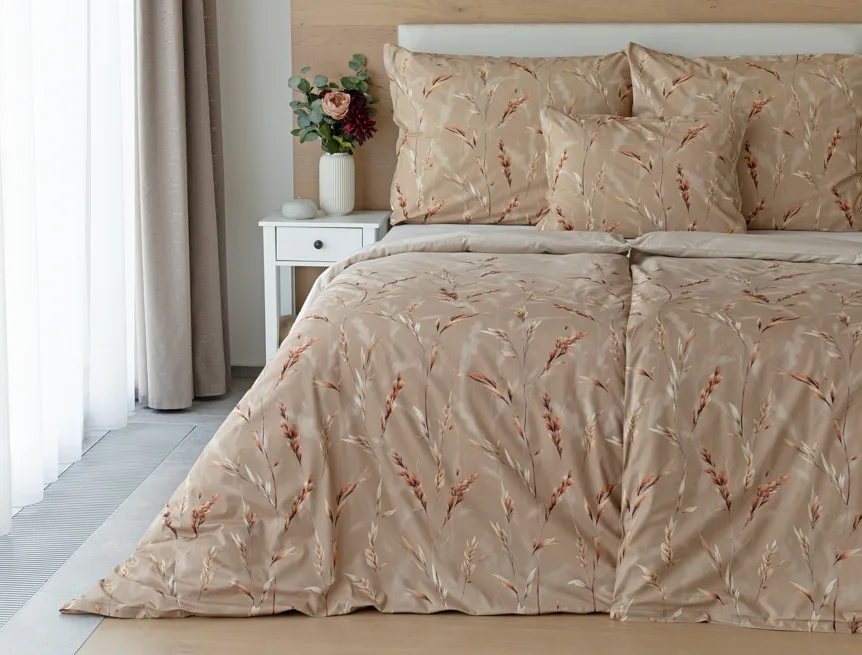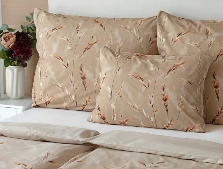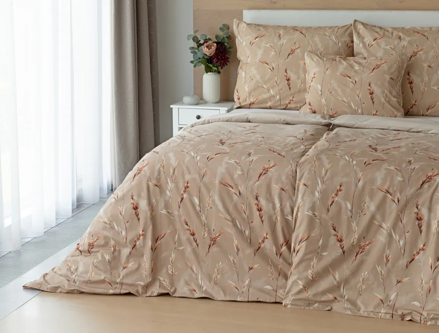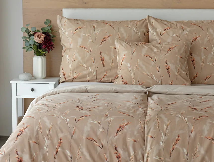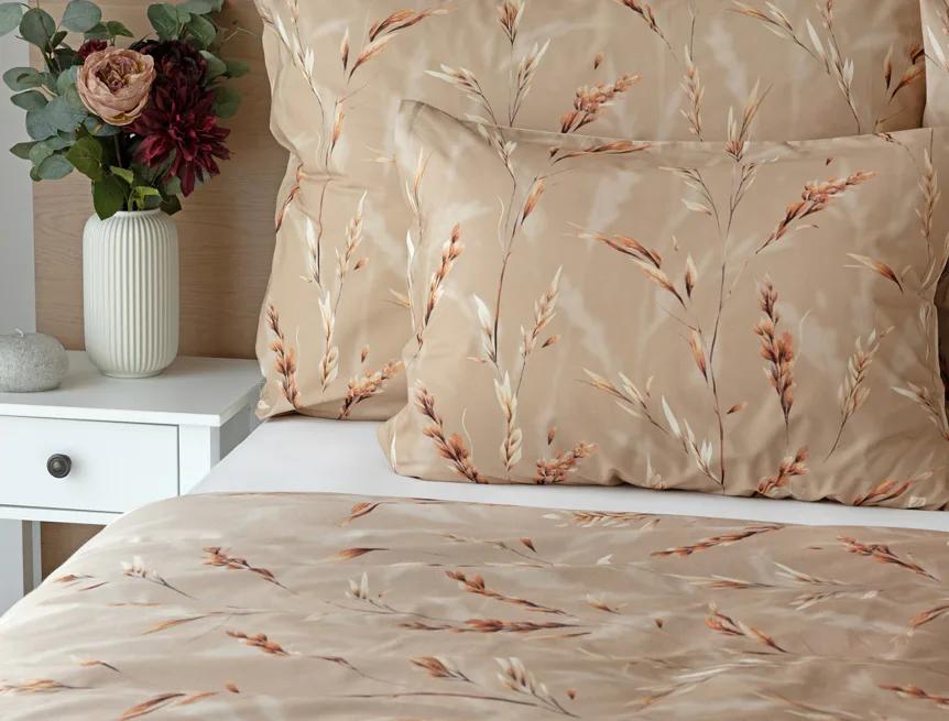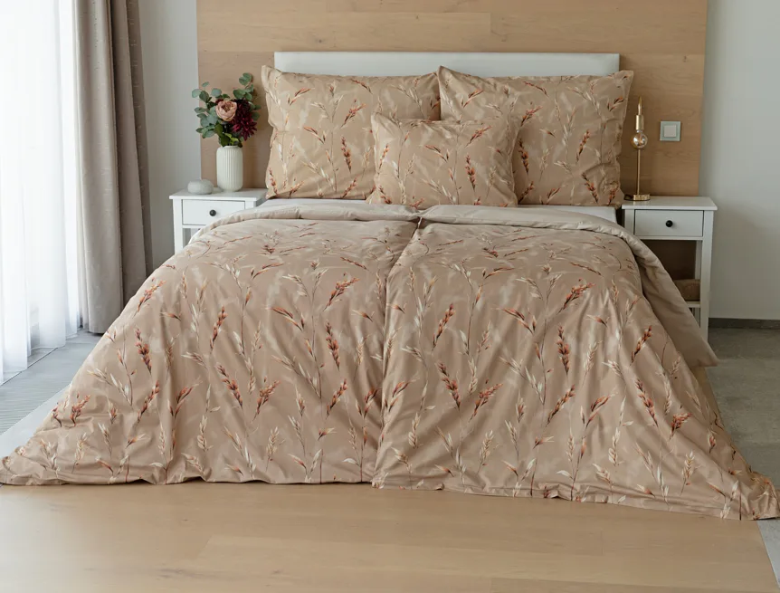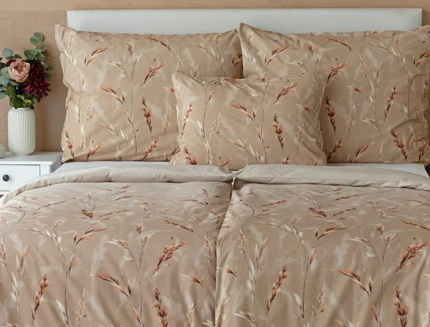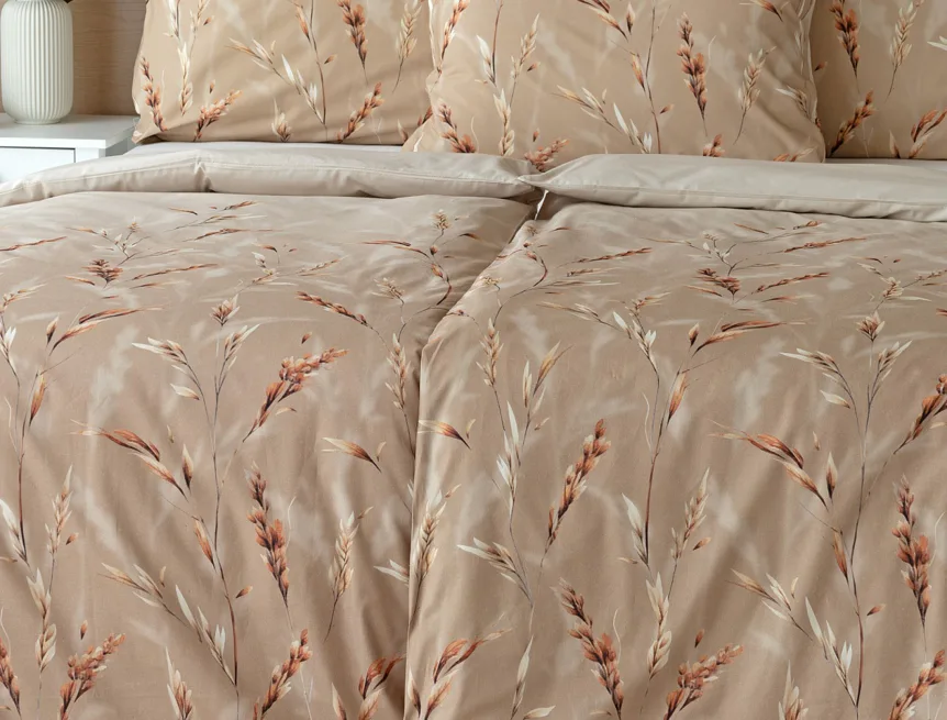 Vychutnejte si zasloužené chvíle odpočinku s bavlněným povlečením Natura. Vzory klasů v jemných béžových a hnědých tónech evokují přírodní krásu a teplo venkova. Povlečení je vyrobeno ze 100% prvotřídní bavlny, která zajišťuje maximální komfort a zaručí váš zdravý spánek.