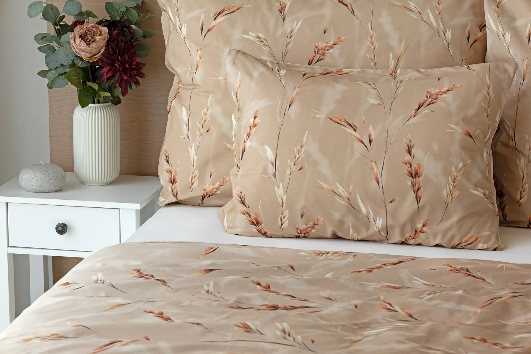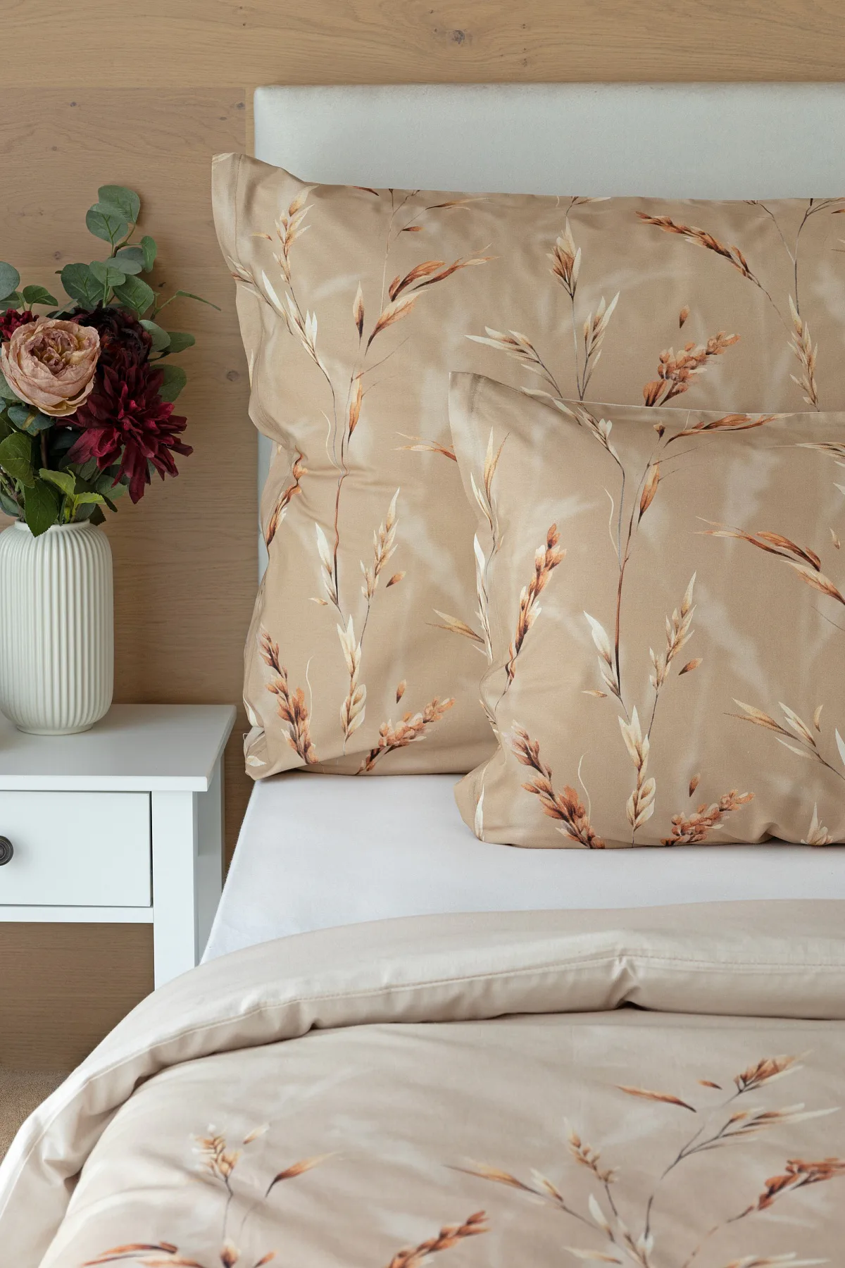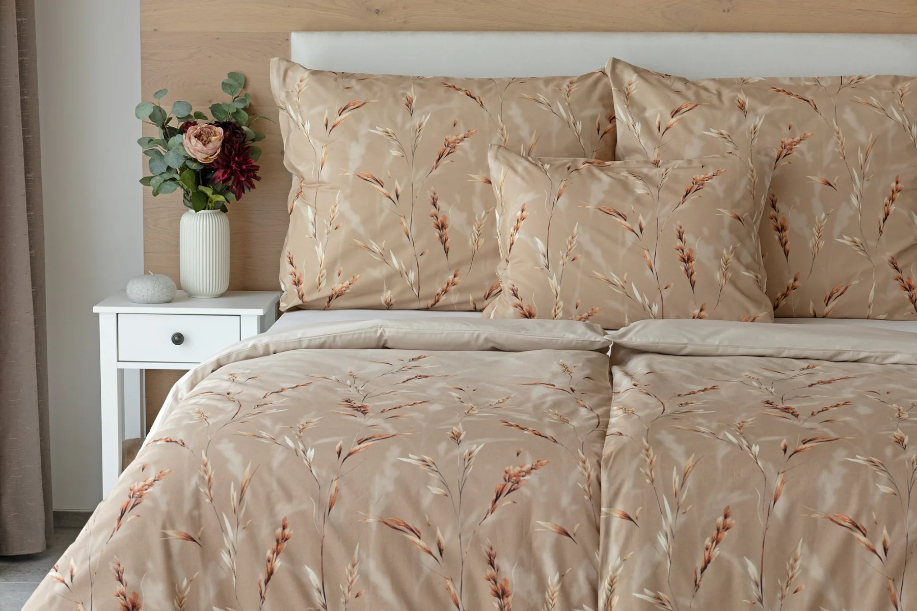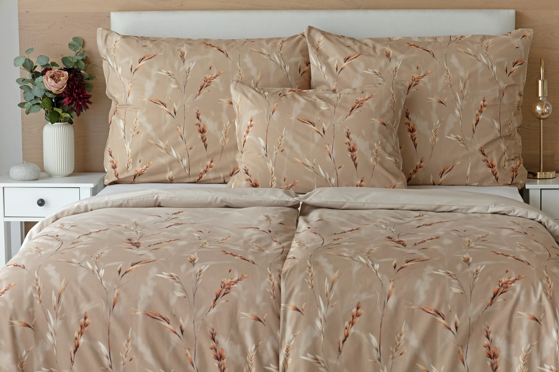 Vychutnejte si zasloužené chvíle odpočinku s bavlněným povlečením Natura. Vzory klasů v jemných béžových a hnědých tónech evokují přírodní krásu a teplo venkova. Povlečení je vyrobeno ze 100% prvotřídní bavlny, která zajišťuje maximální komfort a zaručí váš zdravý spánek.
