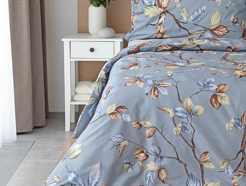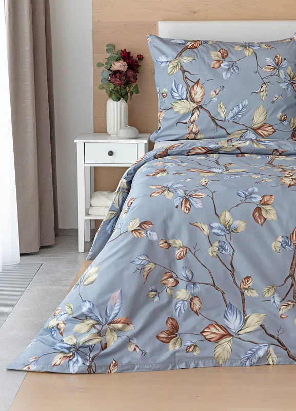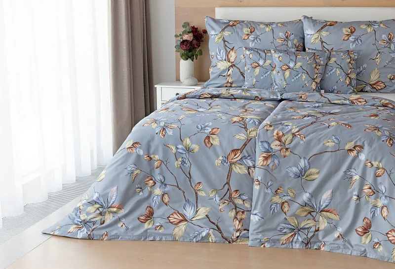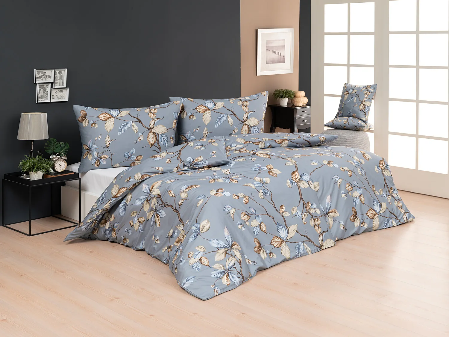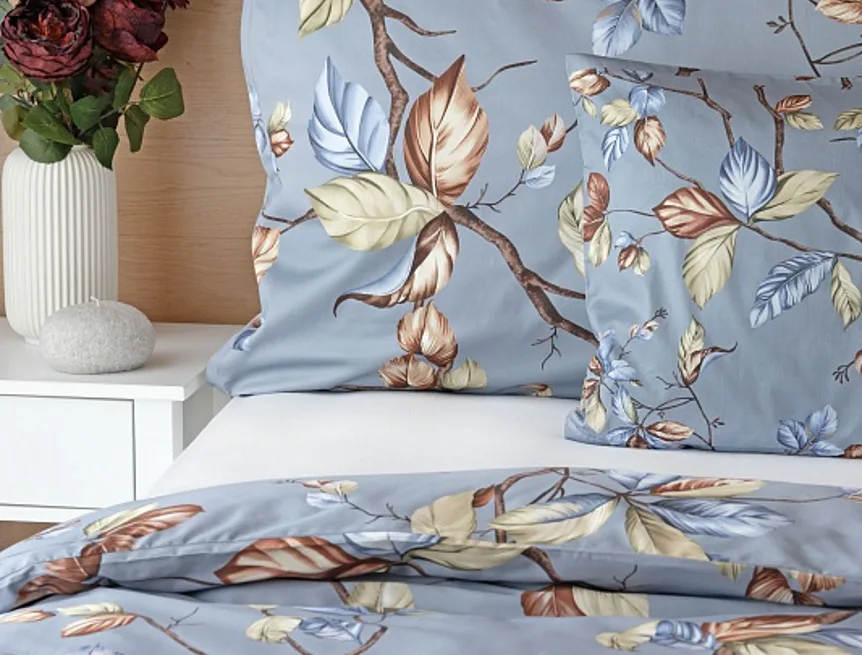 Ložní povlečení Nobilis vás nadchne ve všech ohledech. Na první pohled si zamilujete jednoduchý florální motiv v hřejivých barvách a na první dotek podlehnete kouzlu hebkého mako saténu ze 100% bavlny, který se postará o váš spokojený spánek. Podkladová barva ložního povlečení je kovově modrošedá.