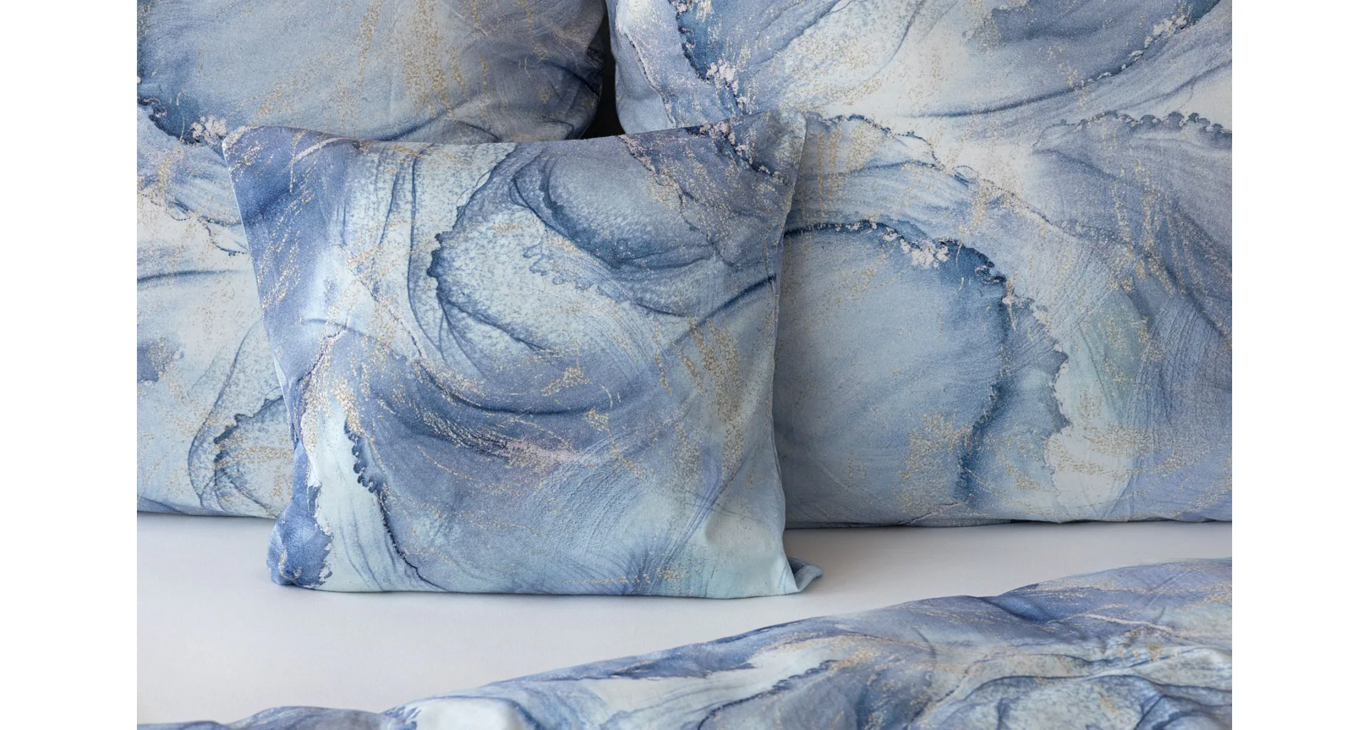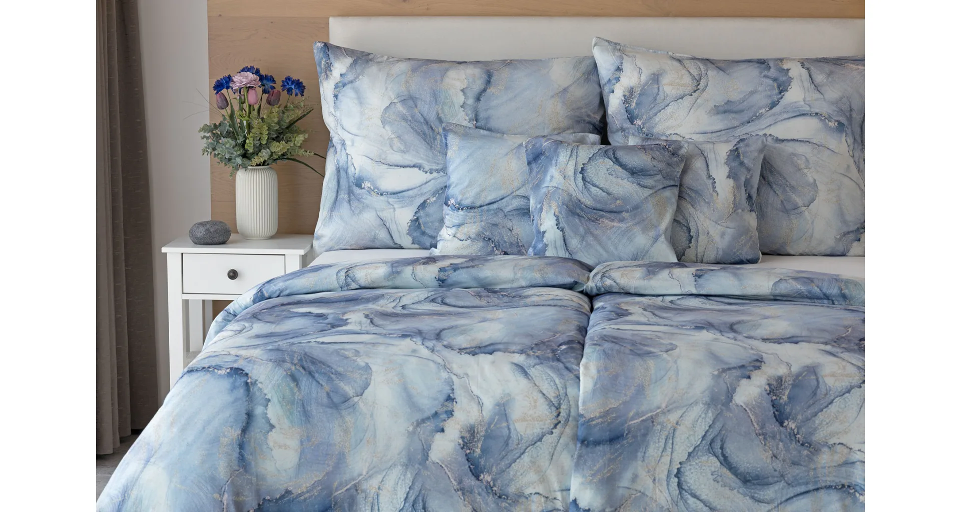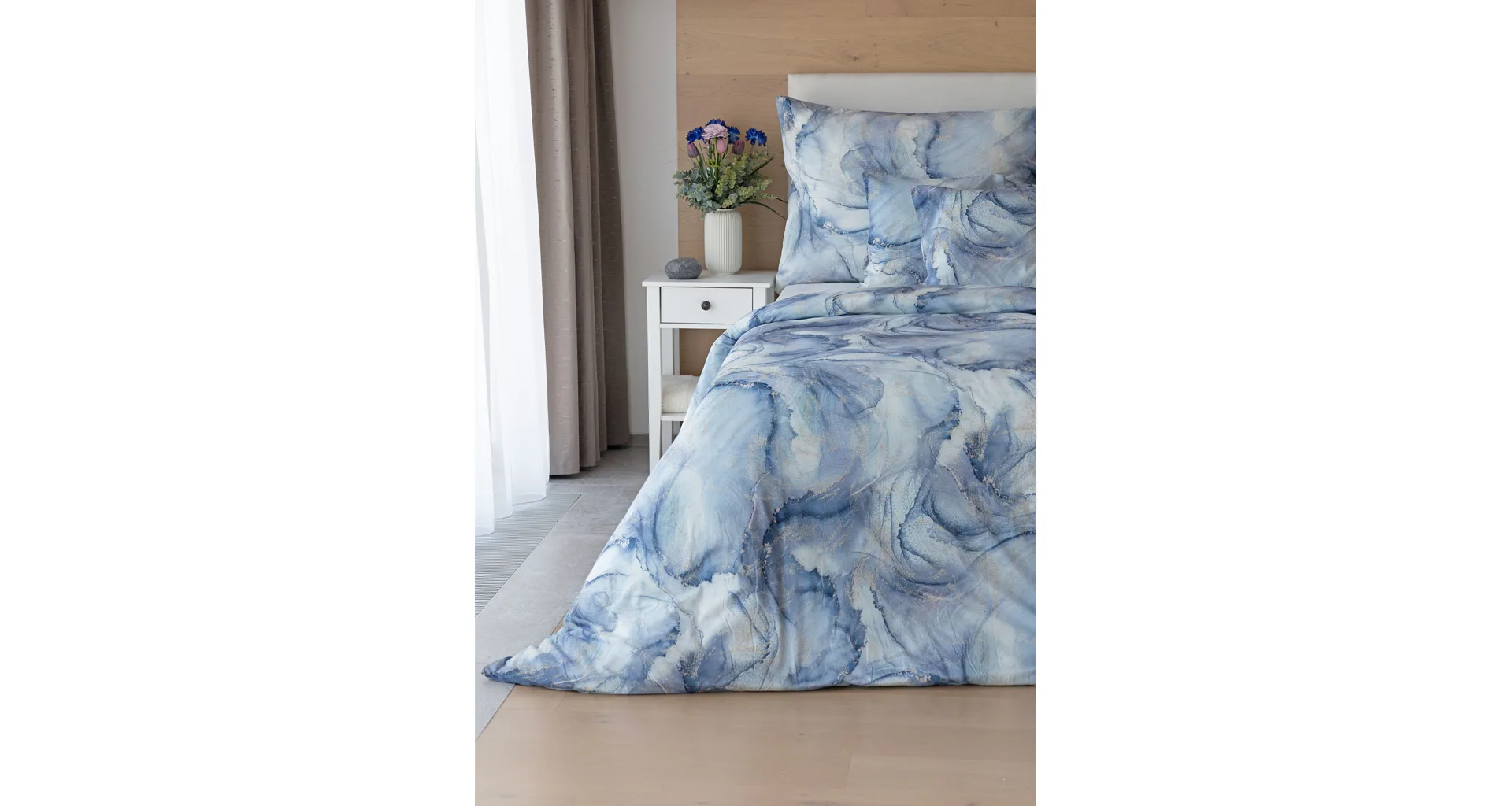Pro novou kolekci ložního povlečení Mako jersey jsme pečlivě vybírali motivy, které tomuto pružnému materiálu sluší. Abstraktní vzor Odine, který je tvořen paletou modrých tónů protkaných zlatavými prvky, rozzáří vaši ložnici.