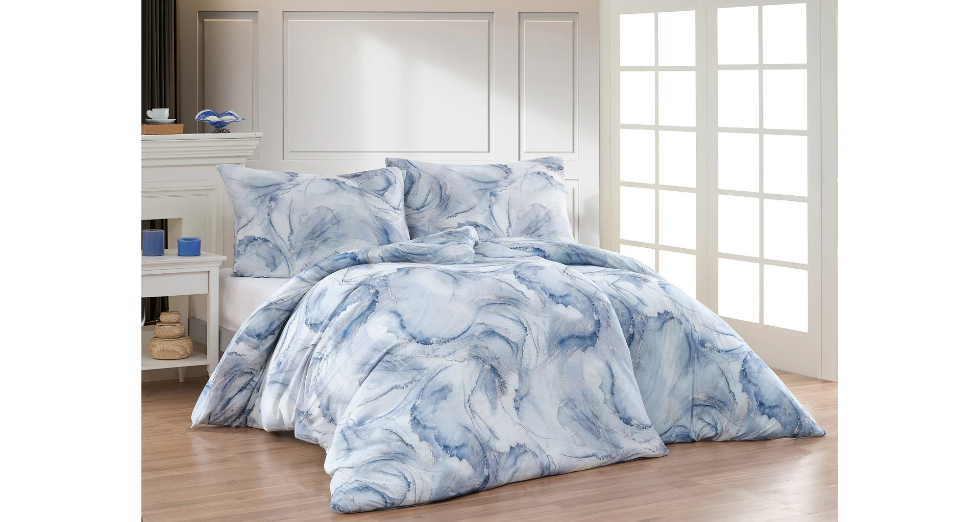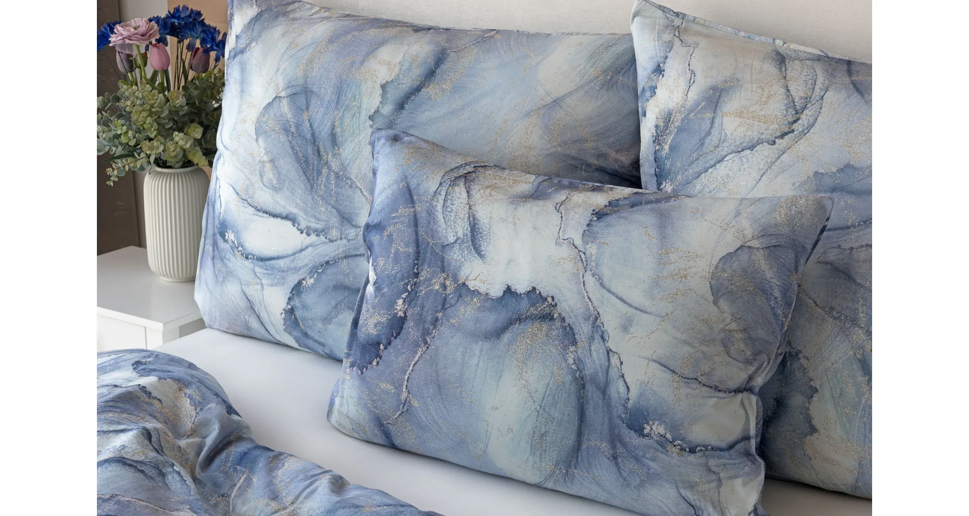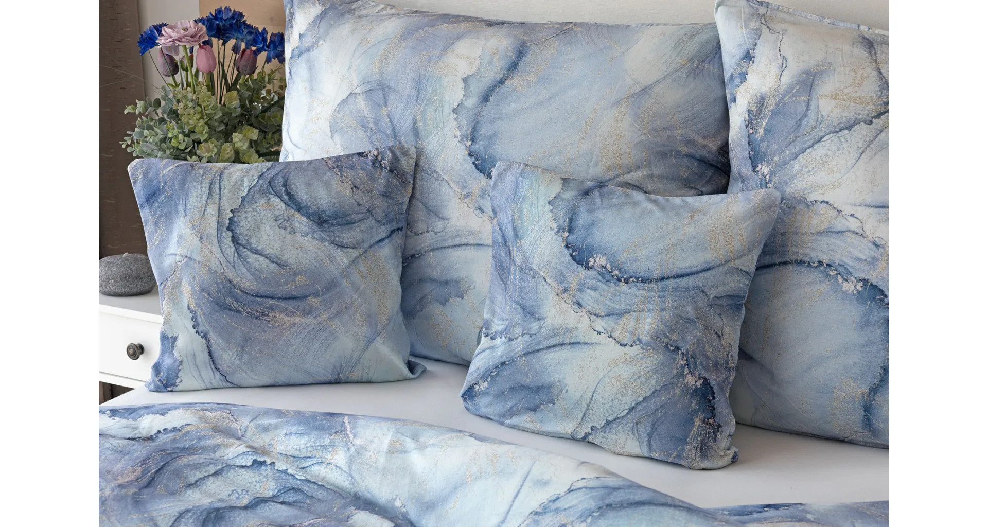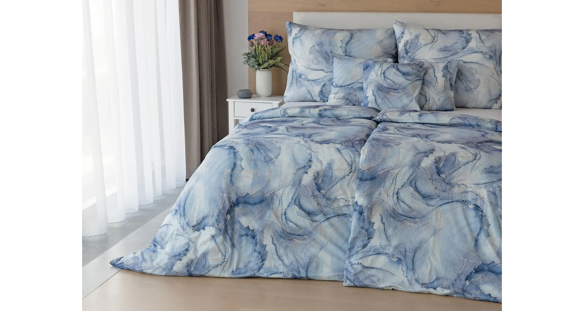 Pro novou kolekci ložního povlečení Mako jersey jsme pečlivě vybírali motivy, které tomuto pružnému materiálu sluší. Abstraktní vzor Odine, který je tvořen paletou modrých tónů protkaných zlatavými prvky, rozzáří vaši ložnici.