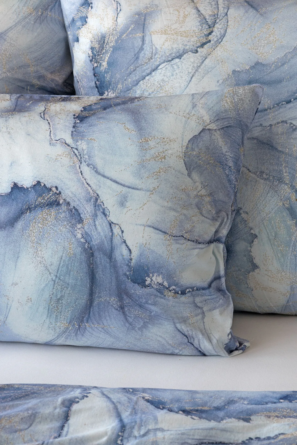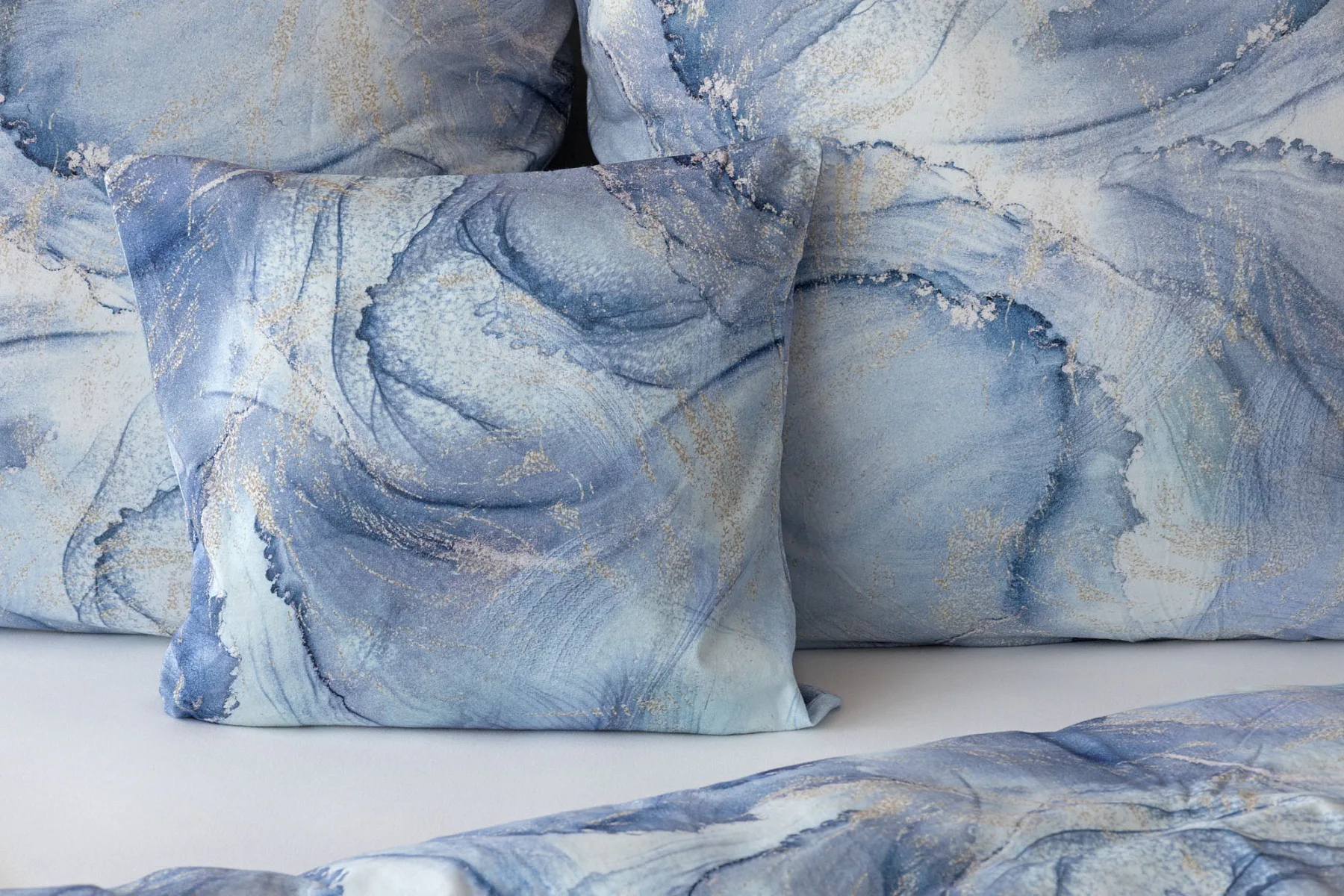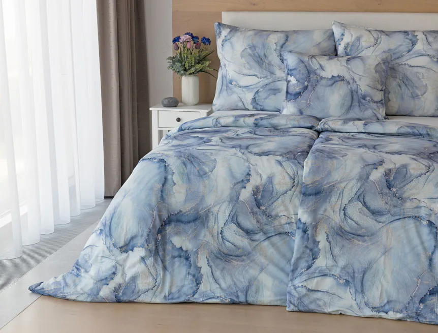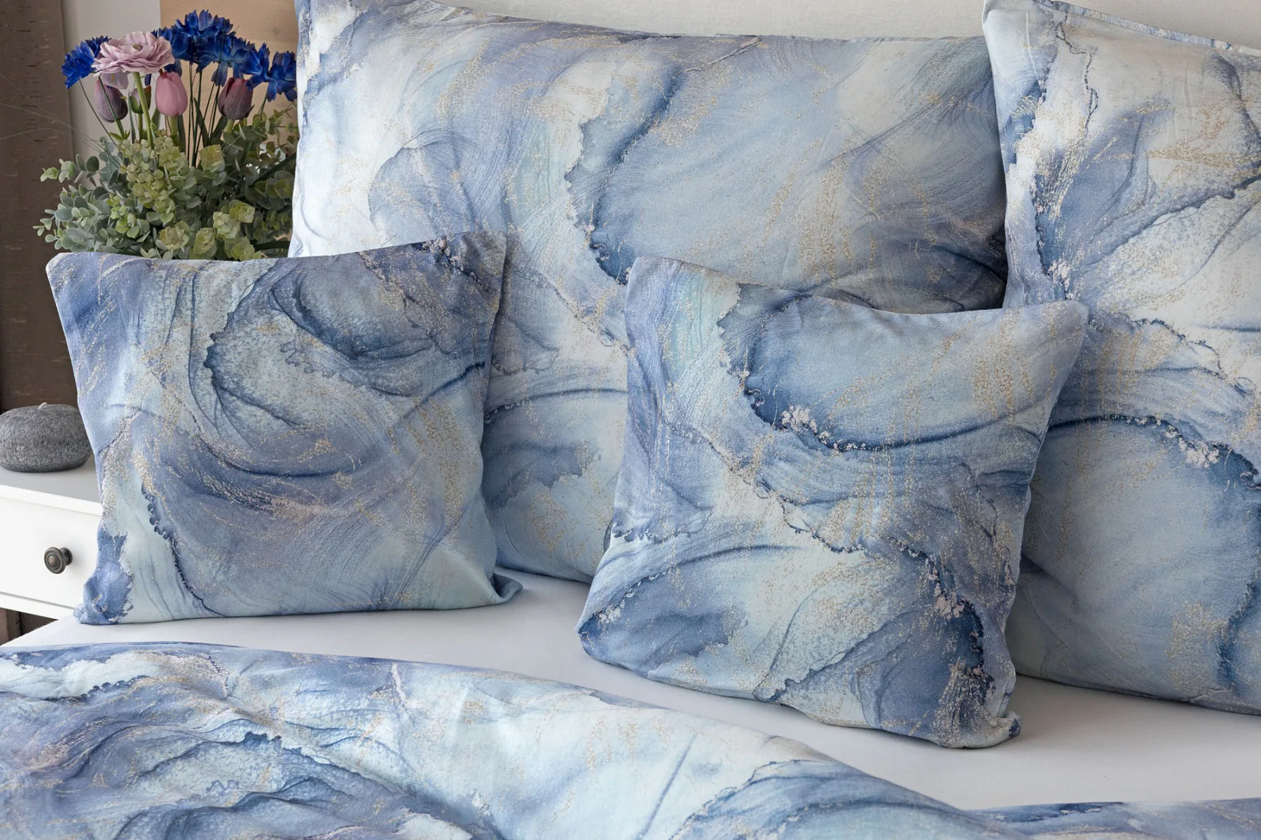 Pro novou kolekci ložního povlečení Mako jersey jsme pečlivě vybírali motivy, které tomuto pružnému materiálu sluší. Abstraktní vzor Odine, který je tvořen paletou modrých tónů protkaných zlatavými prvky, rozzáří vaši ložnici.