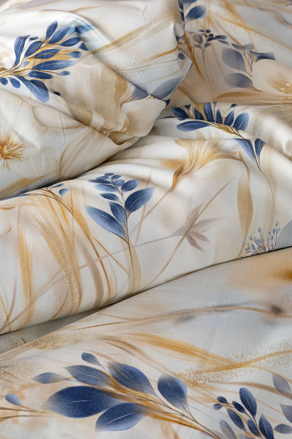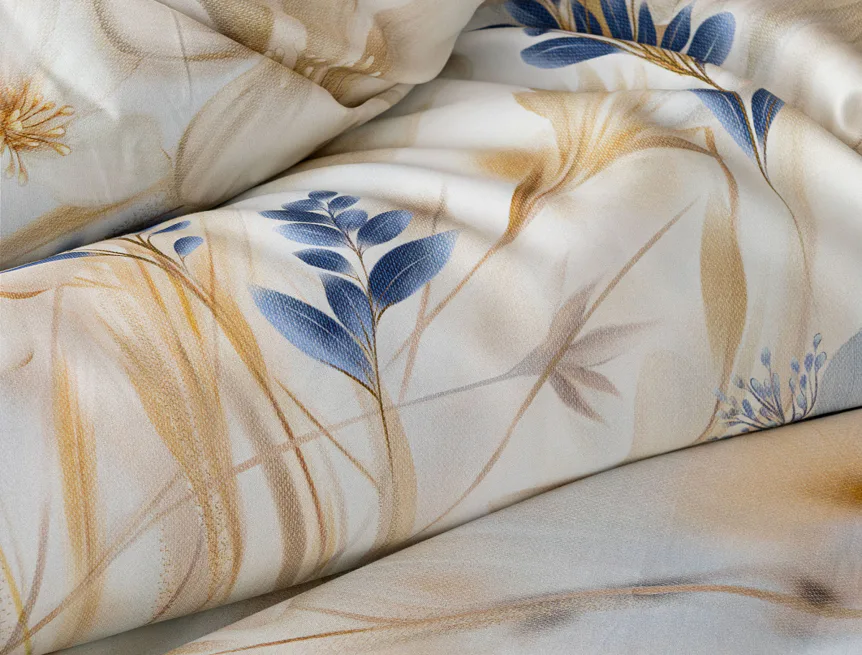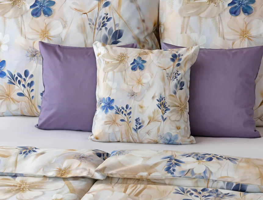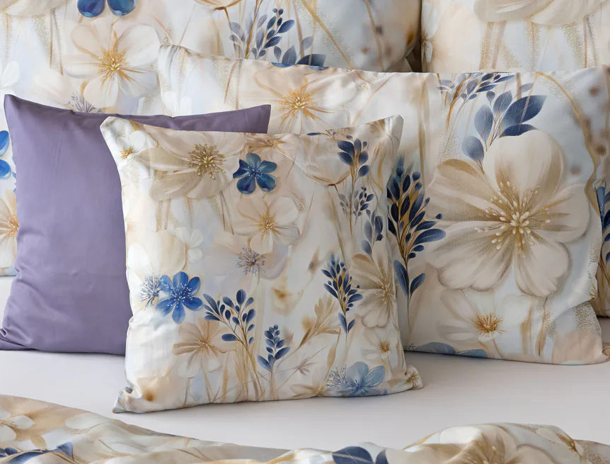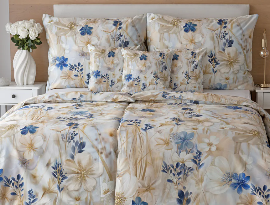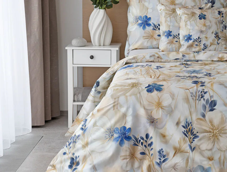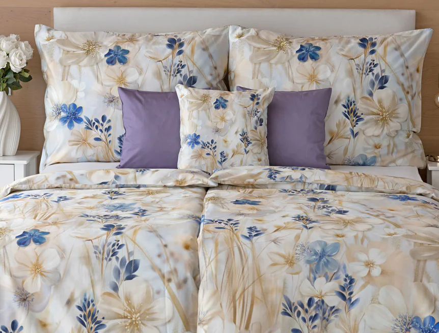 Decentní květinový vzor ložního povlečení Olivian vdechne vaší ložnici elegantní nádech a stane se originálním doplňkem v každé roční době. Hřejivé přírodní tóny florálního motivu doplňují modré květy, které dotváří uklidňující atmostéru. O precizní detail květinového vzoru se postarala nejmodernější digitální tisková technologie a decentní lesk bavlněného saténu podtrhuje eleganci tohoto ložního povlečení.