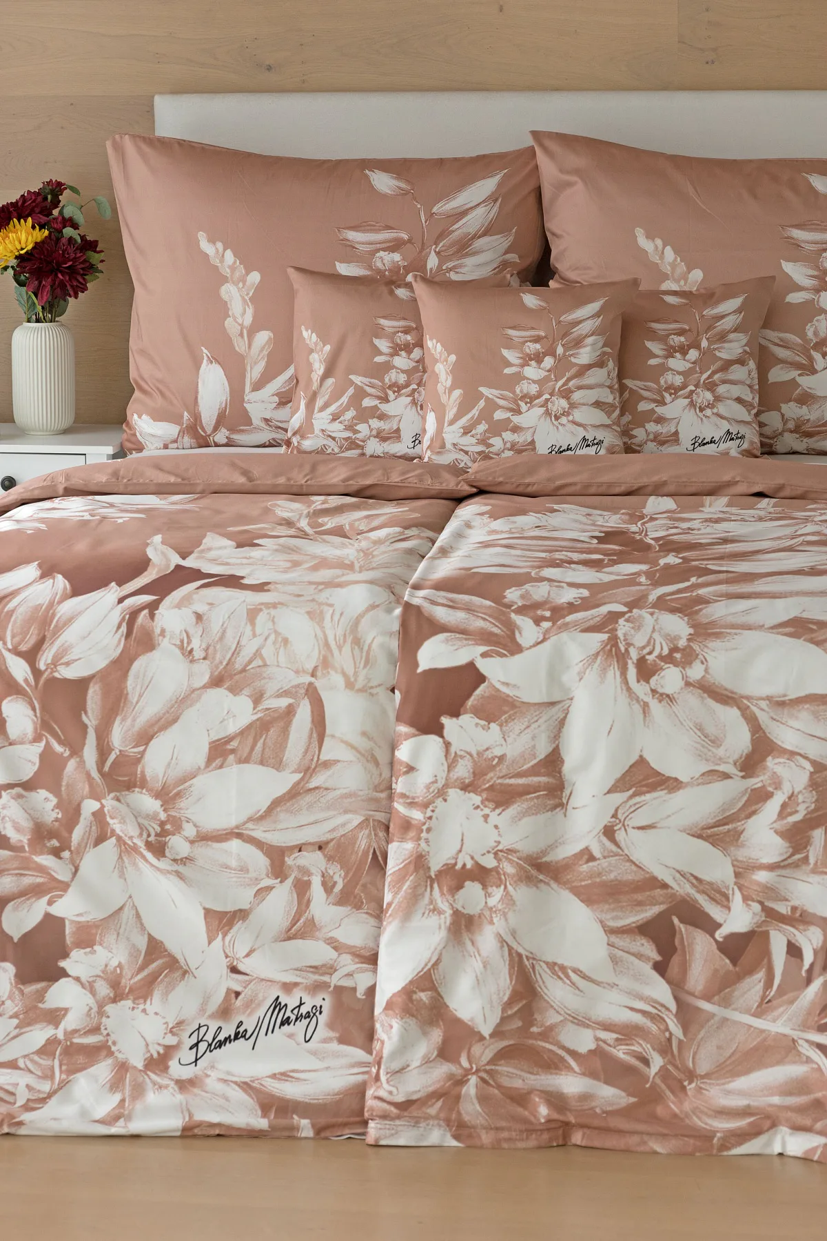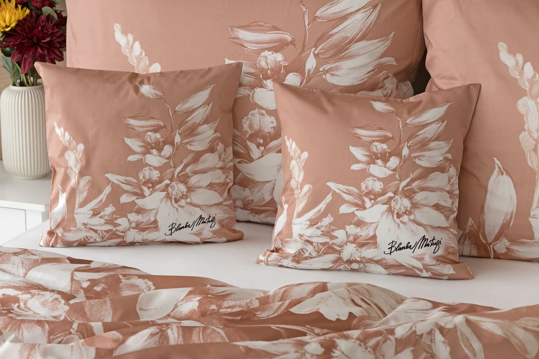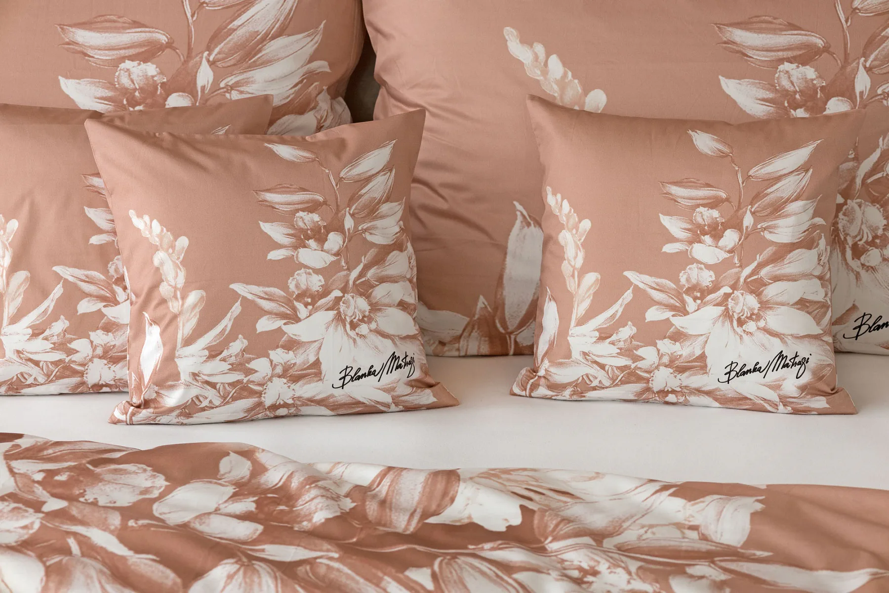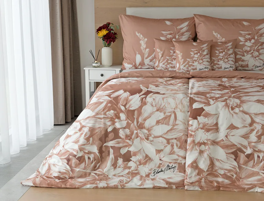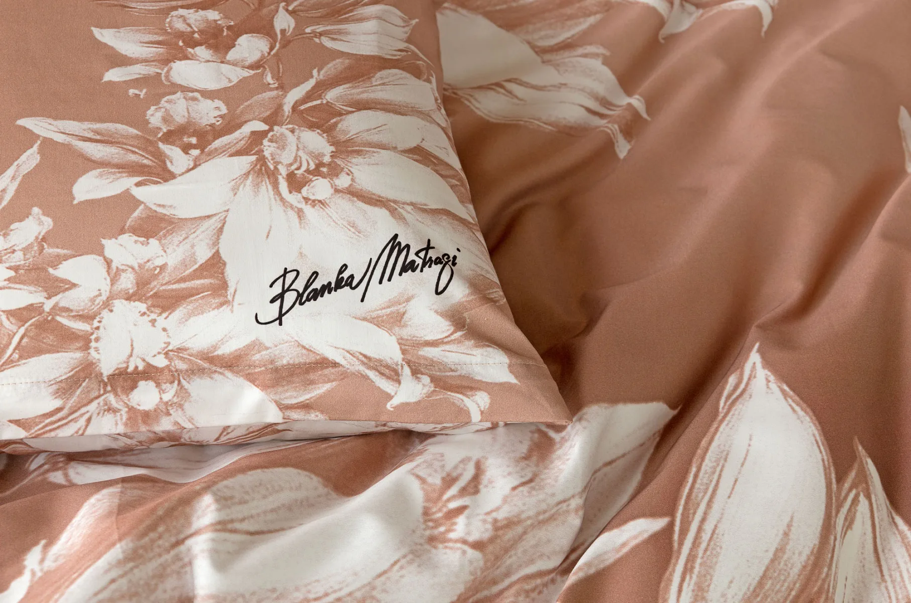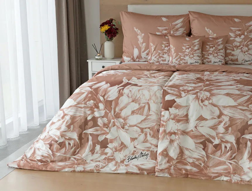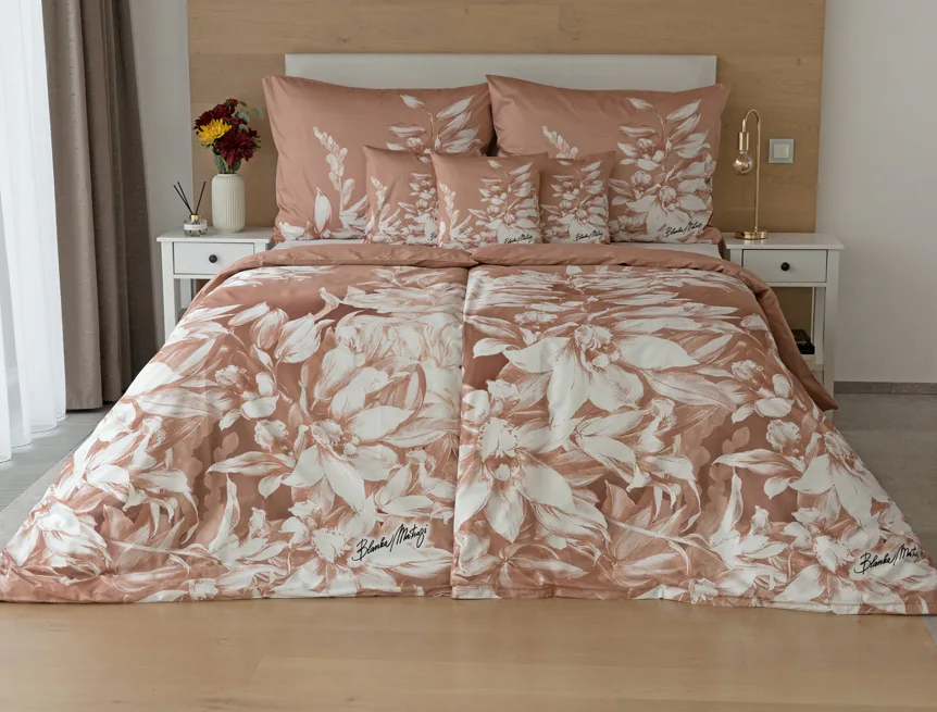Okouzlující květinový vzor povlečení Orchid si vás získá půvabnou kombinací barev a střídmou elegancí. Autorská digitálně zpracovaná malba inspirovaná květy orchidejí v měděných a krémově bílých tónech vnese do vaší ložnice harmonii a pocit uvolnění. Propracované detaily činí z tohoto luxusního povlečení osobité umělecké dílo.