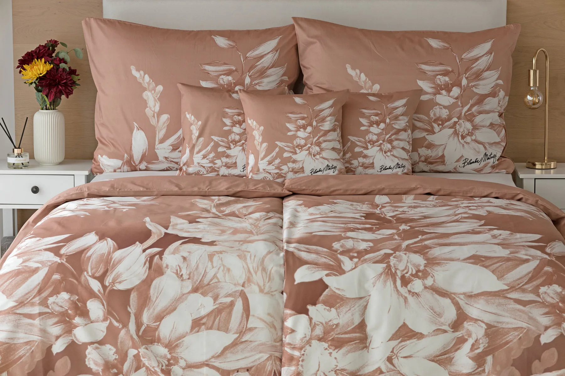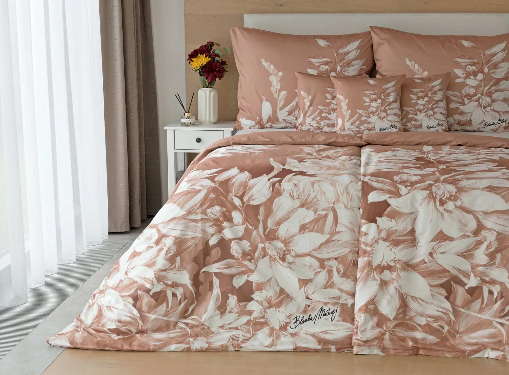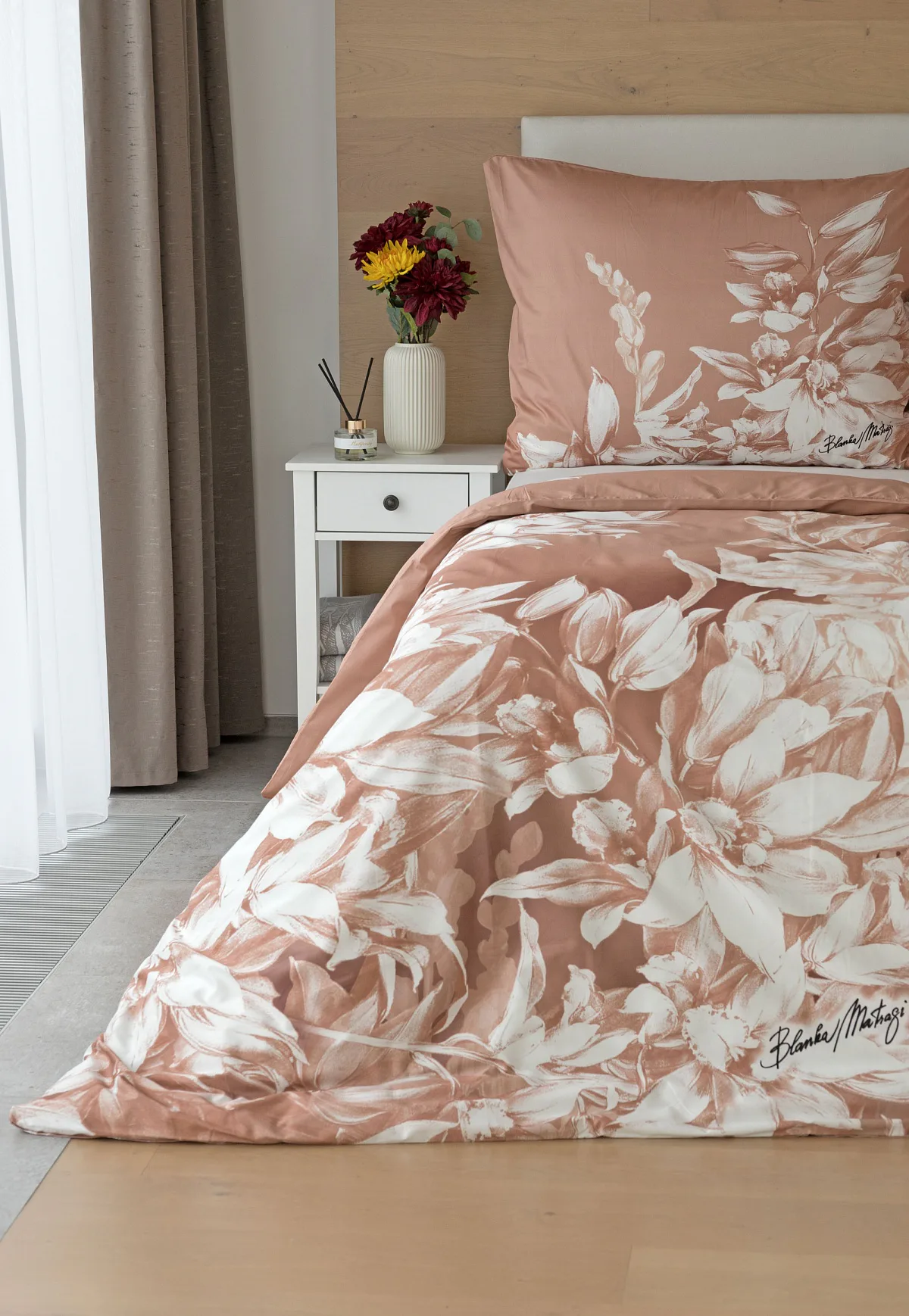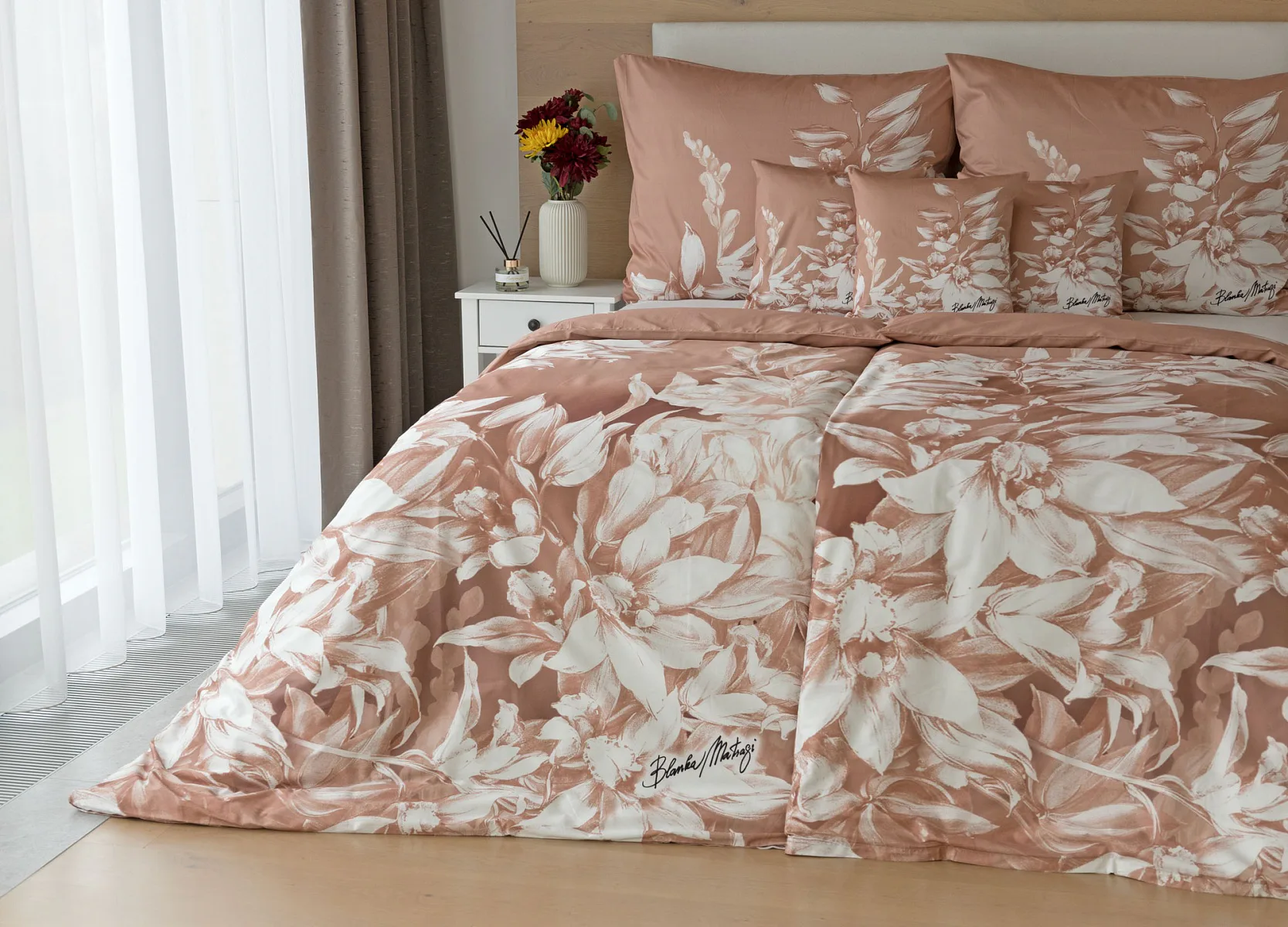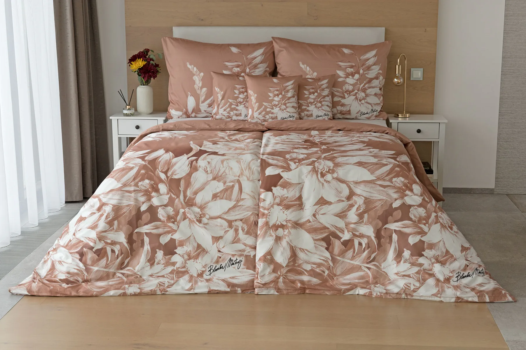 Okouzlující květinový vzor povlečení Orchid si vás získá půvabnou kombinací barev a střídmou elegancí. Autorská digitálně zpracovaná malba inspirovaná květy orchidejí v měděných a krémově bílých tónech vnese do vaší ložnice harmonii a pocit uvolnění. Propracované detaily činí z tohoto luxusního povlečení osobité umělecké dílo.